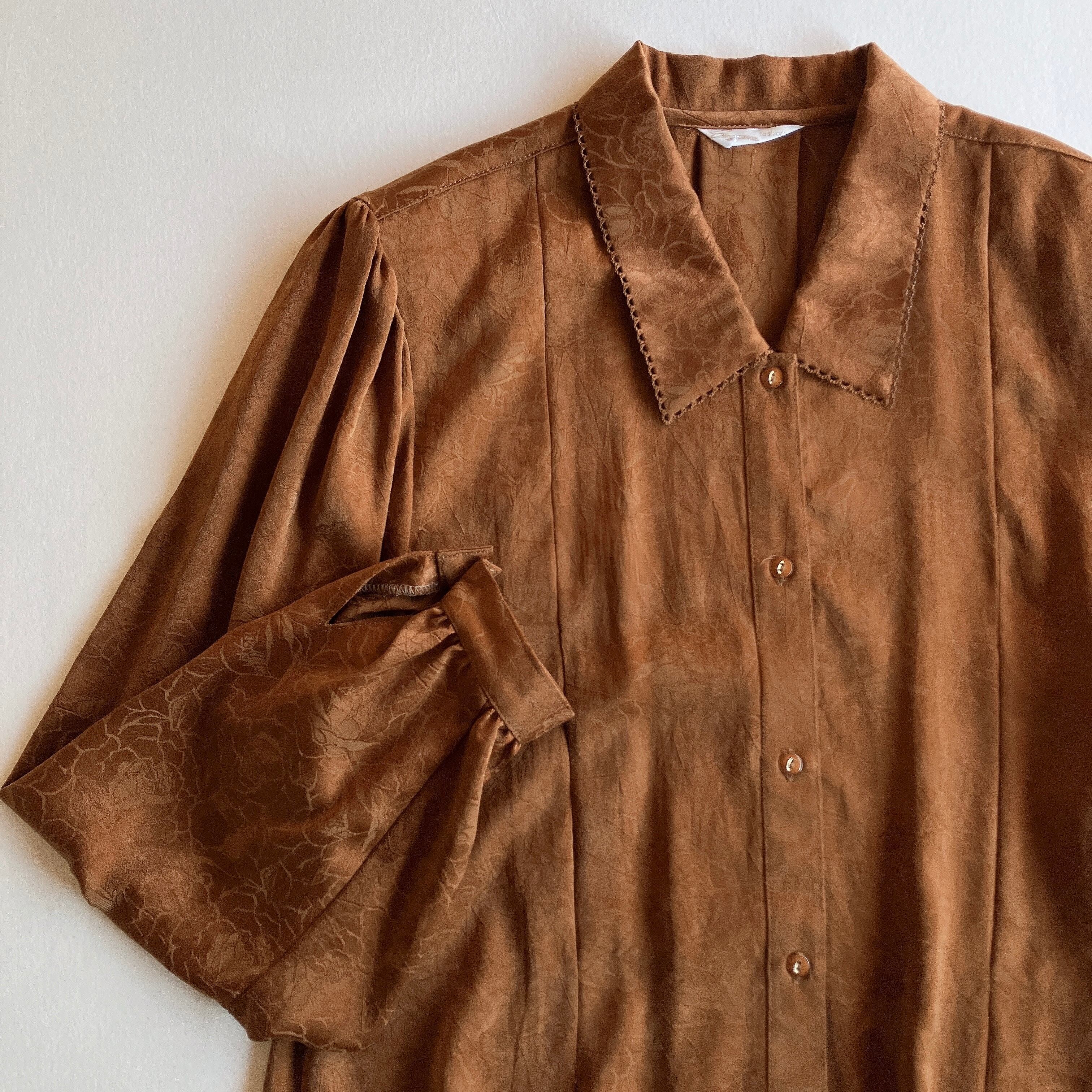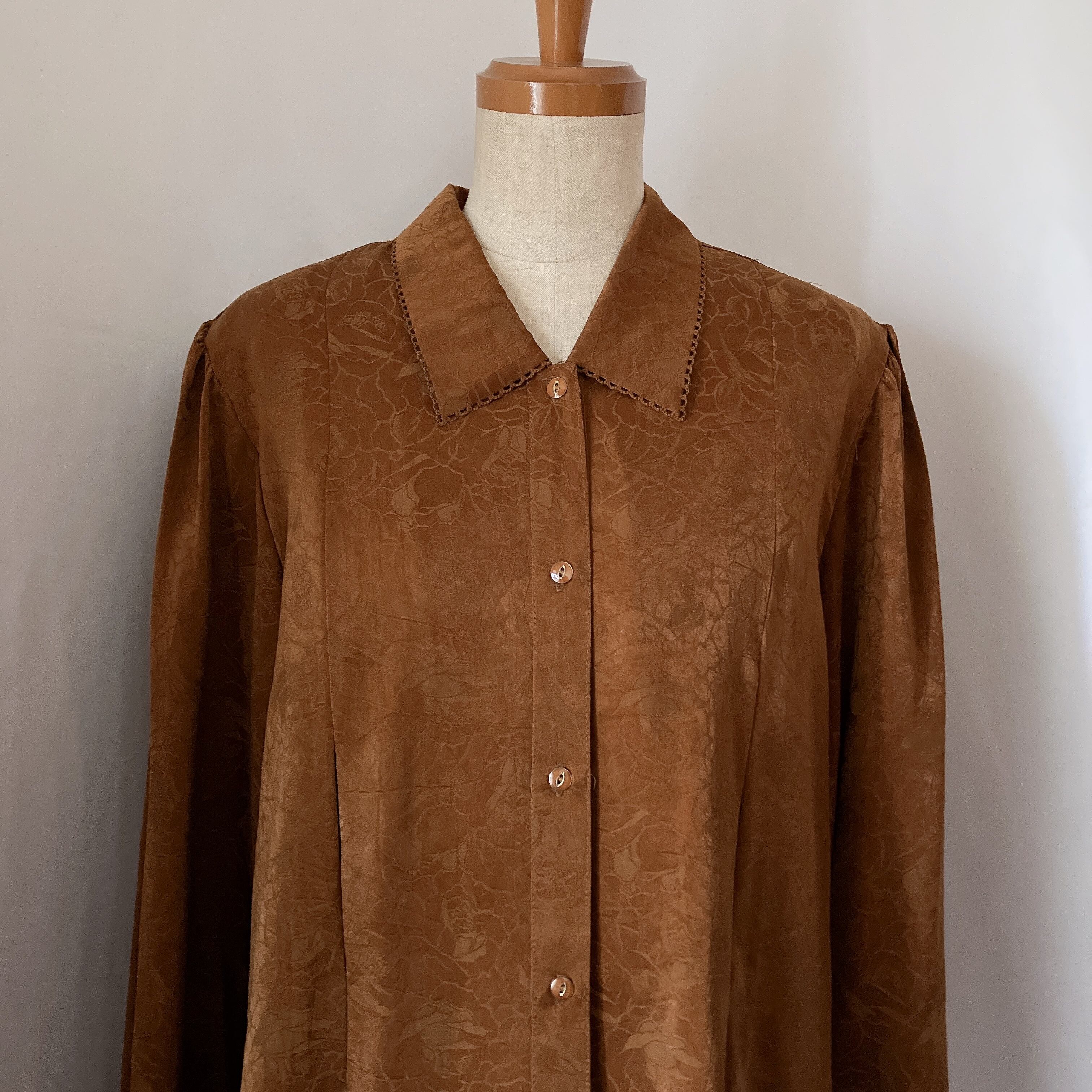 used レトロ 茶系 透かし模様 ブラウス 古着 ヴィンテージ vintage