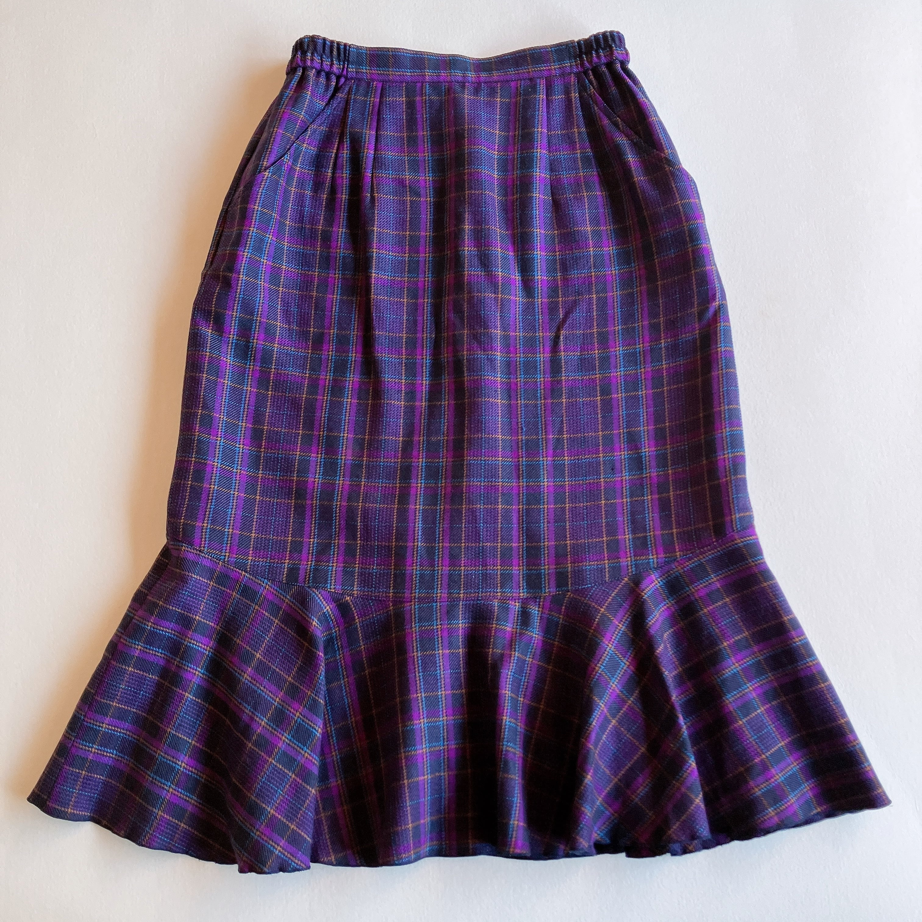 used レトロ 紫色 チェックスカート 古着 ヴィンテージ vintage