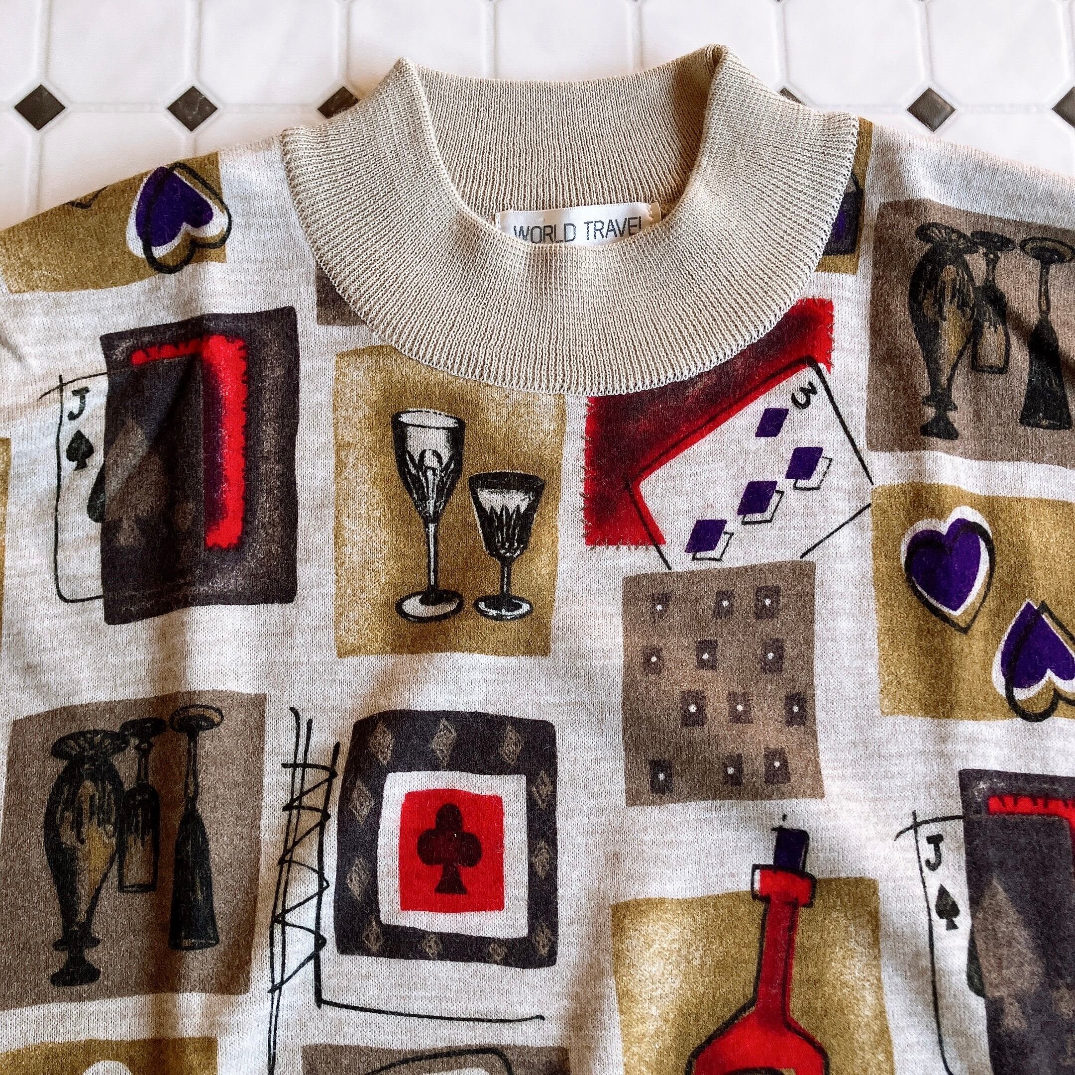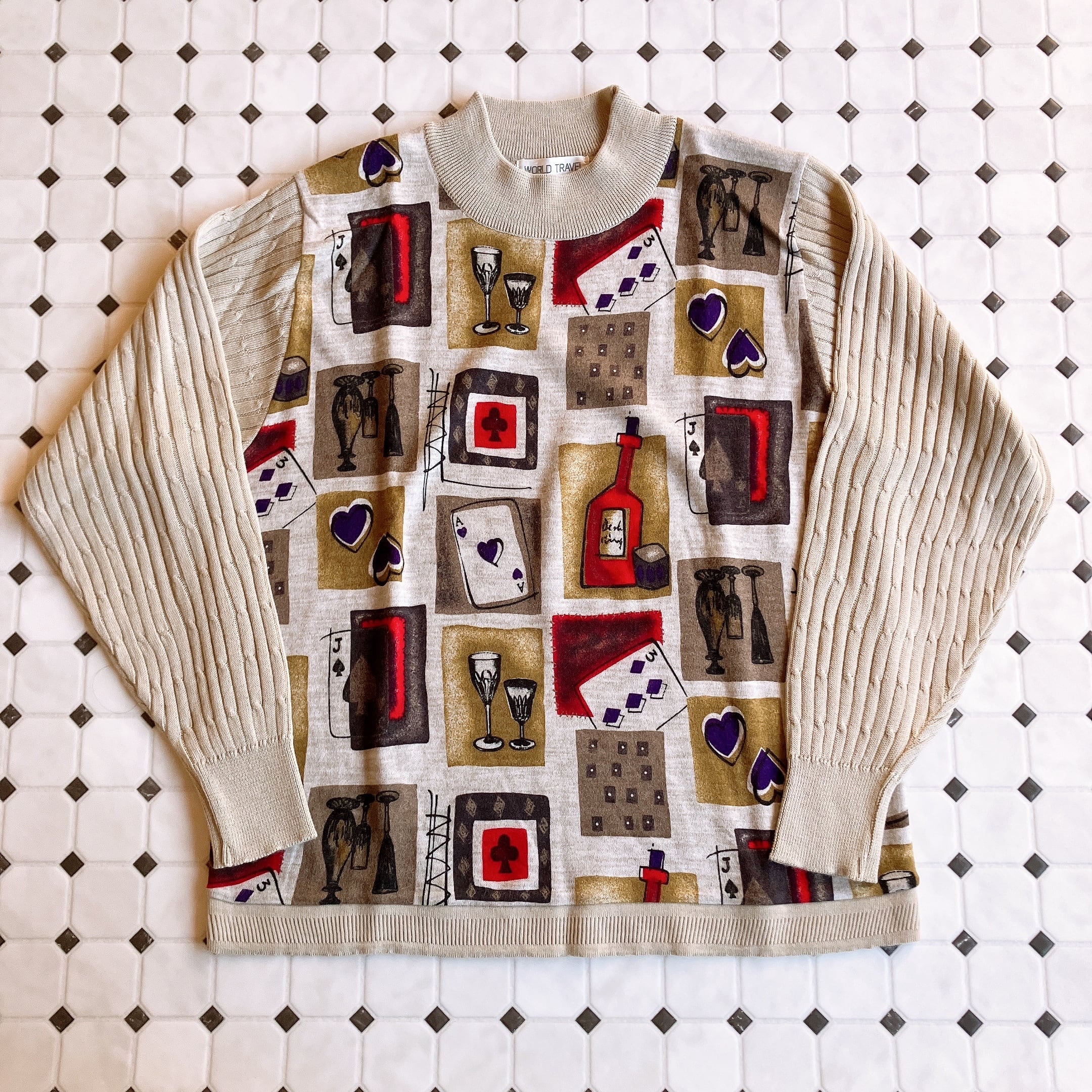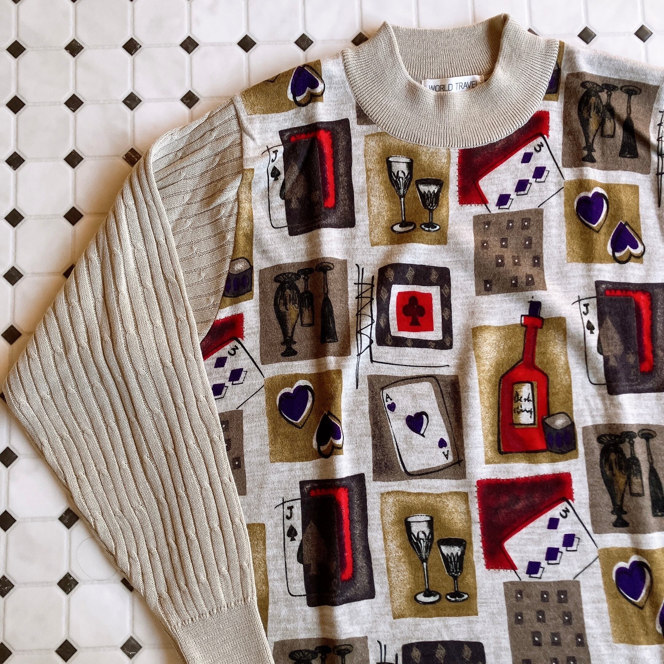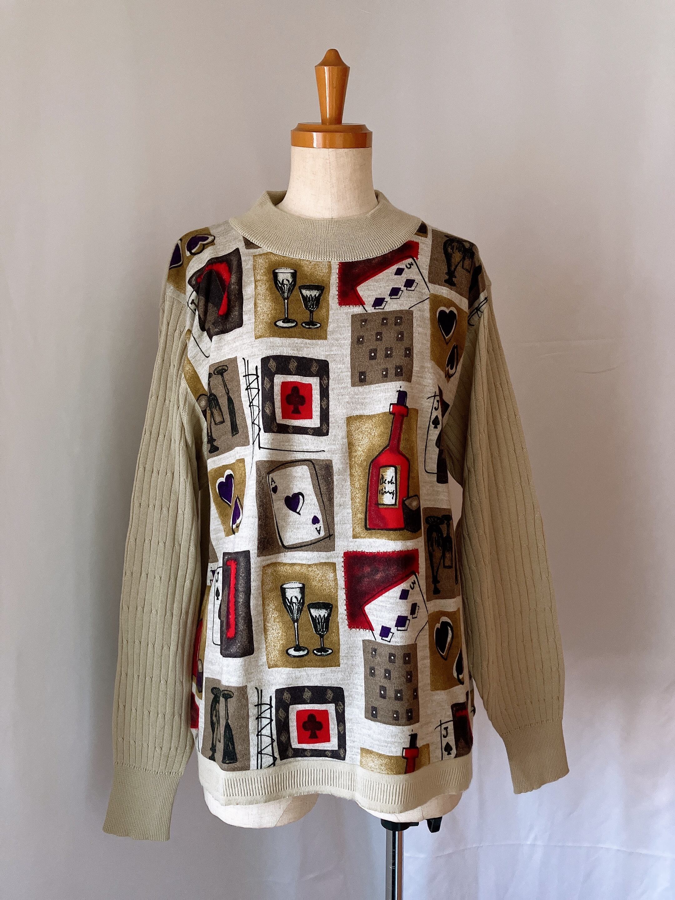 used レトロ ベージュ デザイン ニット 古着 ヴィンテージ vintage