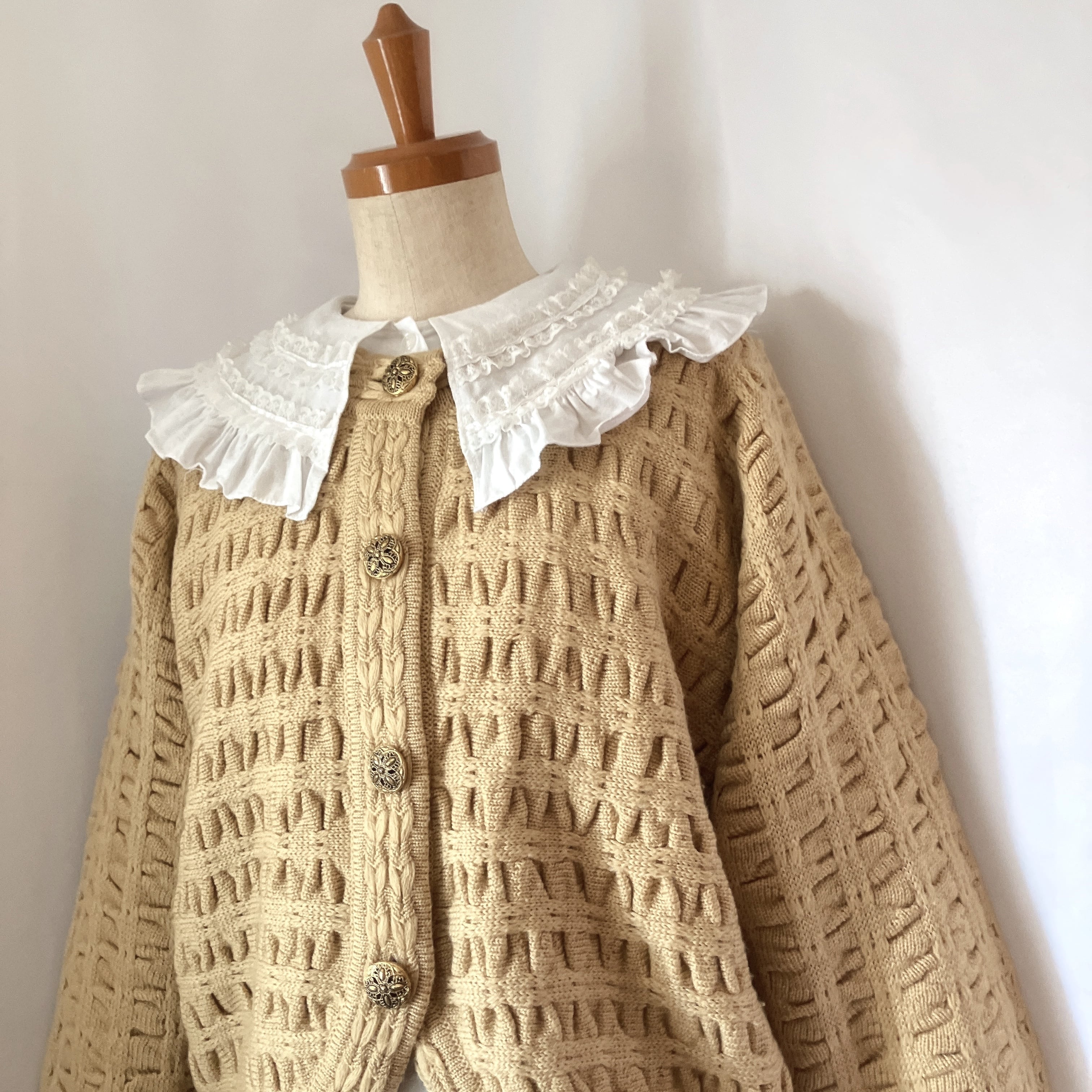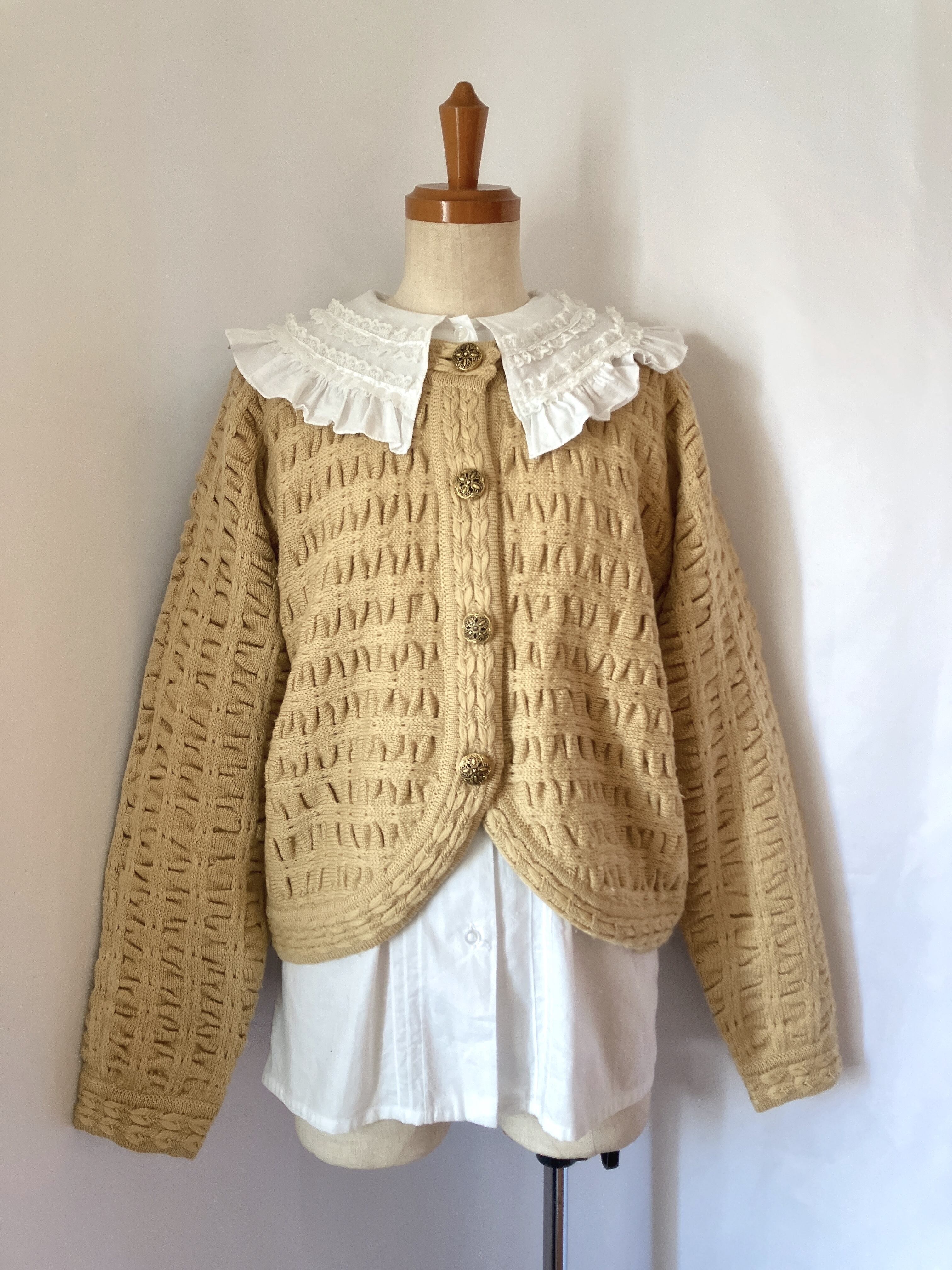 used レトロ ベージュ ニットカーディガン古着 ヴィンテージ vintage