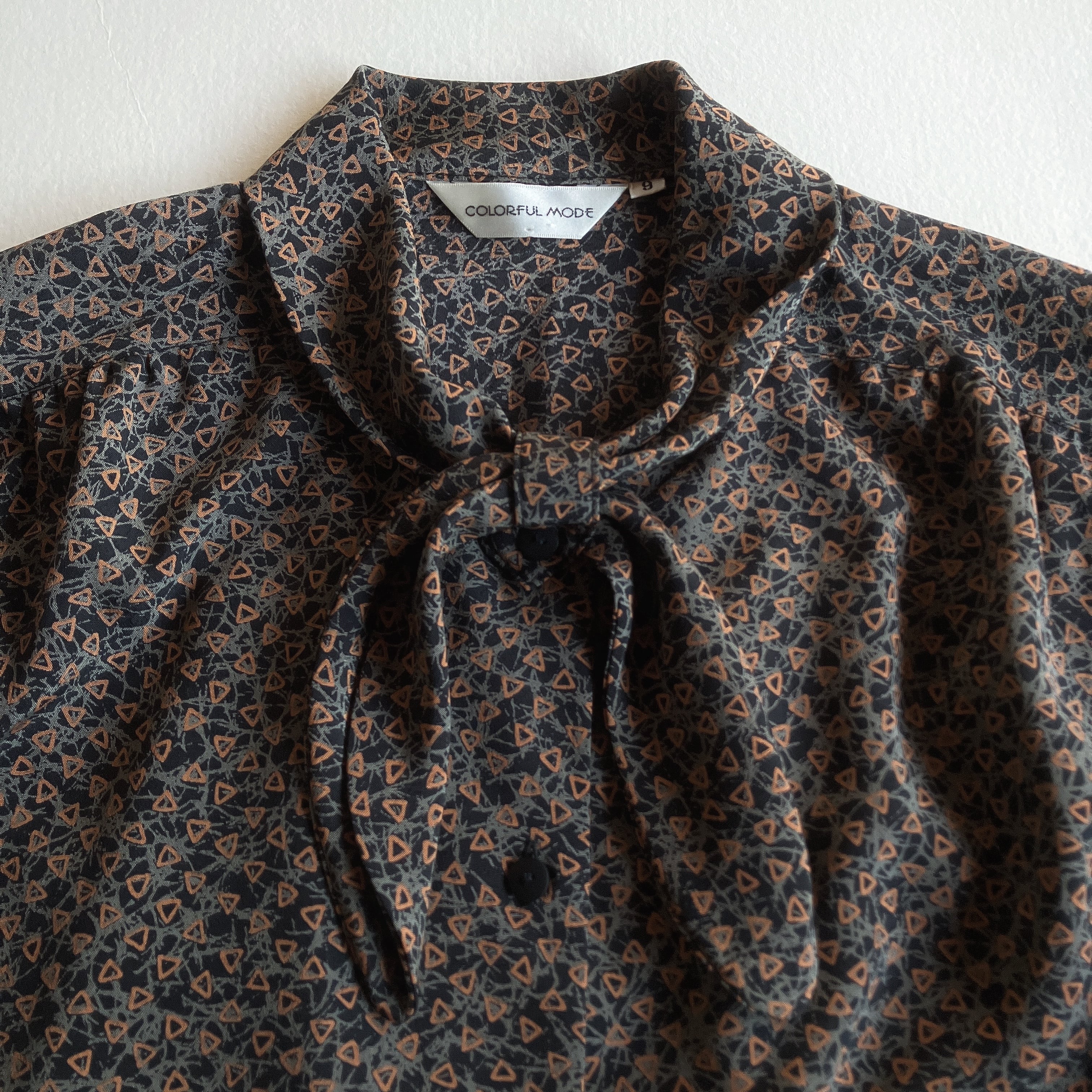 used レトロ △模様 リボン ブラウス 古着 ヴィンテージ vintage