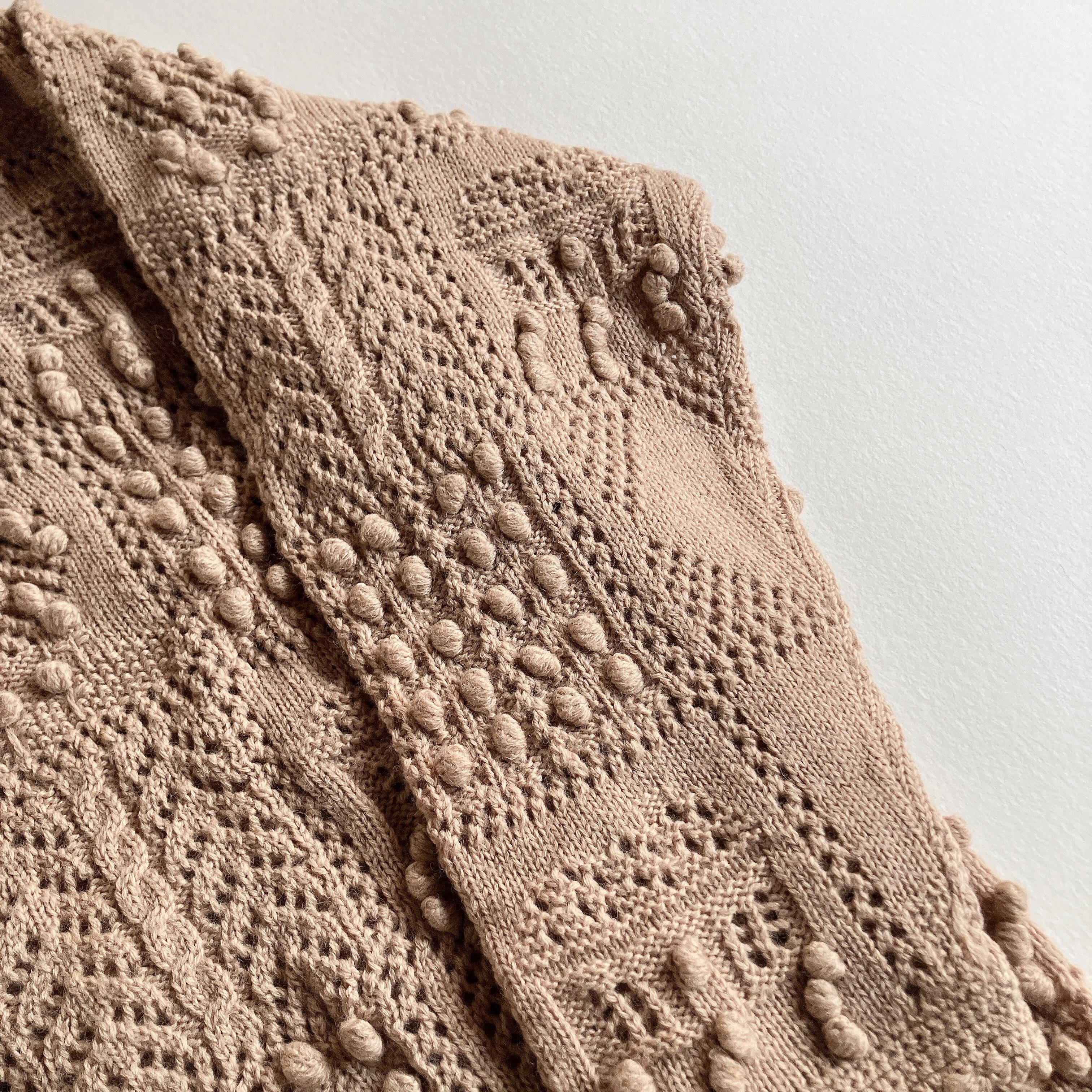立体的なポコポコ編みが全面に施された、