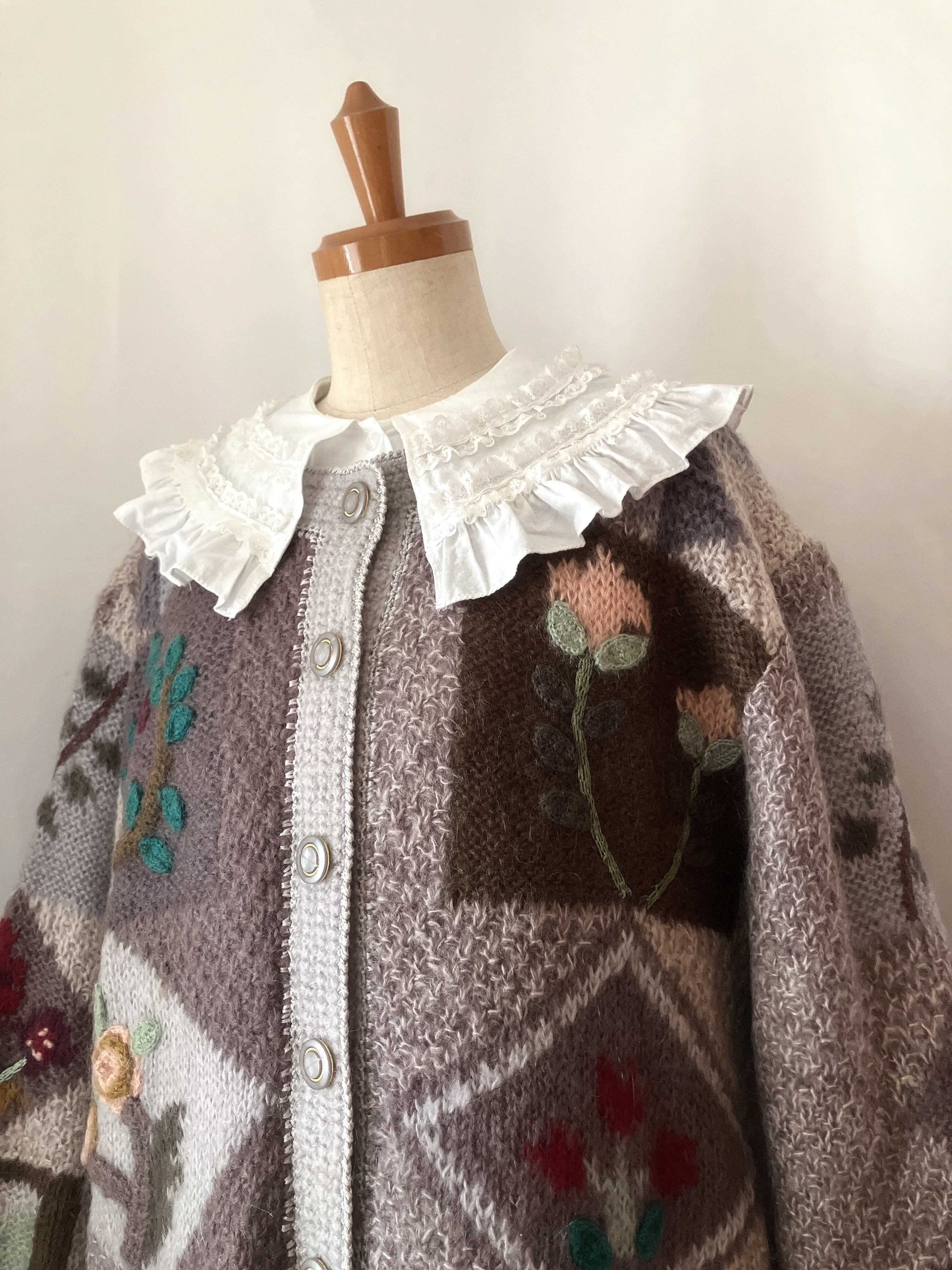 used レトロ 刺繍 ニットカーディガン 古着 ヴィンテージ vintage