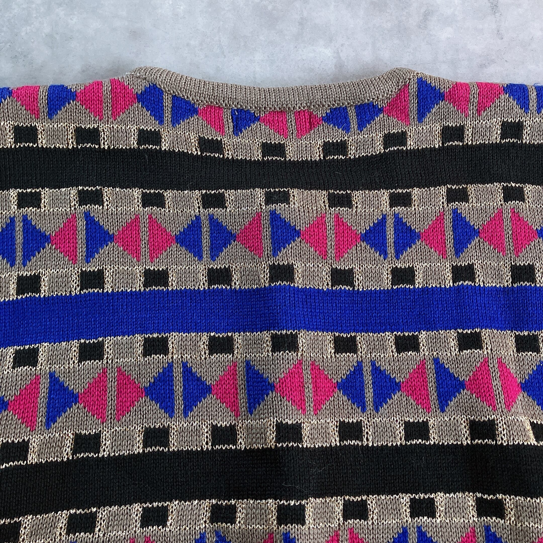 used レトロ 三角模様 ニット カーディガン古着 ヴィンテージvintage