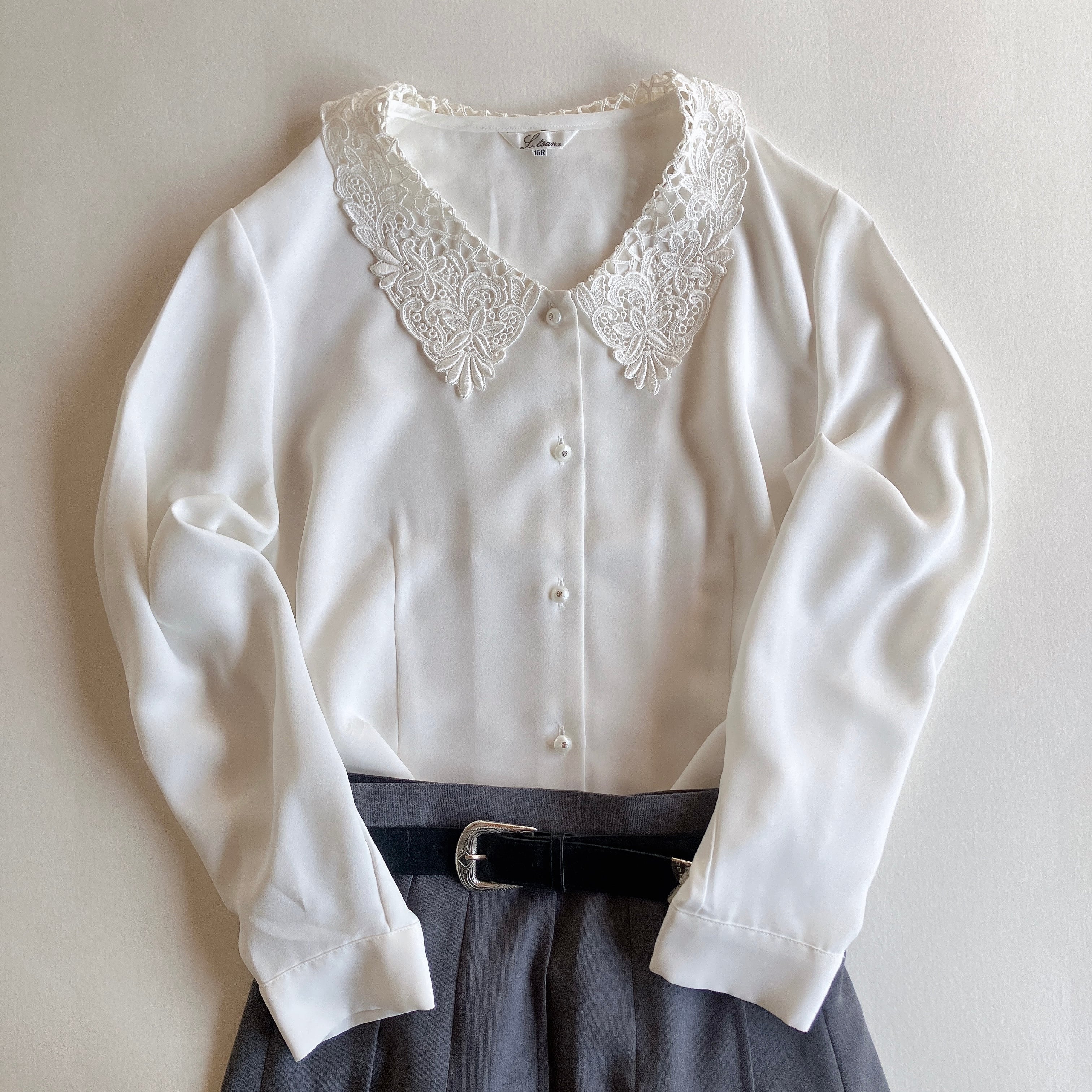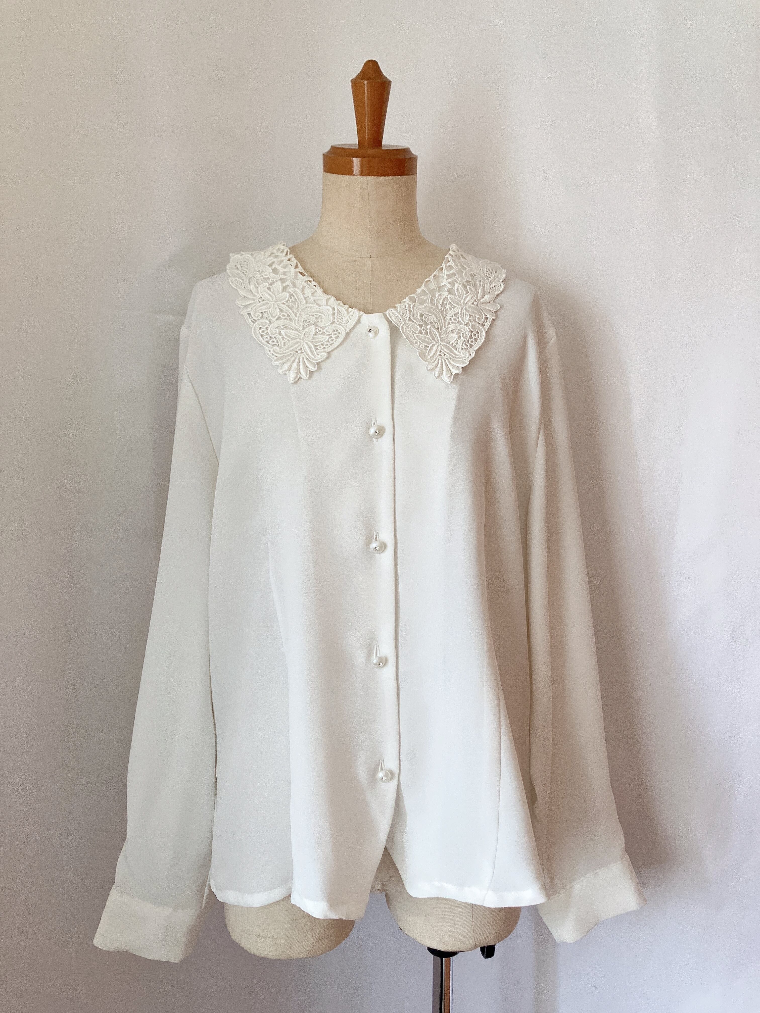 used レトロ 白 レース襟 ブラウス 古着 ヴィンテージ vintage