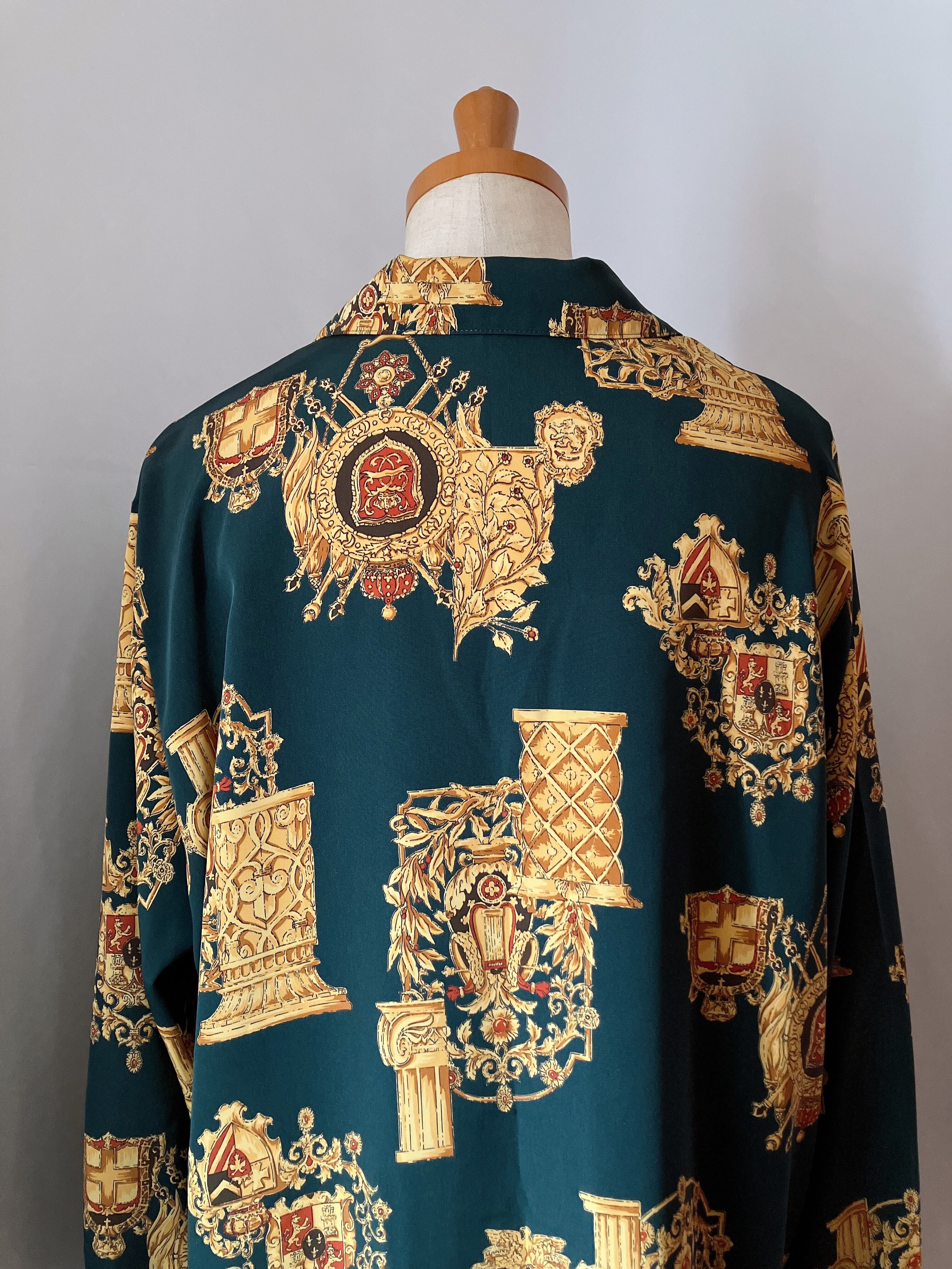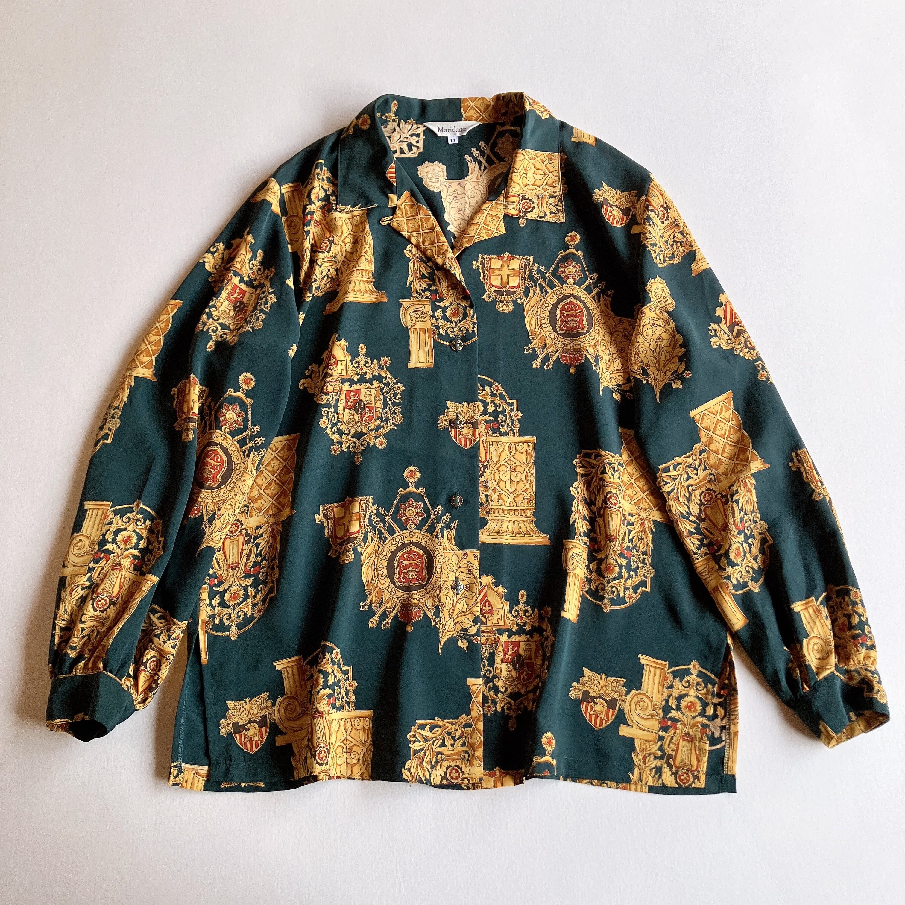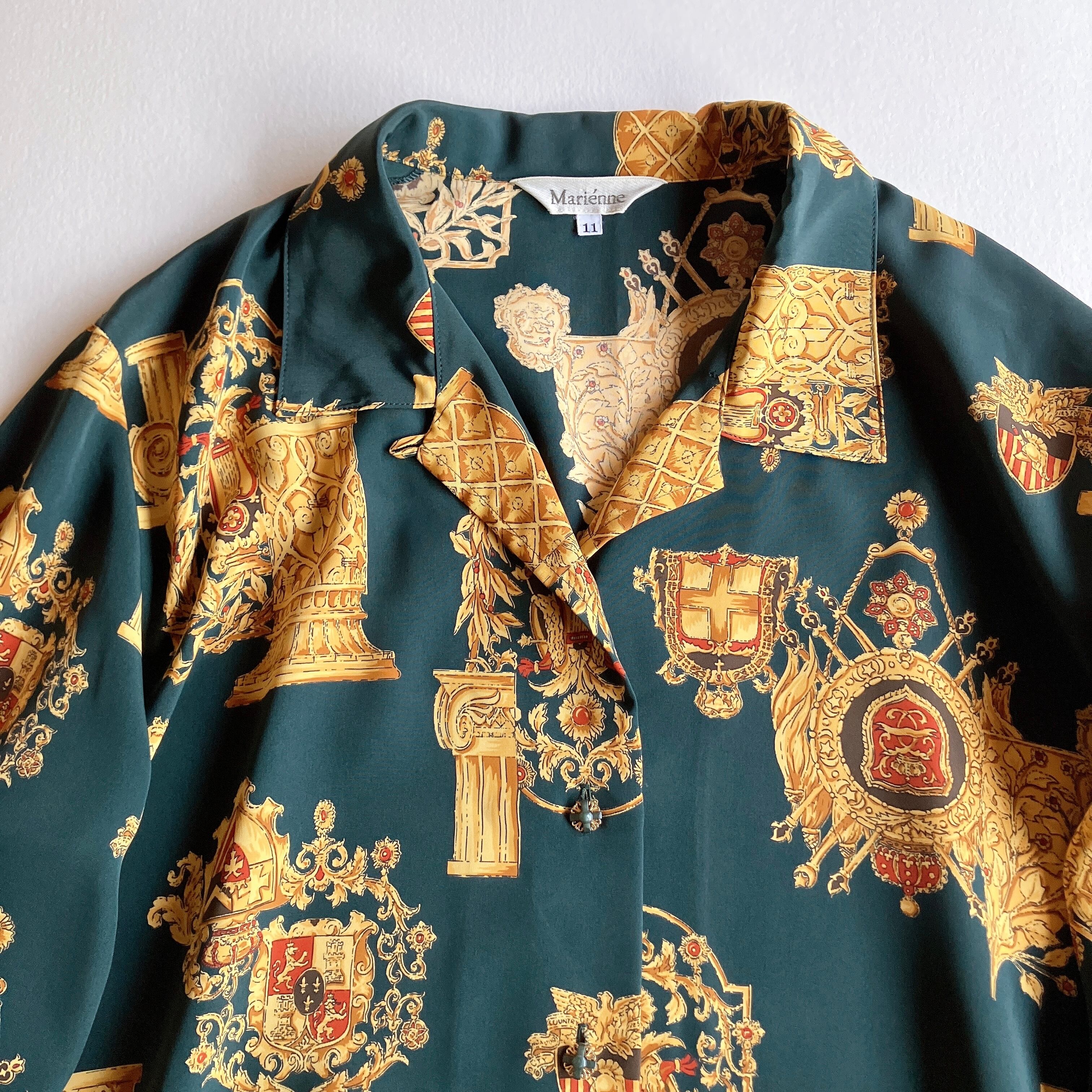 used レトロ 緑 装飾柄 シャツ 古着 ヴィンテージ vintage