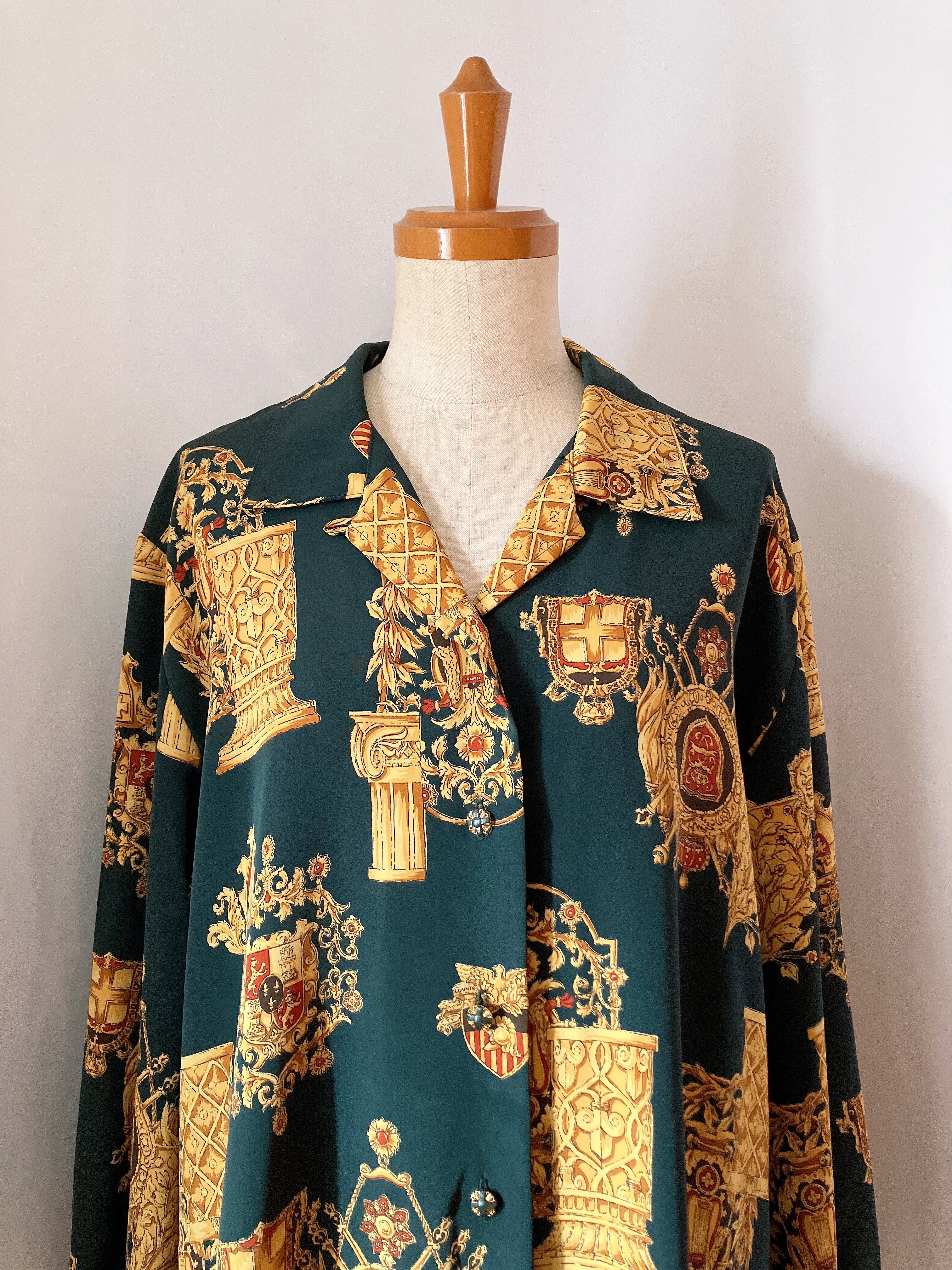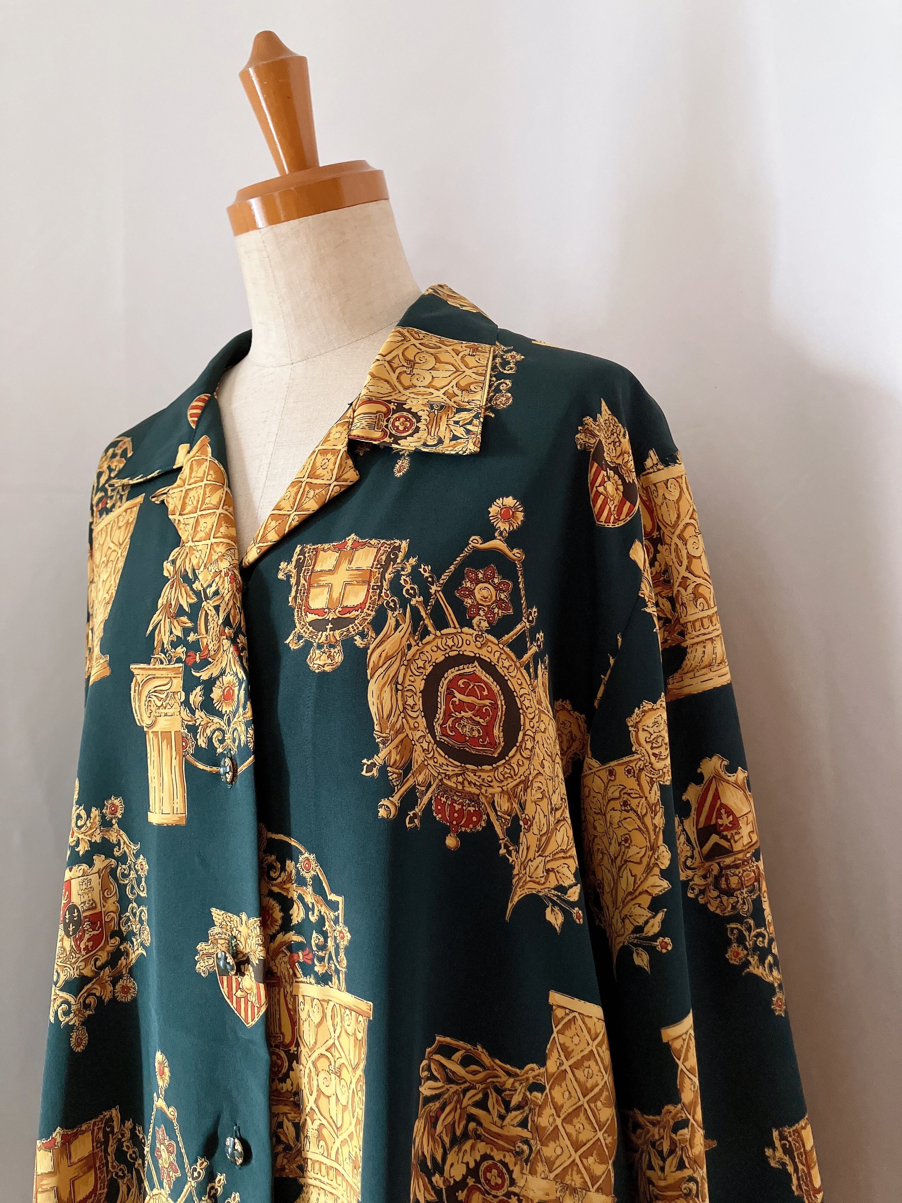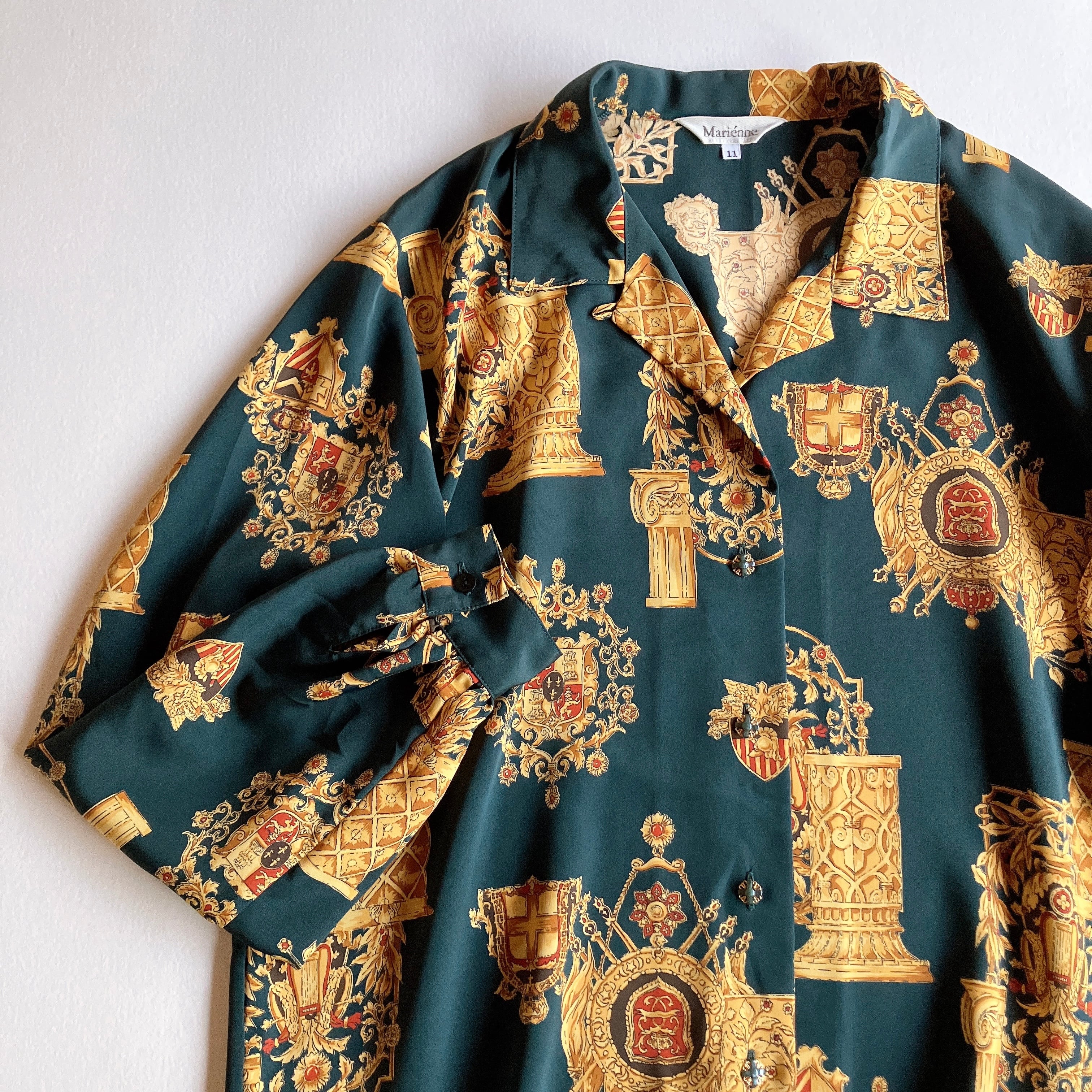 used レトロ 緑 装飾柄 シャツ 古着 ヴィンテージ vintage