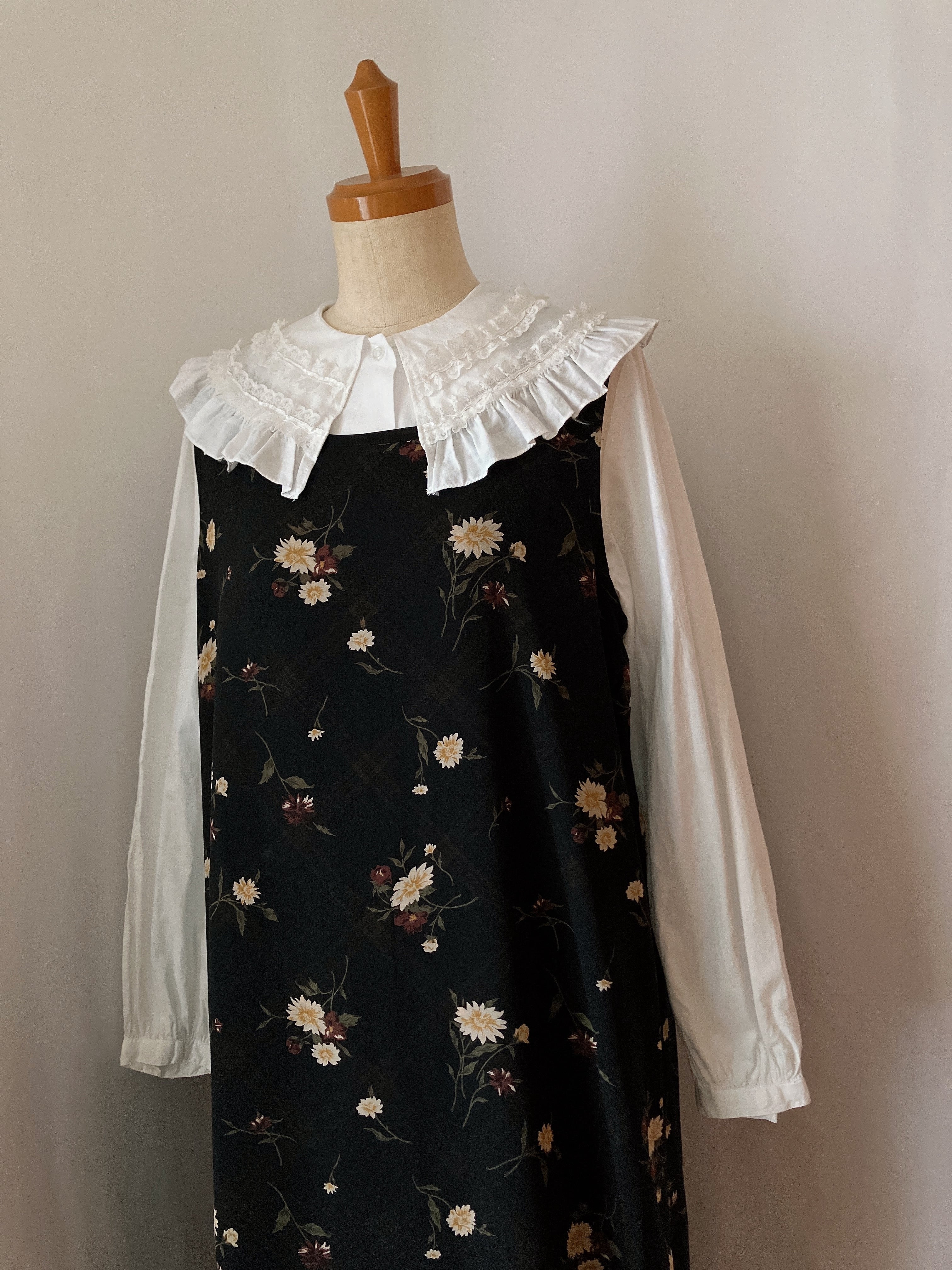 花柄とチェックのレイヤードが可愛らしいデザイン。