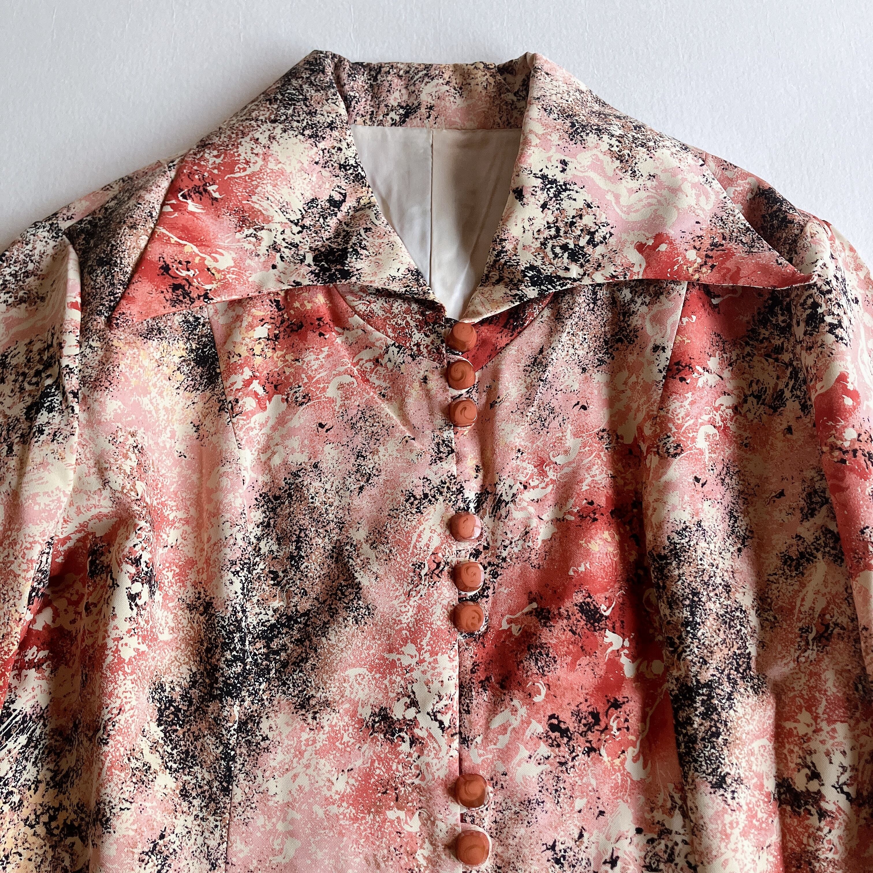 60s 70s 80s 90s の クラシカル で レトロ アンティーク ビンテージ / vintage ヴィンテージ なテイストの 古着 アート柄 総柄 個性的 希少 シャツ ブラウス ワンピース を出品しております。一点物 ユニセックス 古着 もたくさん扱っておりますので、ご覧下さいませ♪