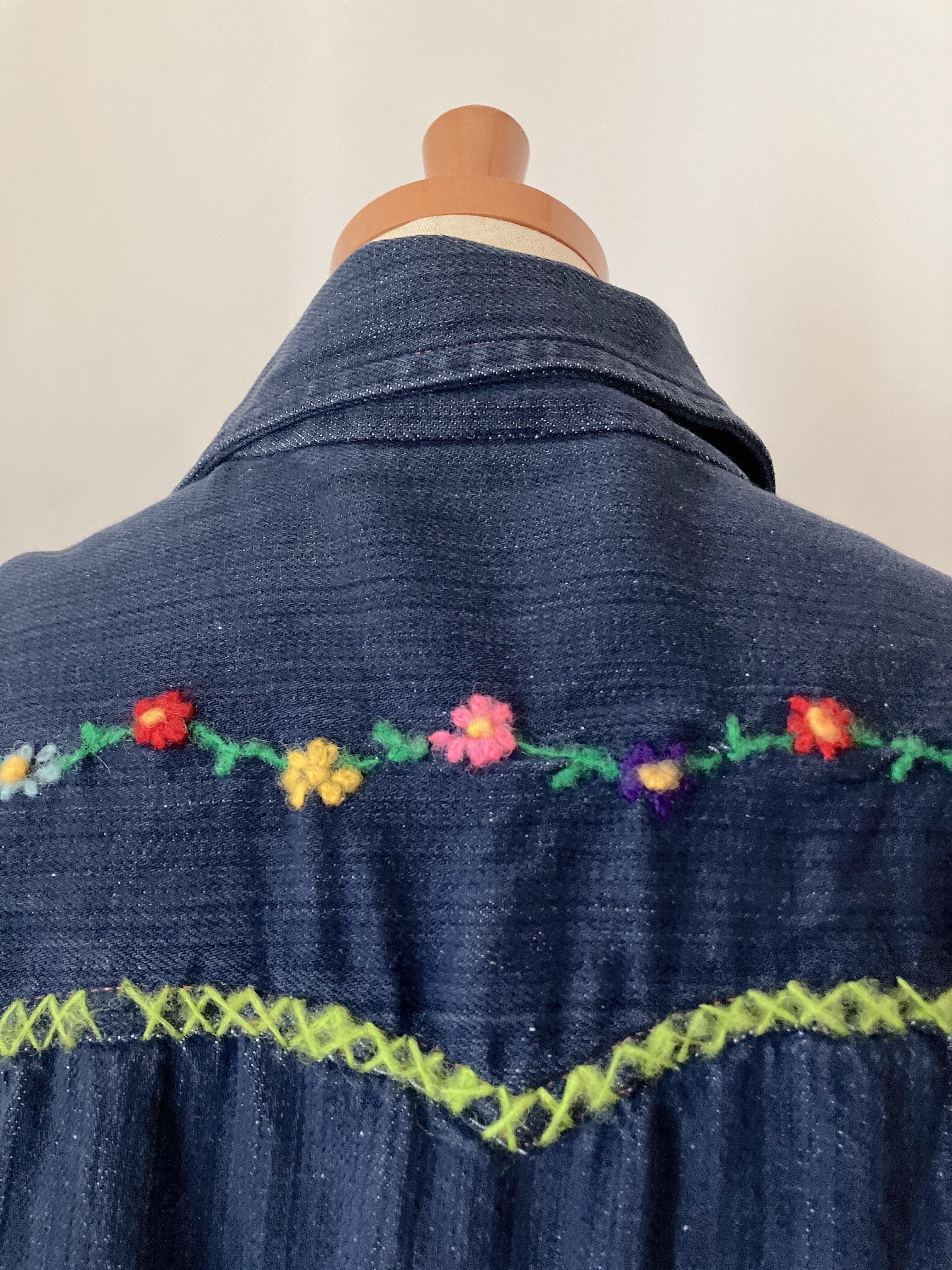 デニム地に、色とりどりの刺繍。