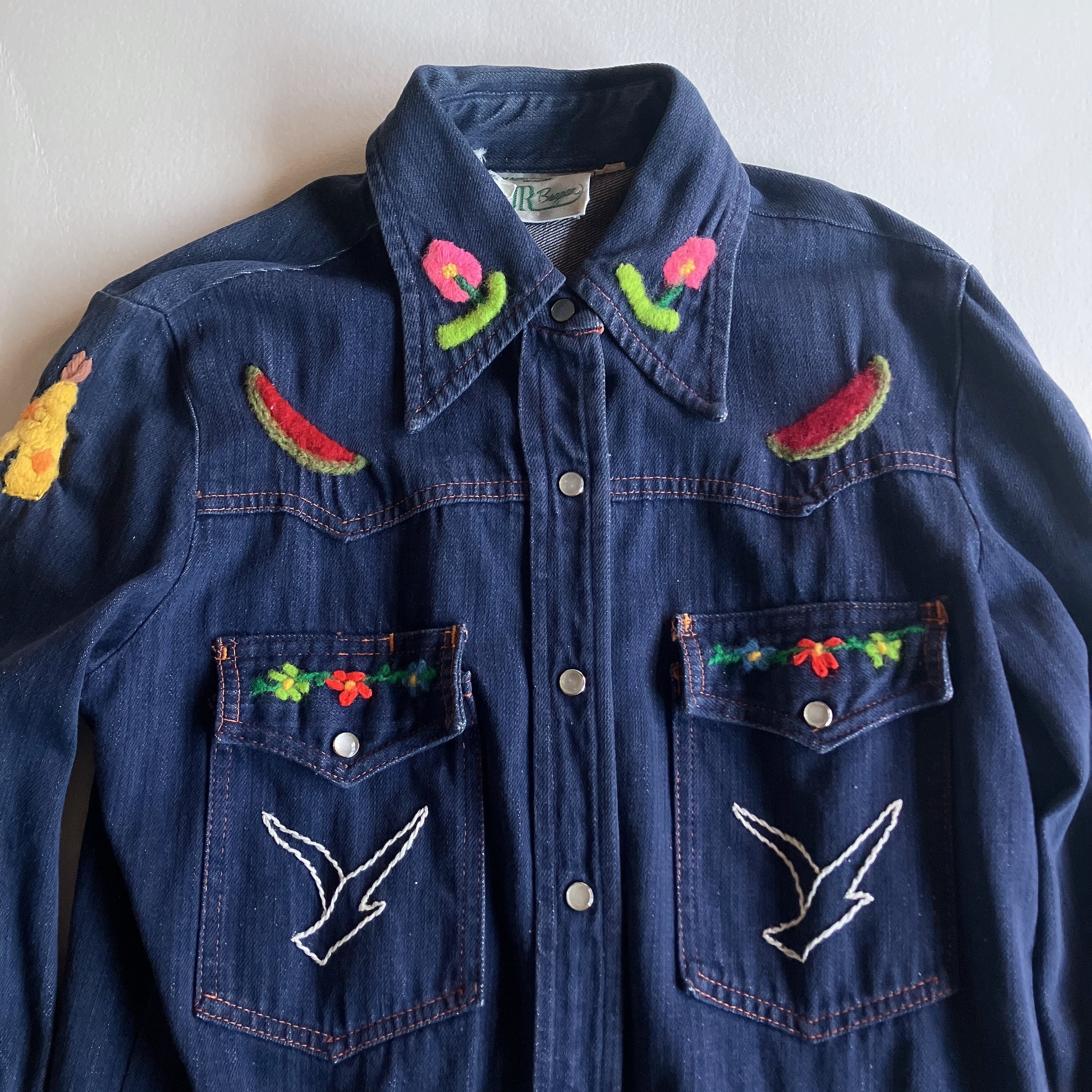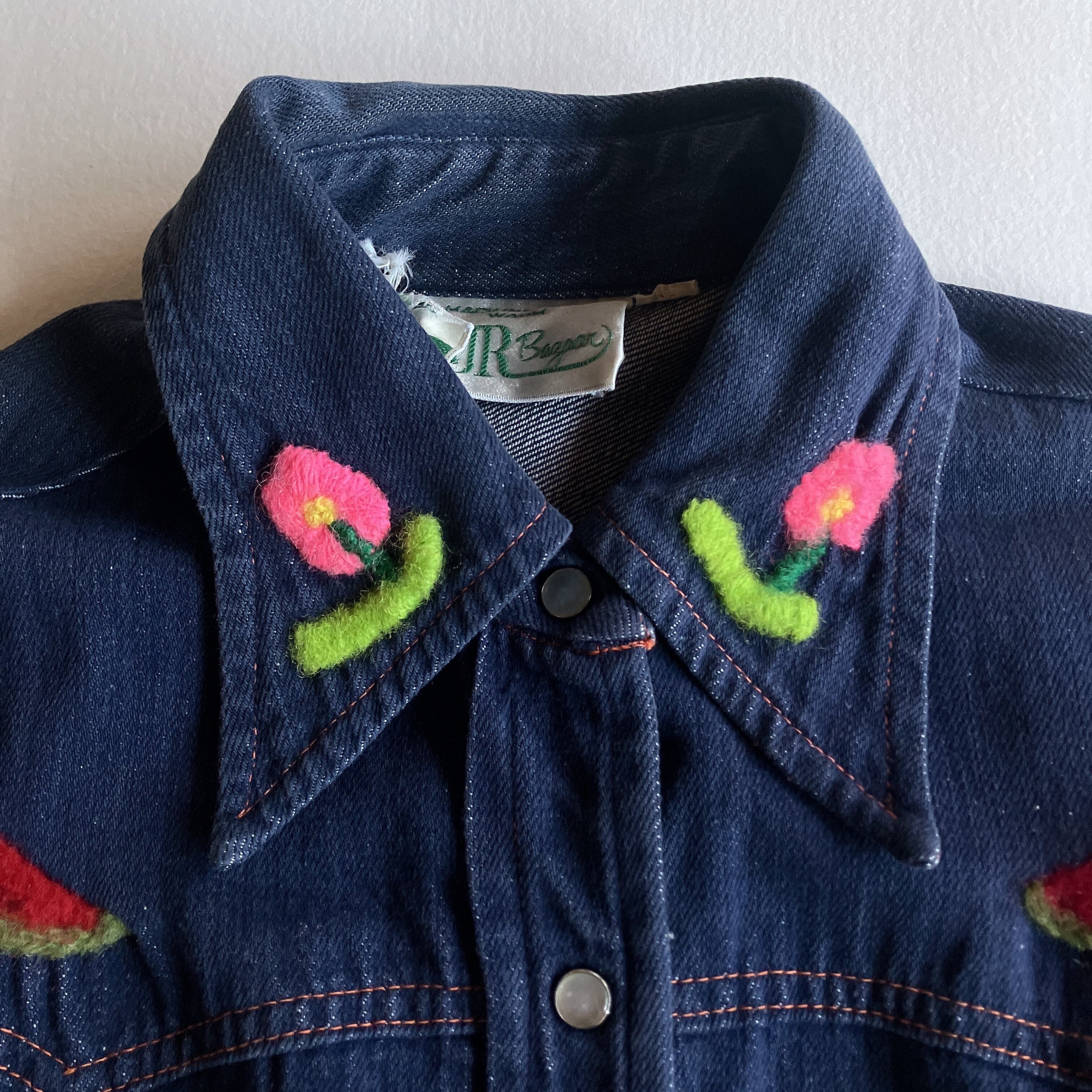used レトロ 70s シアーズ刺繍 デニムシャツ 古着 ヴィンテージ
