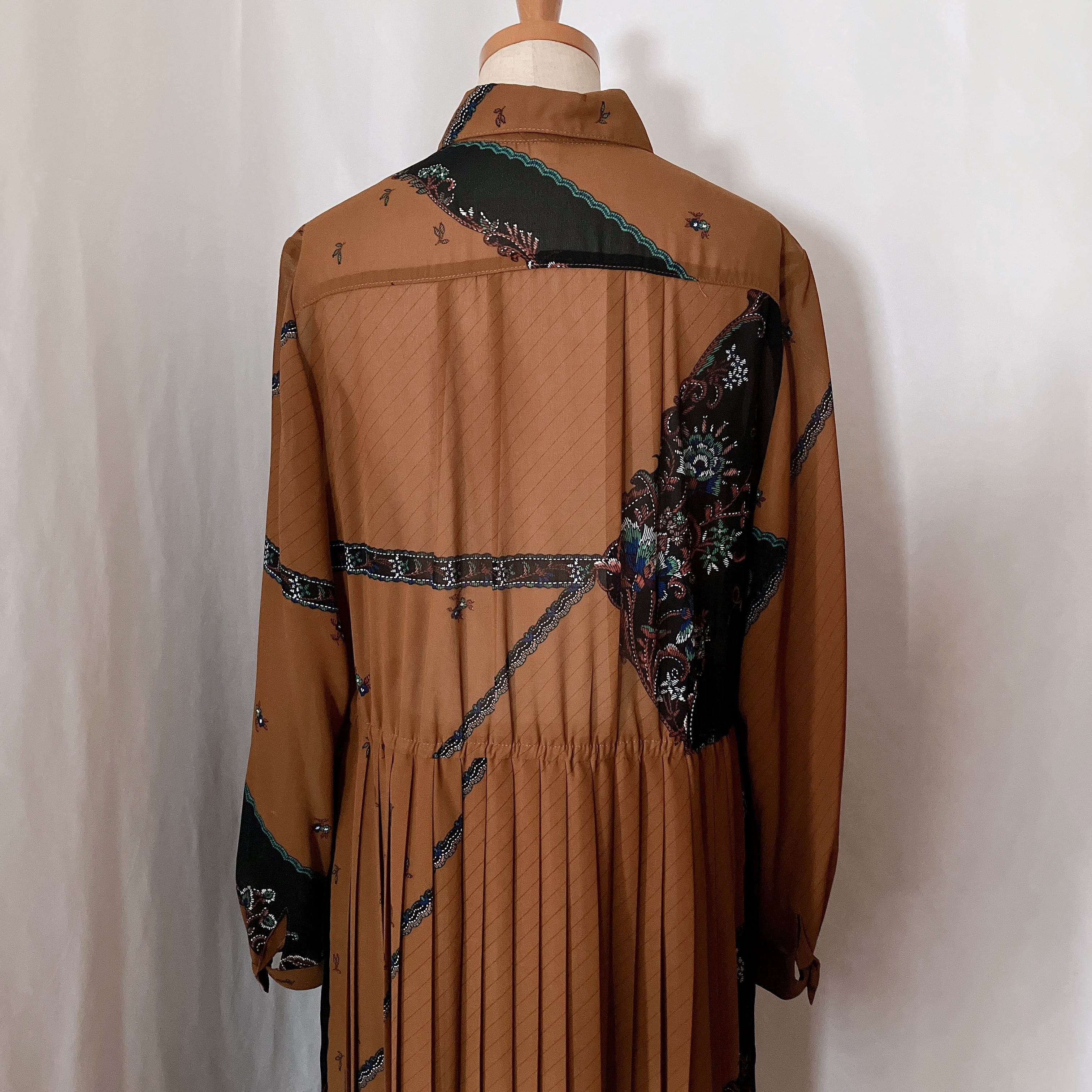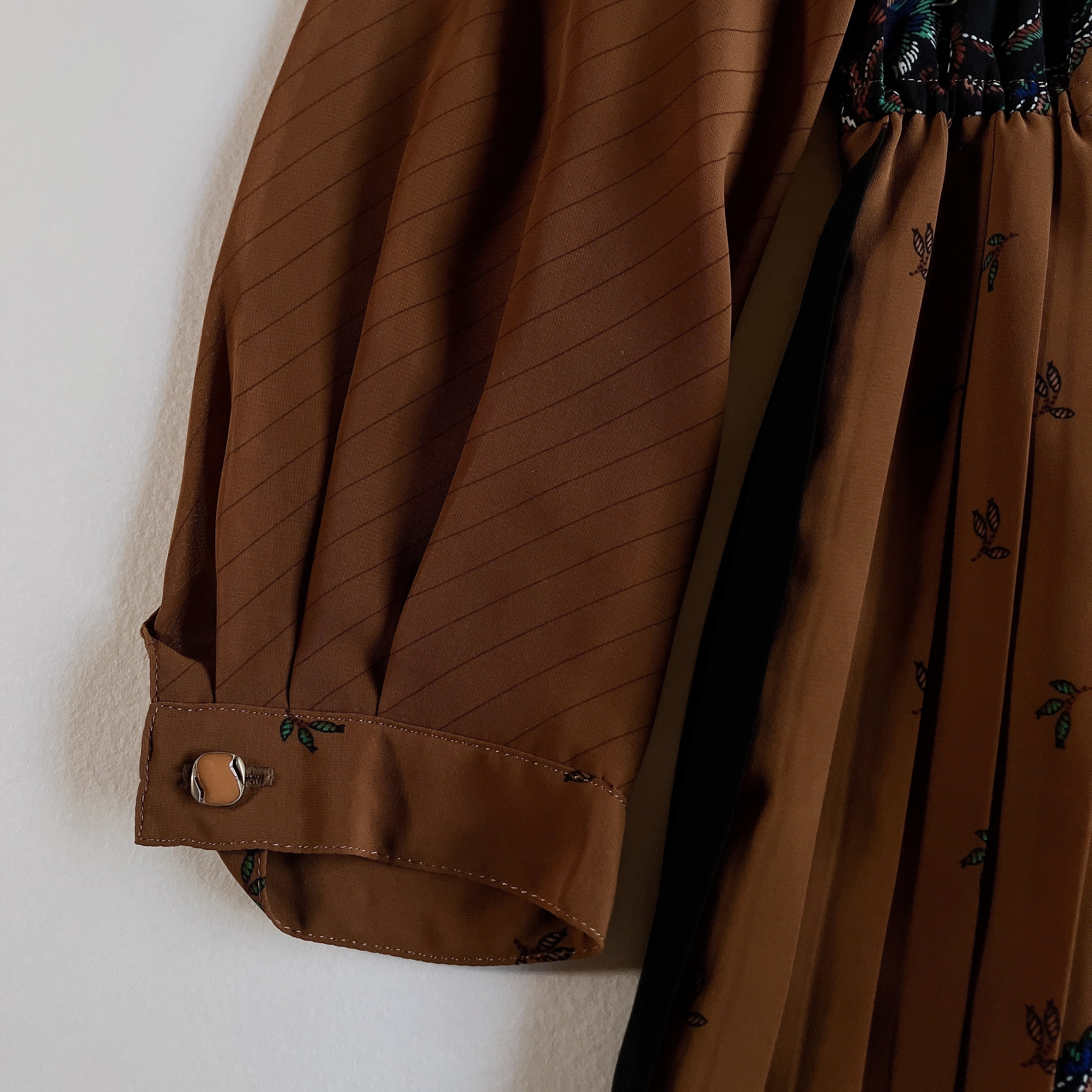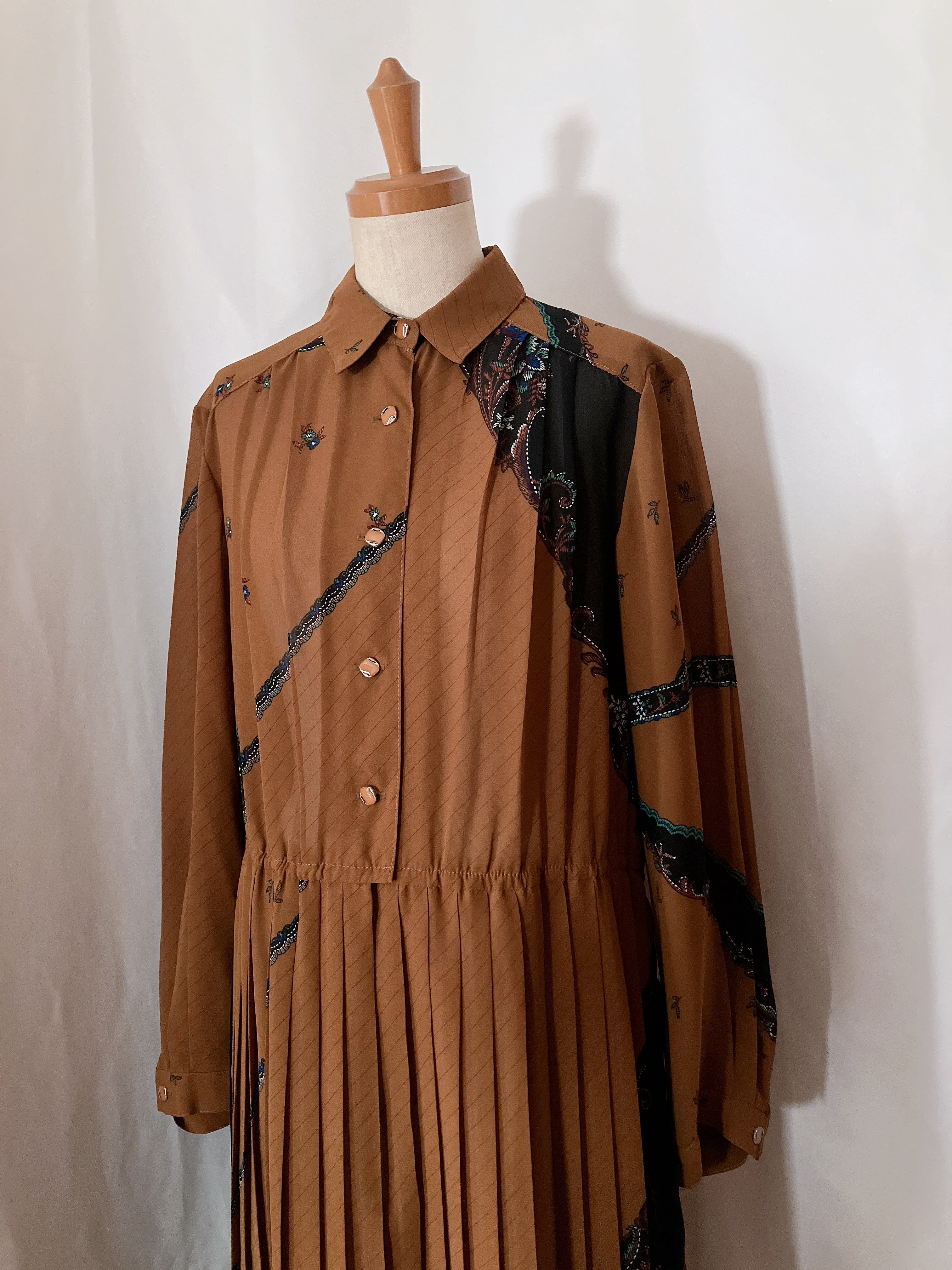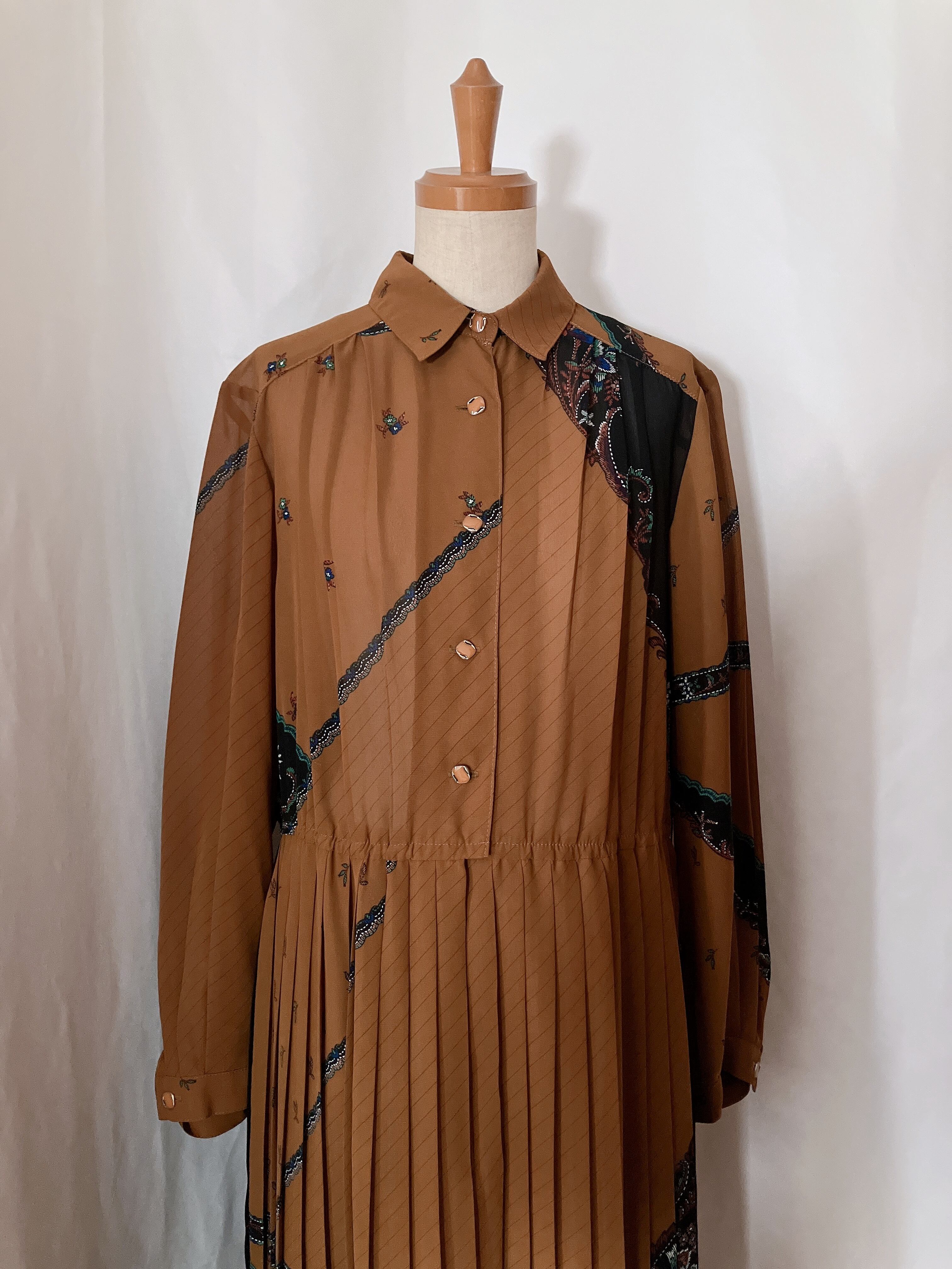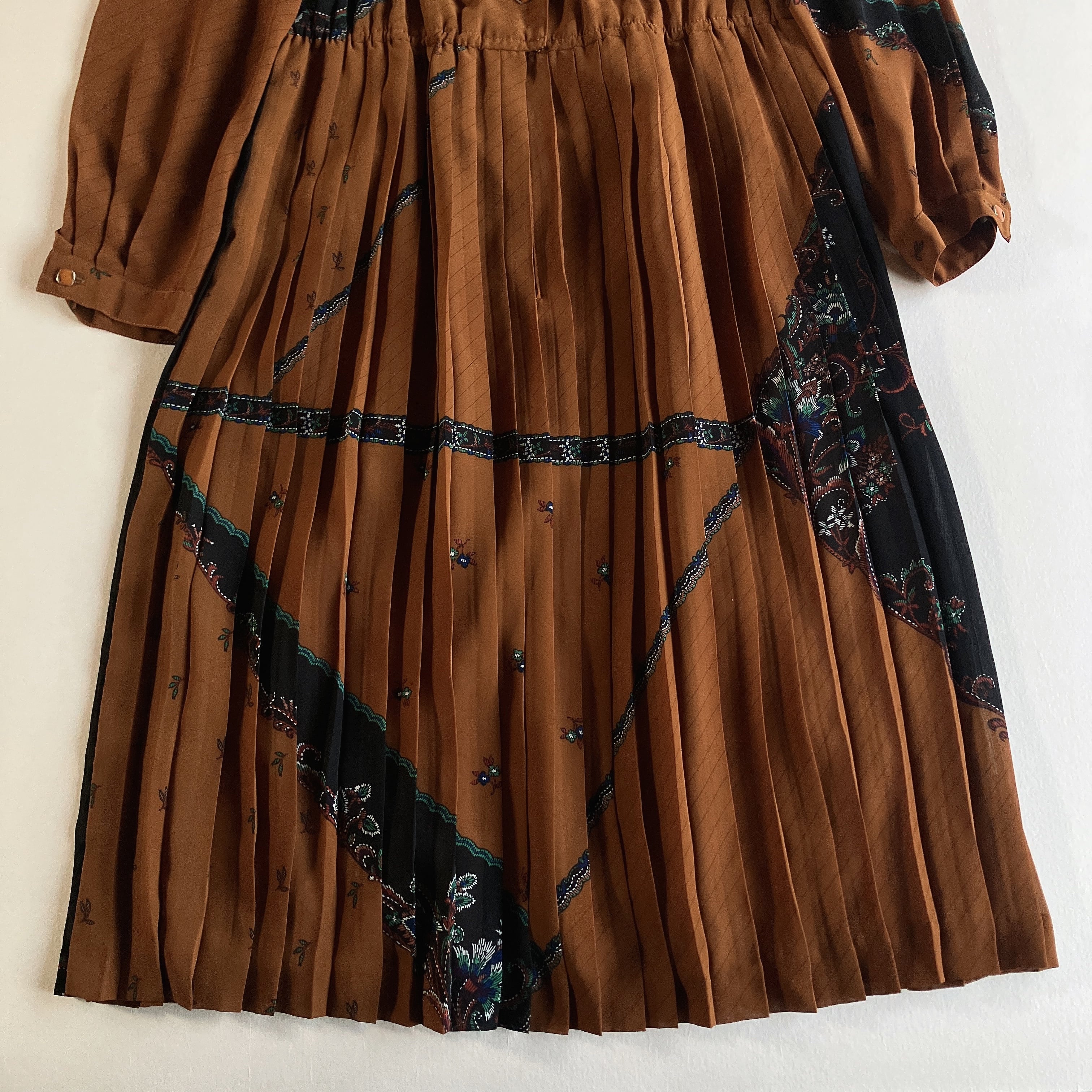 used レトロ 茶系 プリーツワンピース 古着 ヴィンテージ vintage