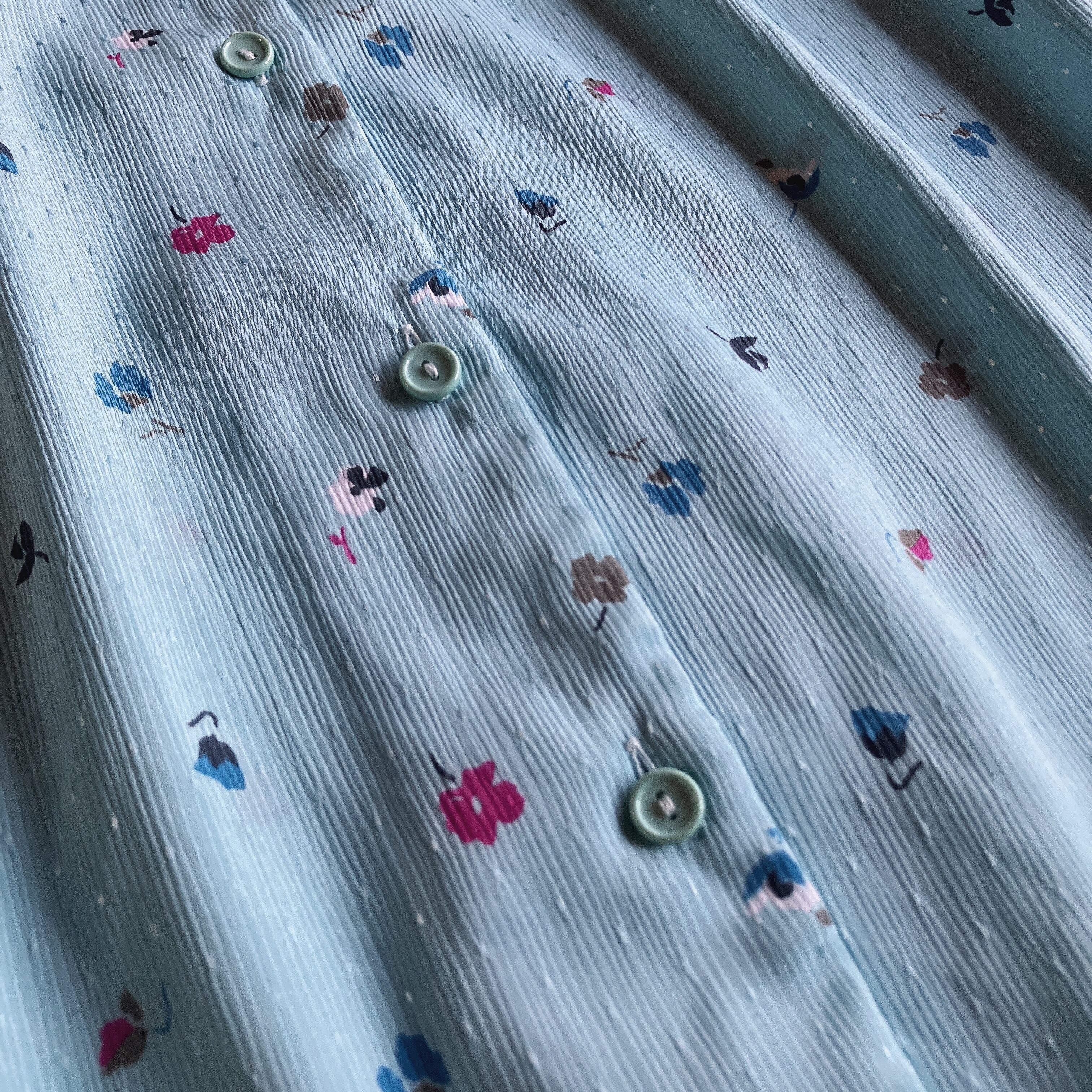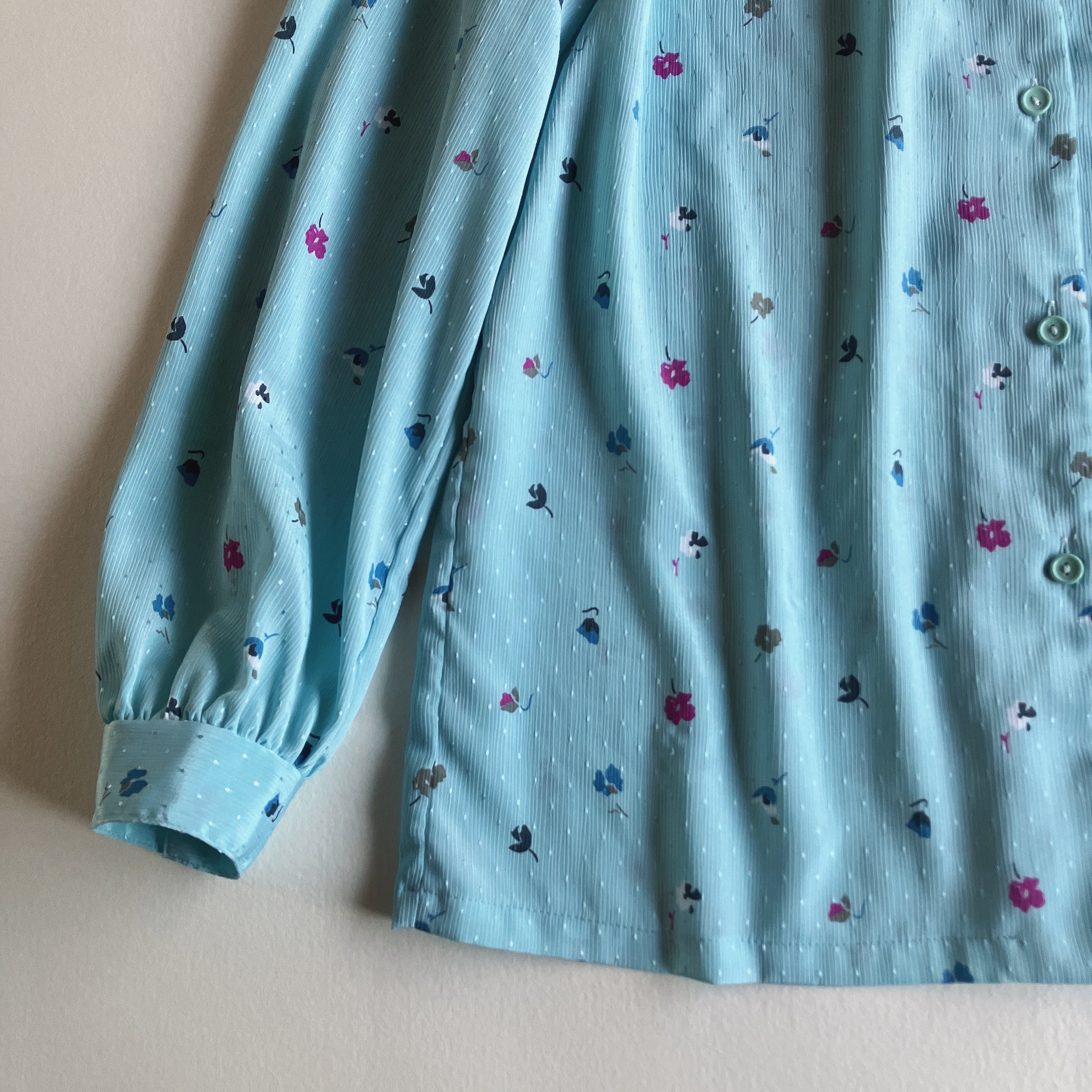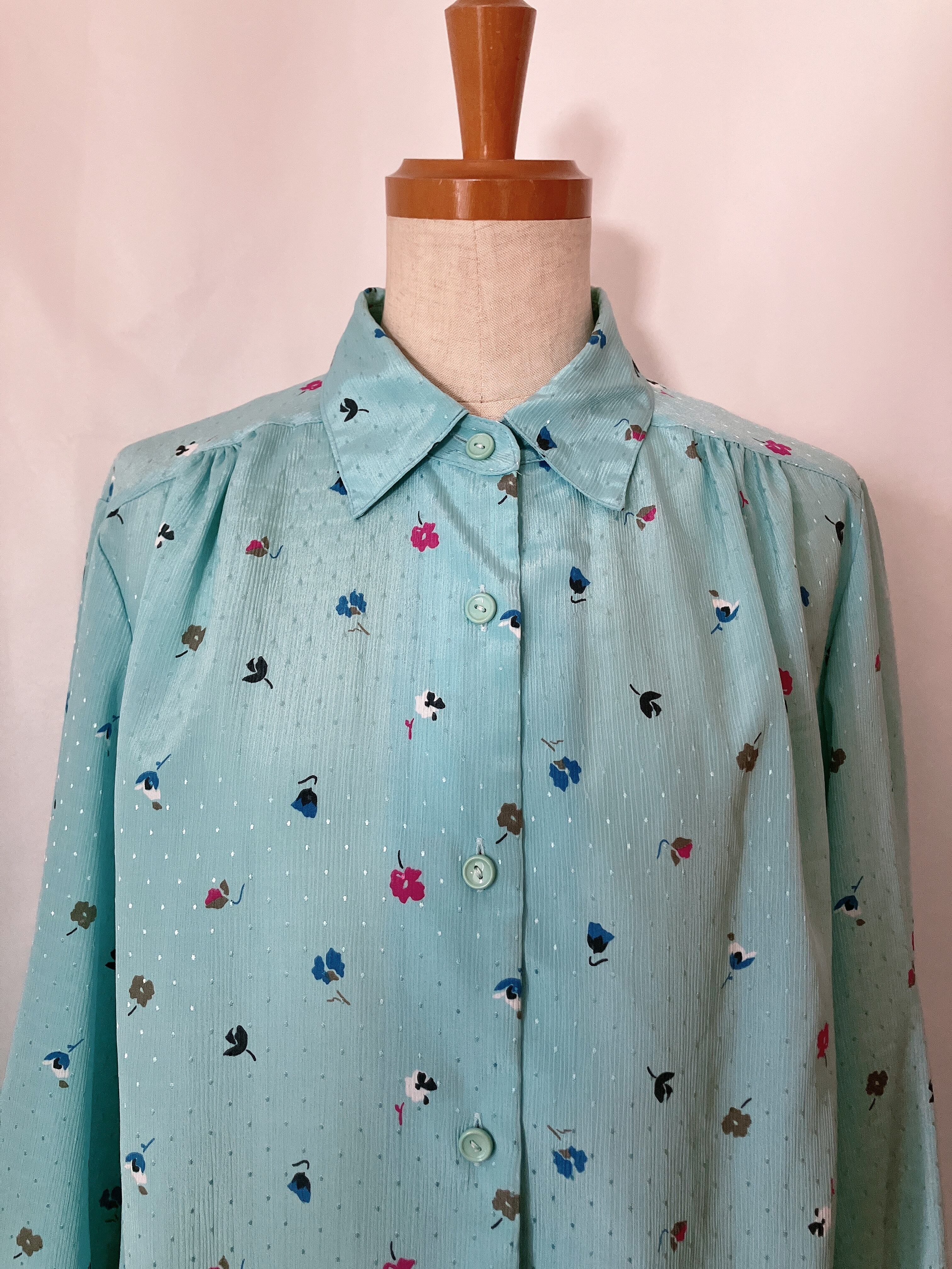 used レトロ 水色 小花柄 ブラウス 古着 ヴィンテージ vintage
