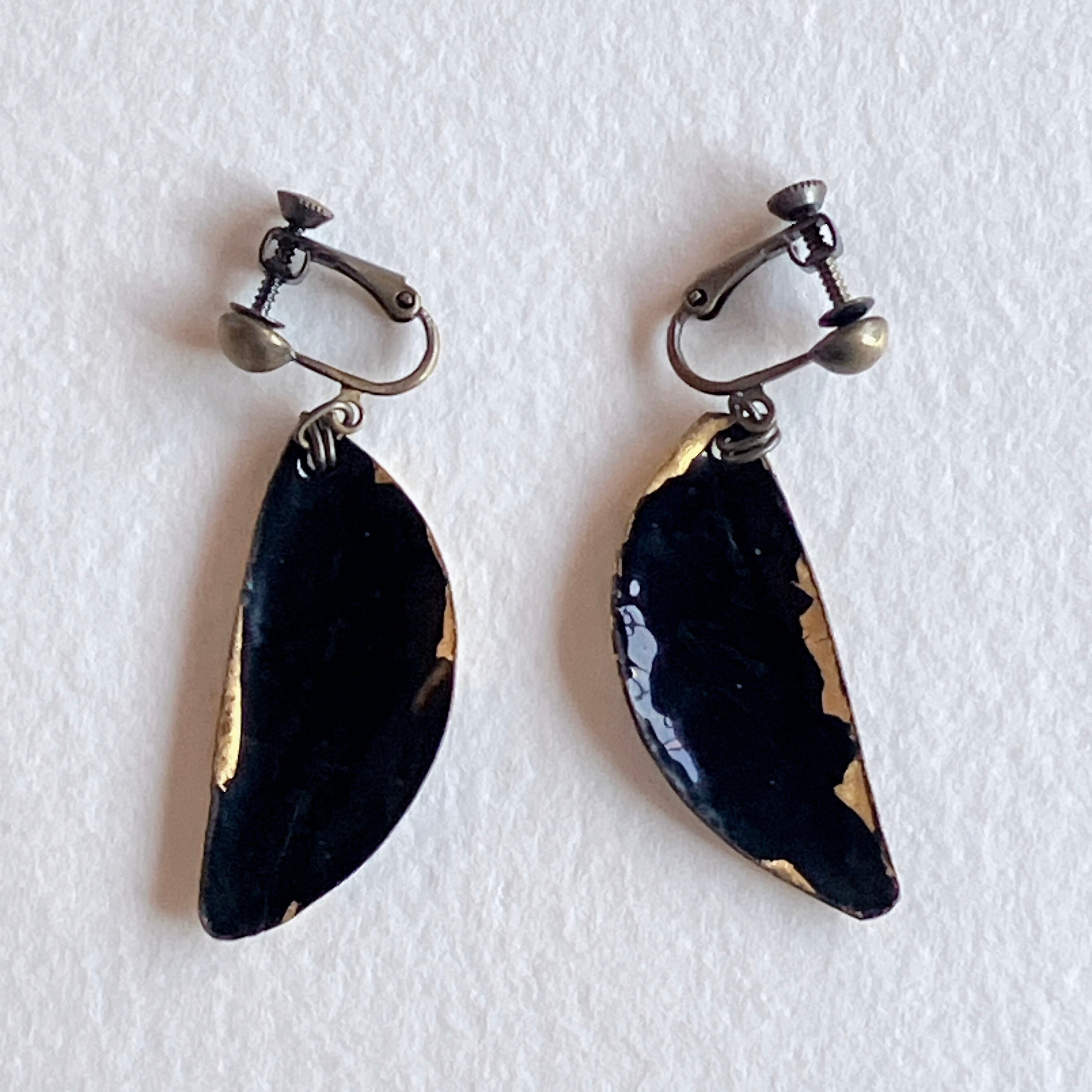 used レトロ 黒×金 デザインイヤリング 古着 ヴィンテージ vintage