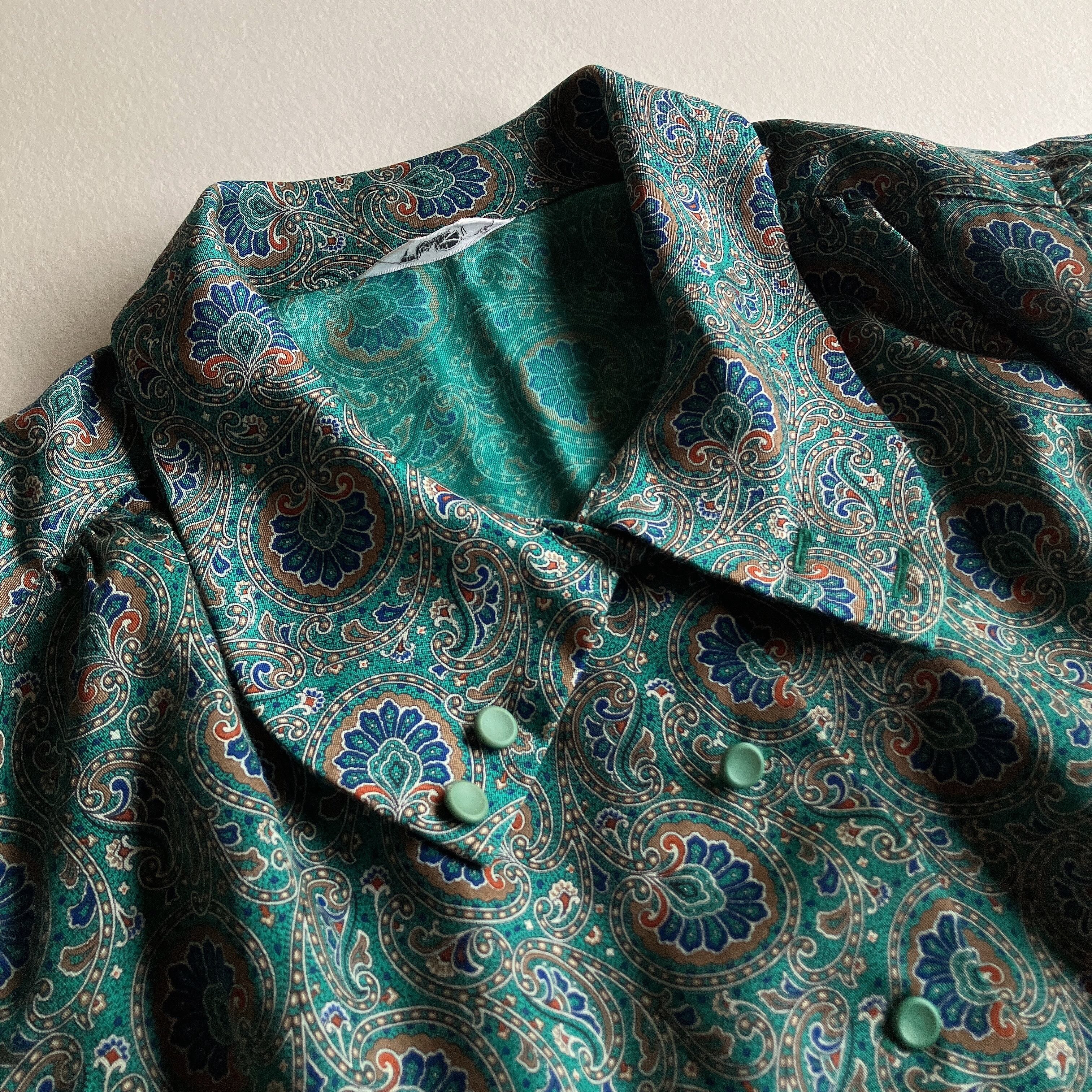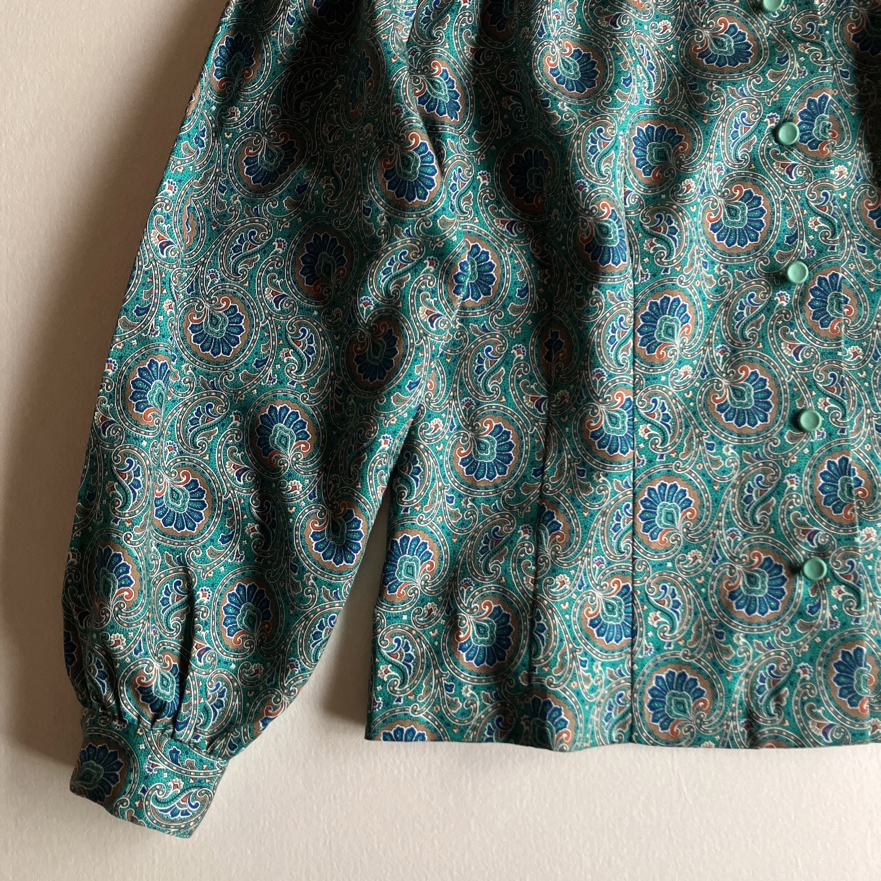 used レトロ 緑 ペイズリーブラウス 古着 ヴィンテージ vintage