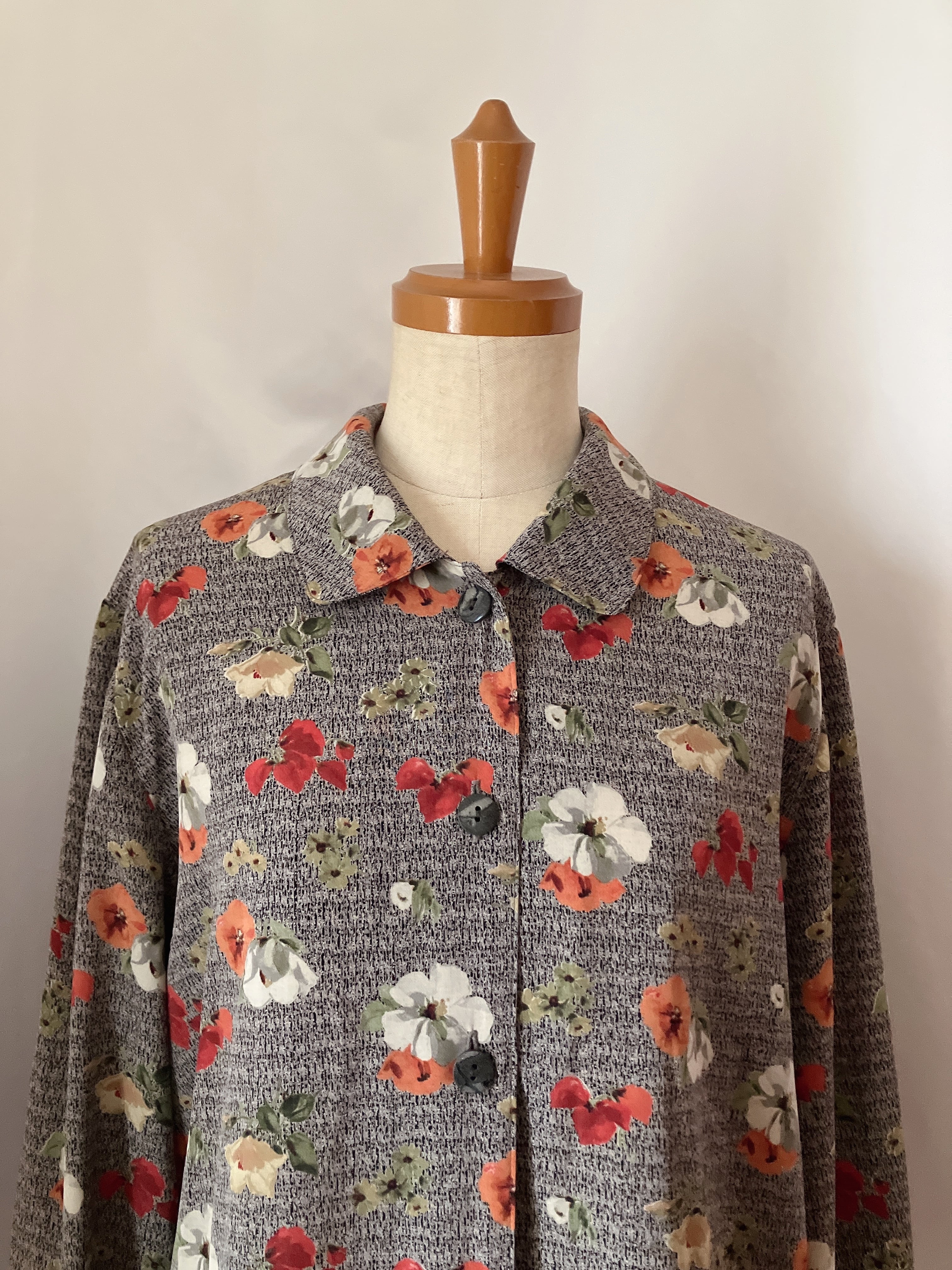 used レトロ グレー 花柄 ブラウス 古着 ヴィンテージ vintage