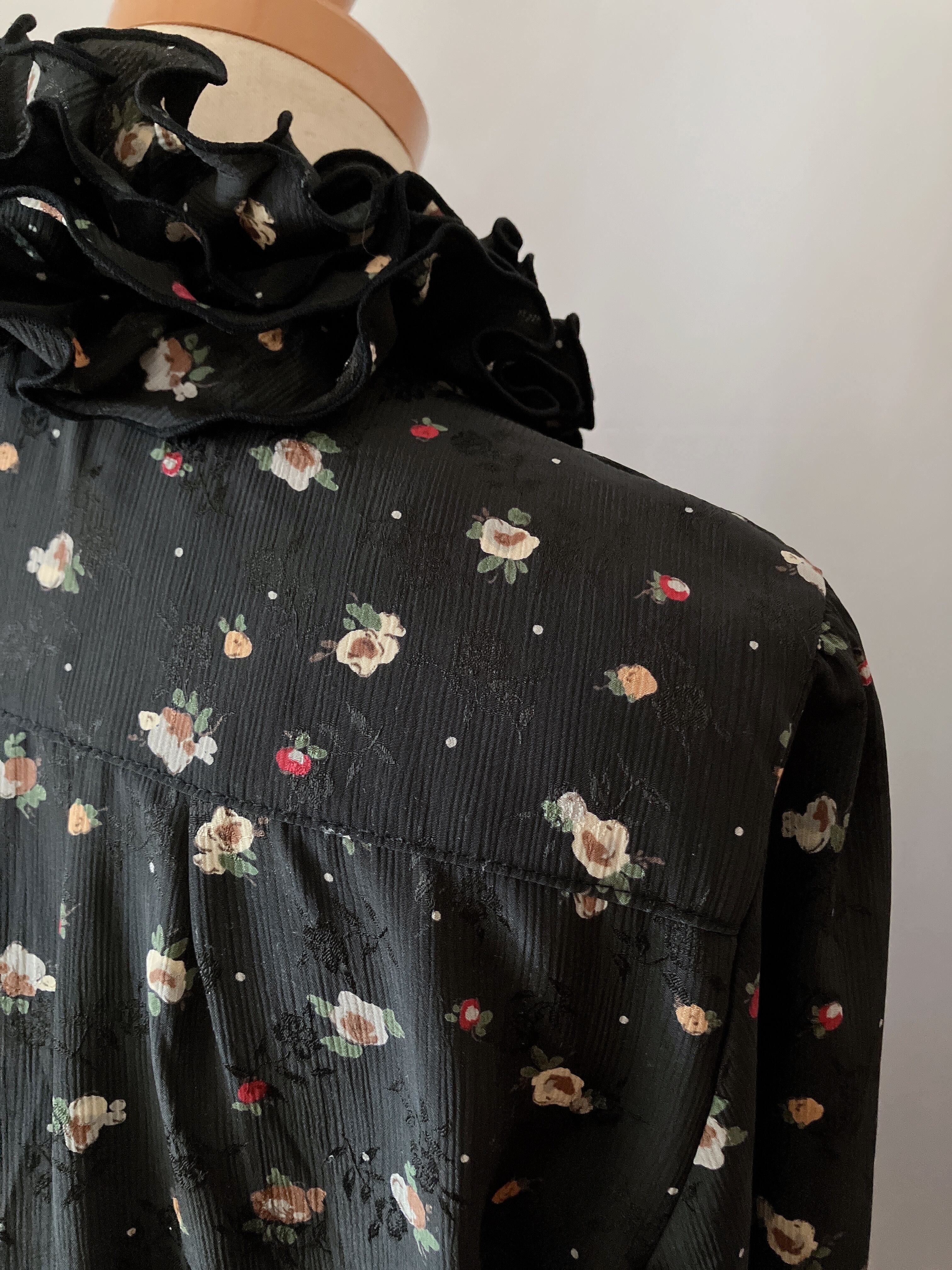 used レトロ 黒 花柄 フリルブラウス 古着 ヴィンテージ vintage