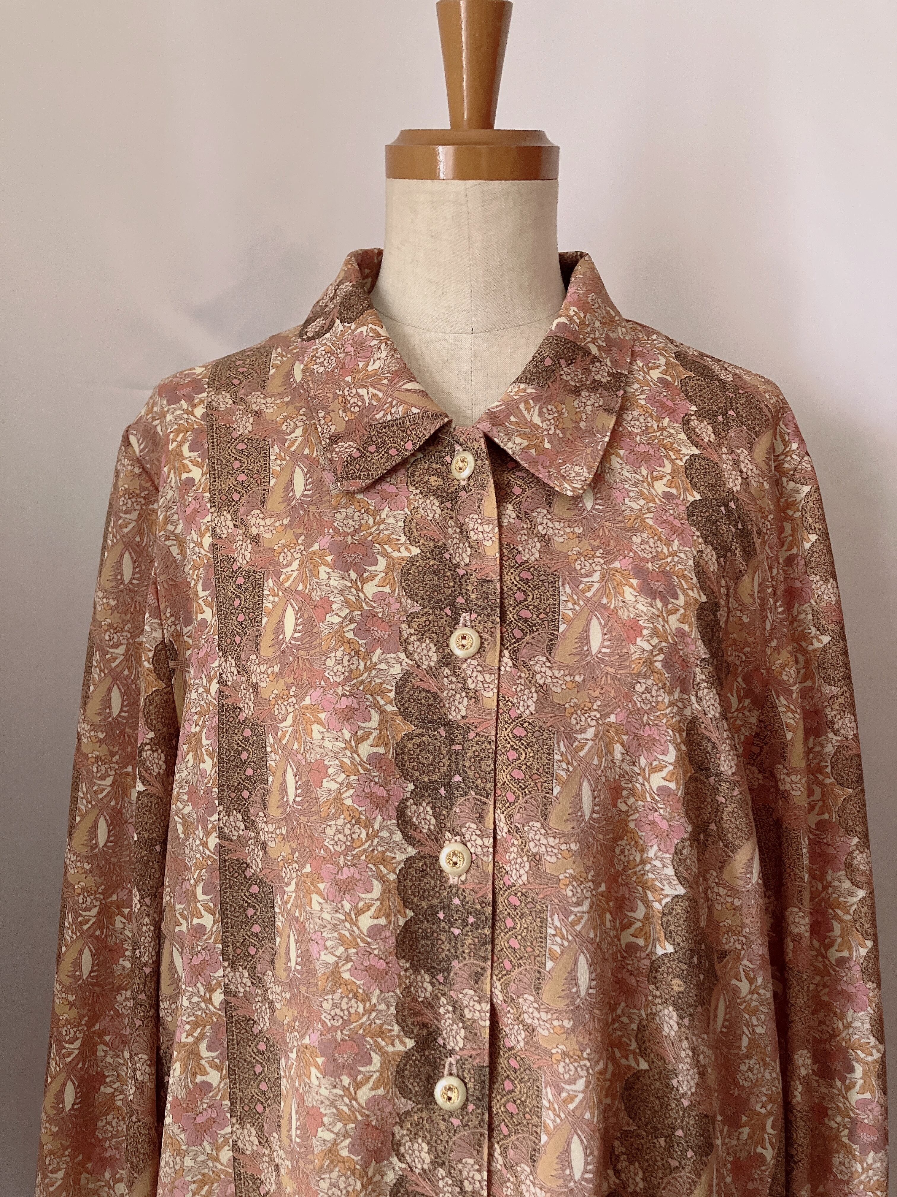 used レトロ ピンク 花柄 ブラウス 古着 ヴィンテージ vintage