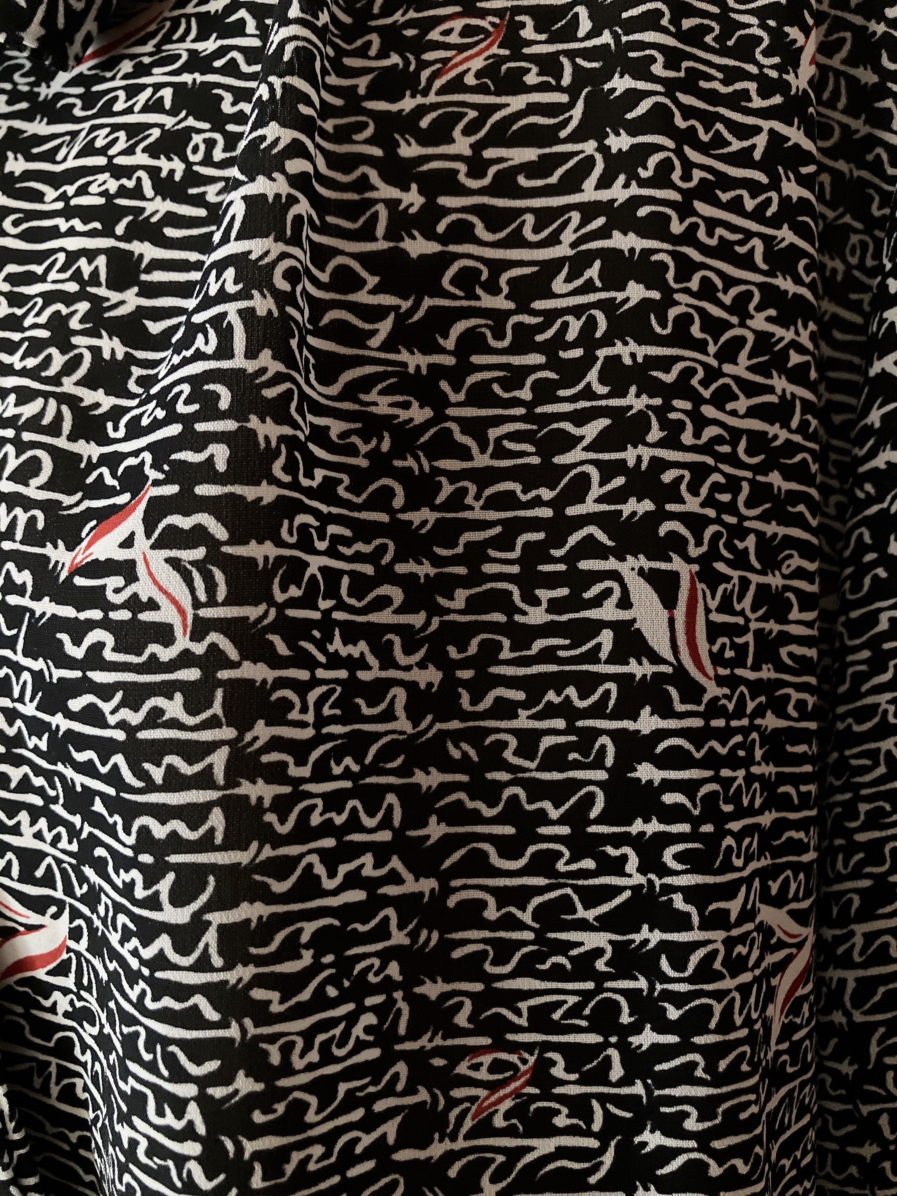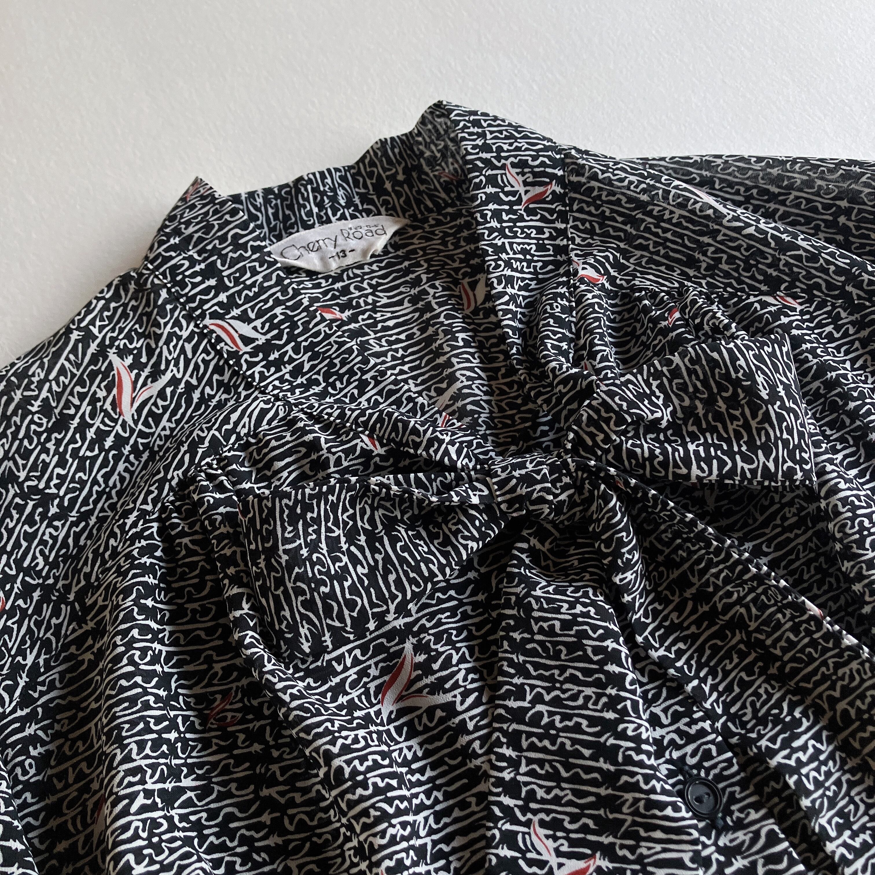 レトロなモノトーン総柄ブラウスです。