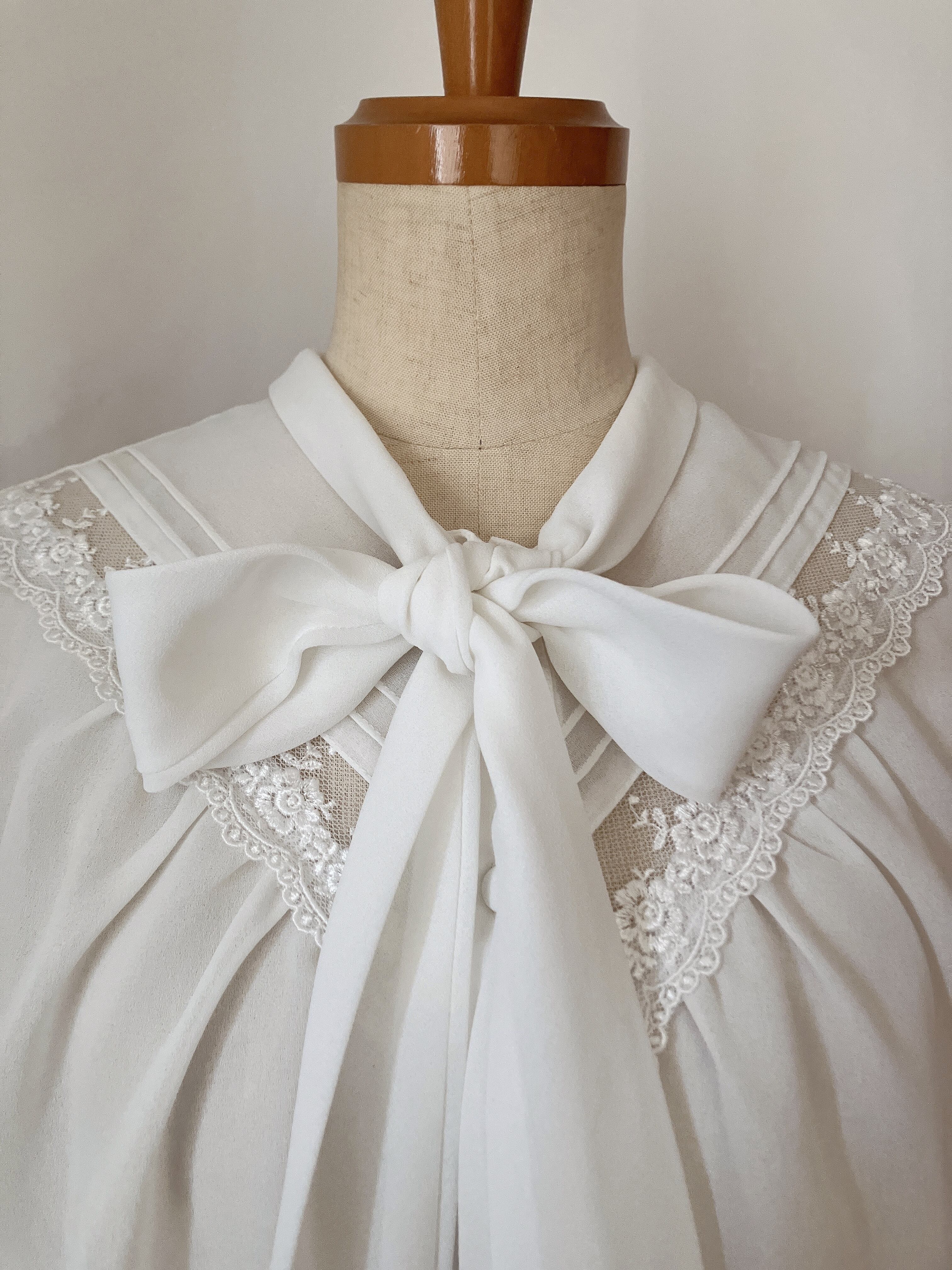 used レトロ 白 リボン レース ブラウス古着 ヴィンテージ vintage