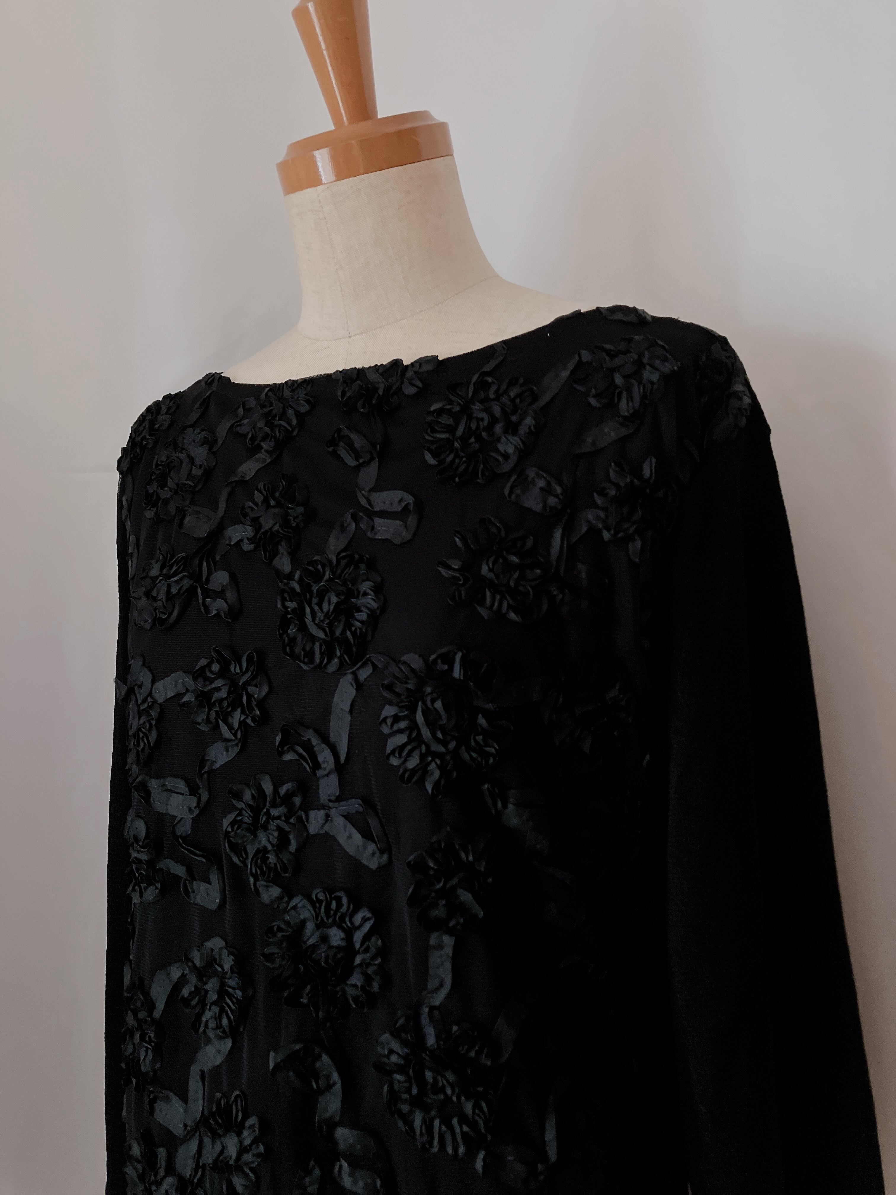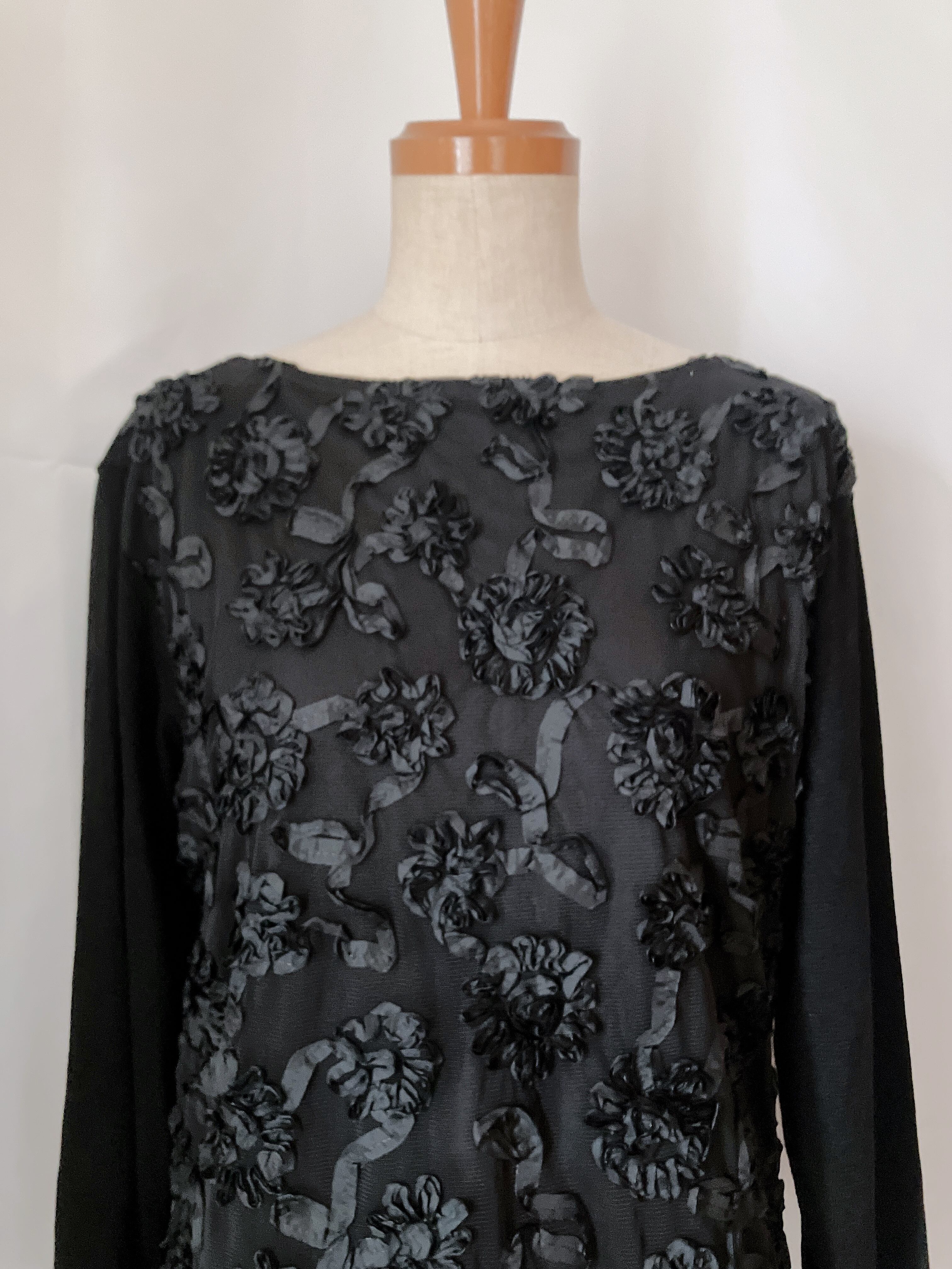 used レトロ 黒 フラワー刺繍 トップス 古着 ヴィンテージ vintage