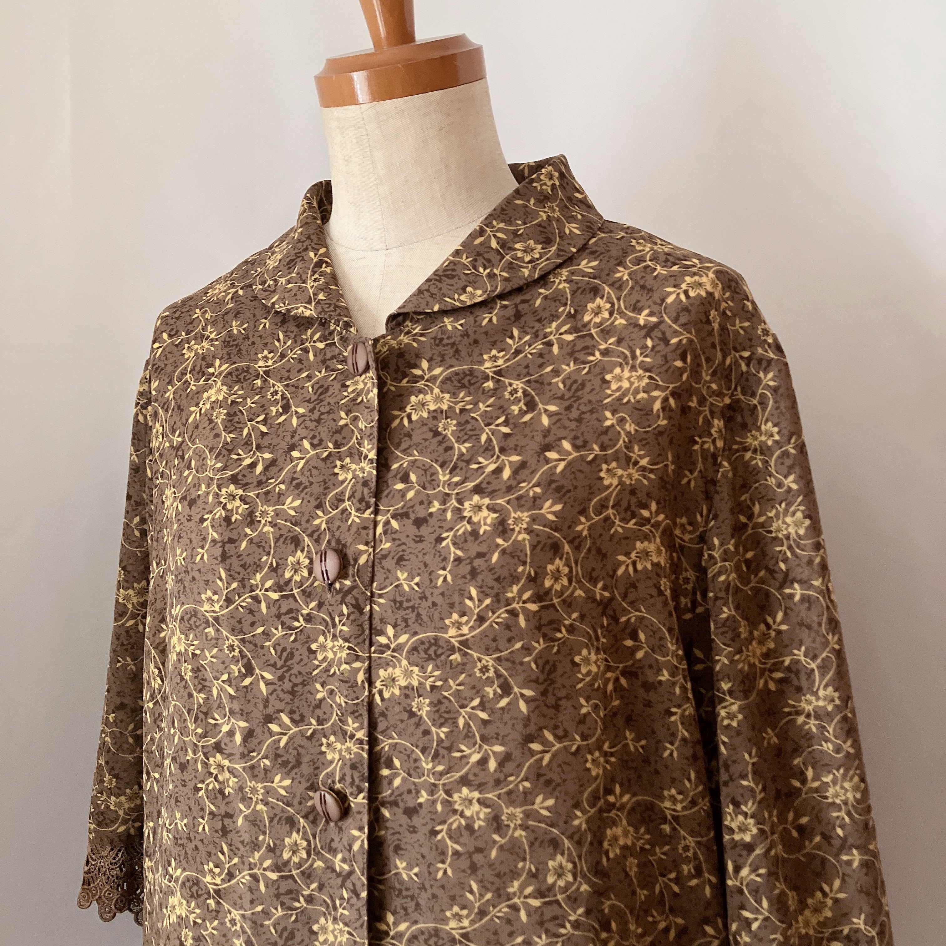 used レトロ 茶色 小花柄 レースブラウス 古着 ヴィンテージvintage
