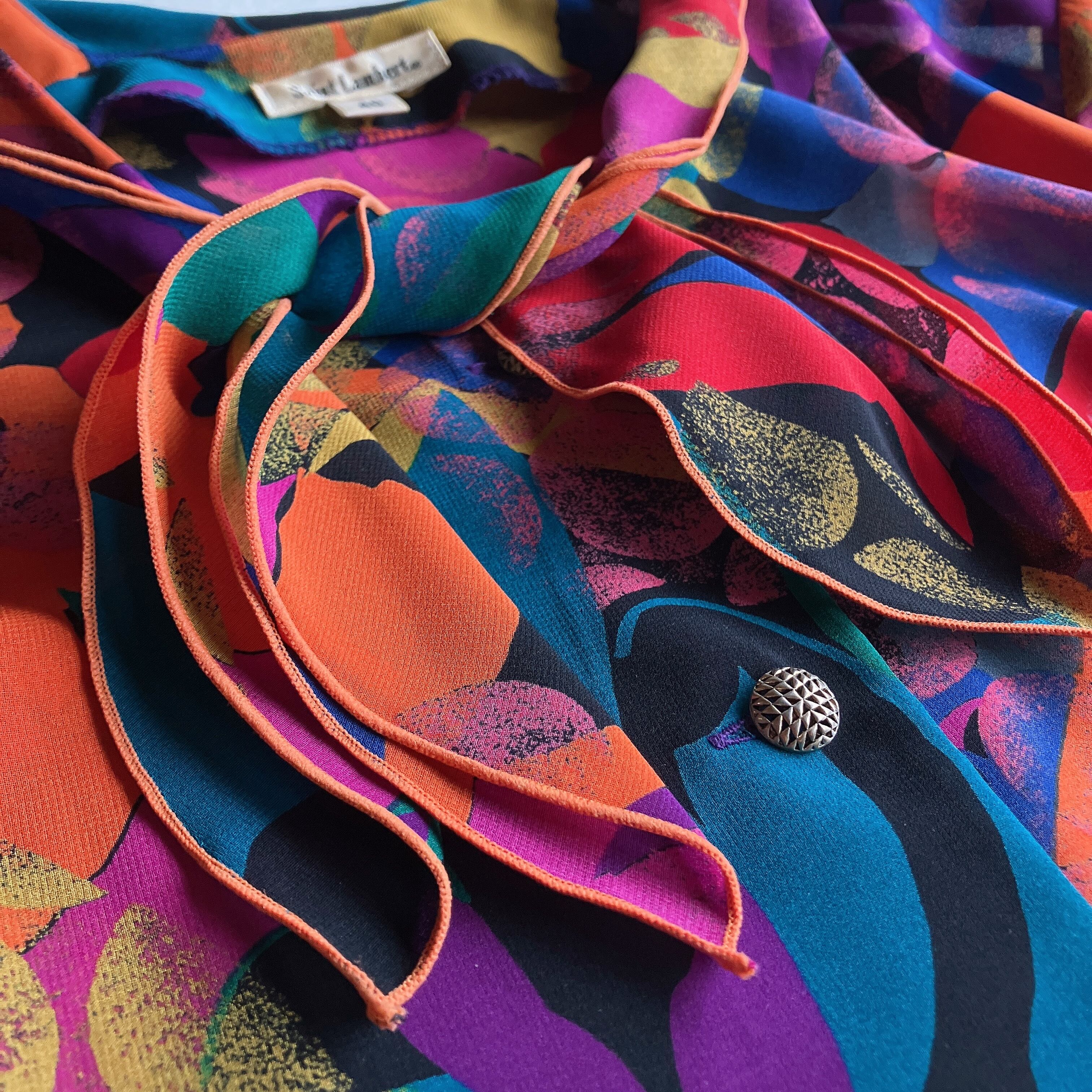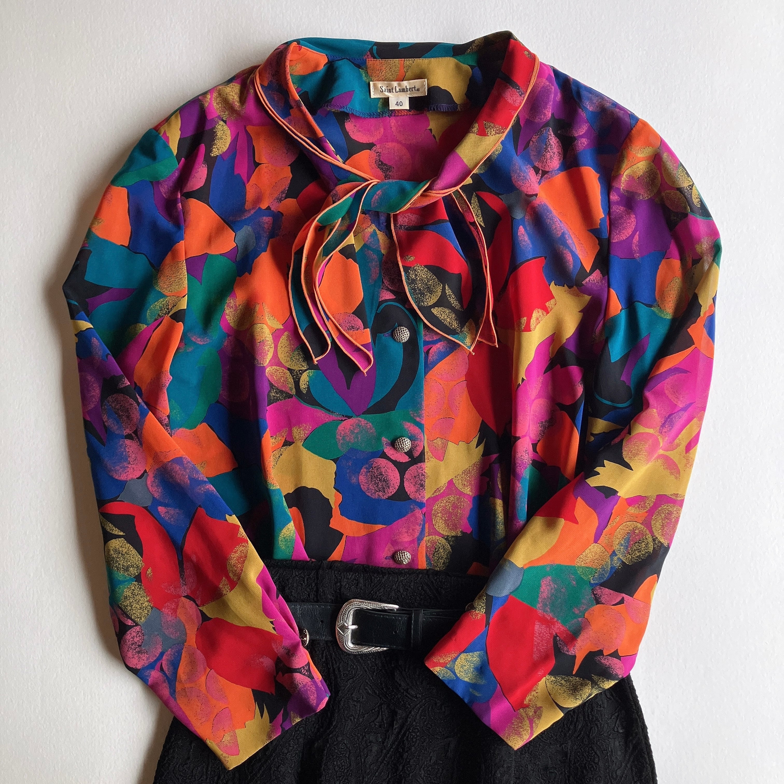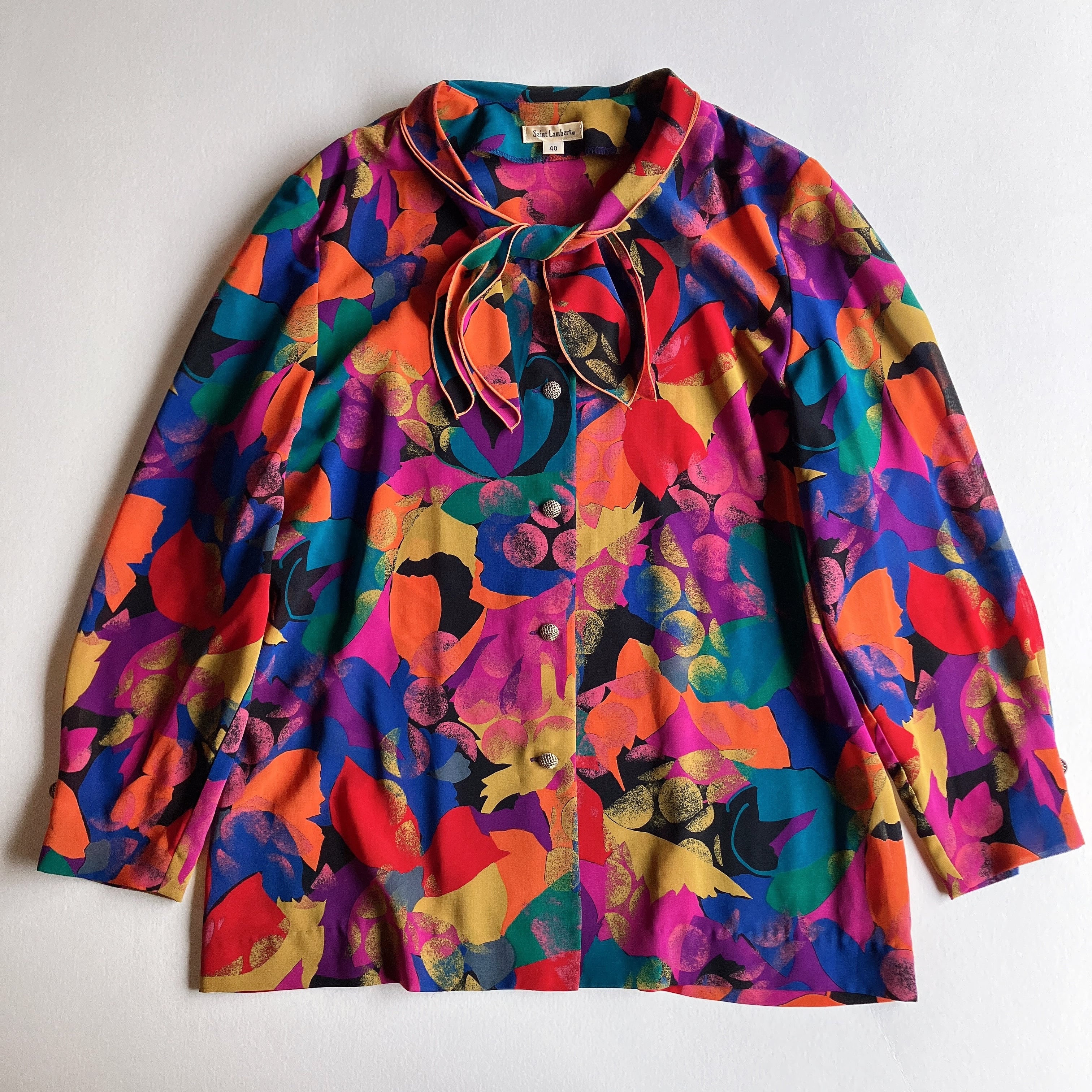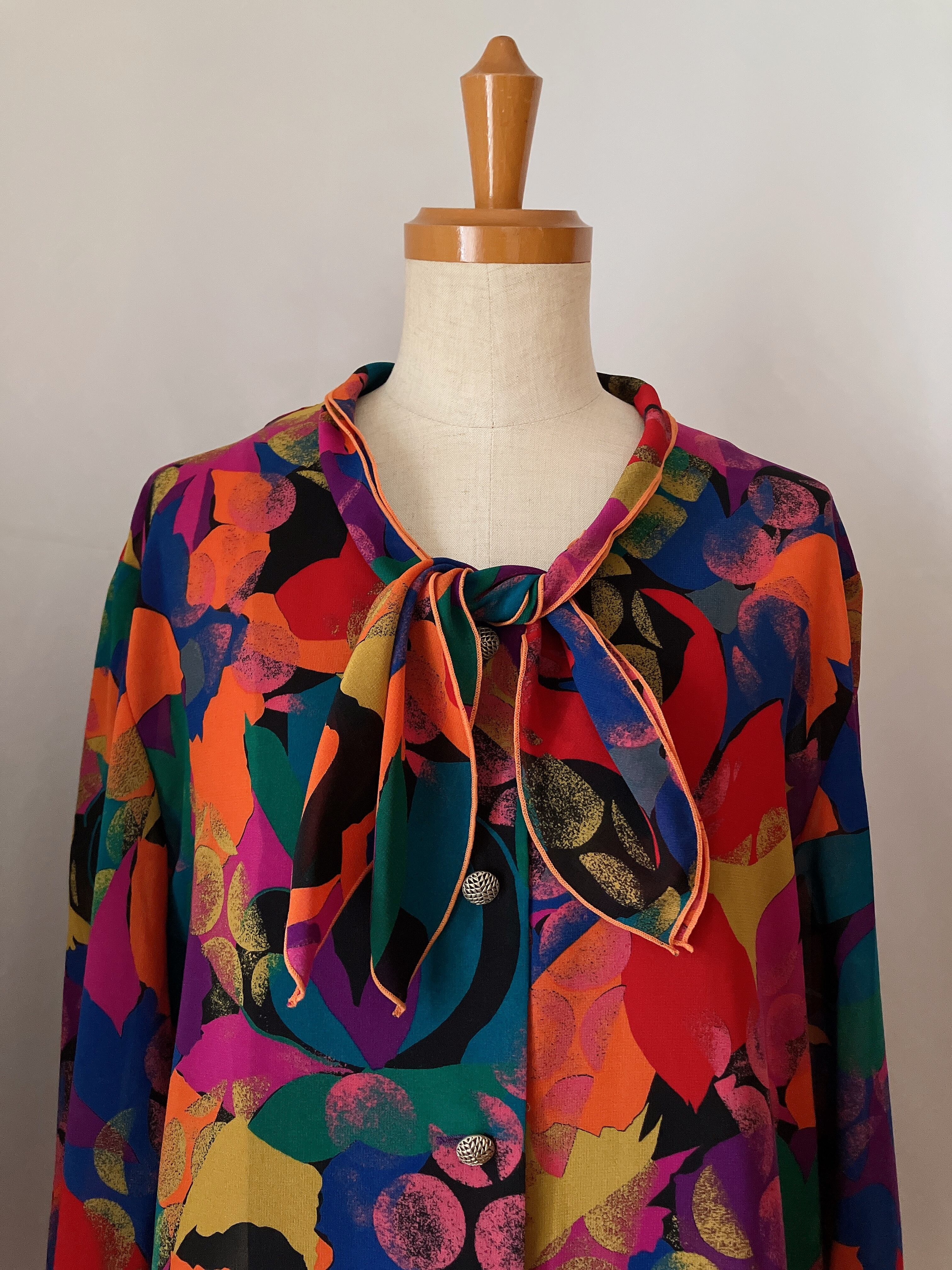 used レトロ サイケ 総柄 リボンブラウス 古着 ヴィンテージvintage
