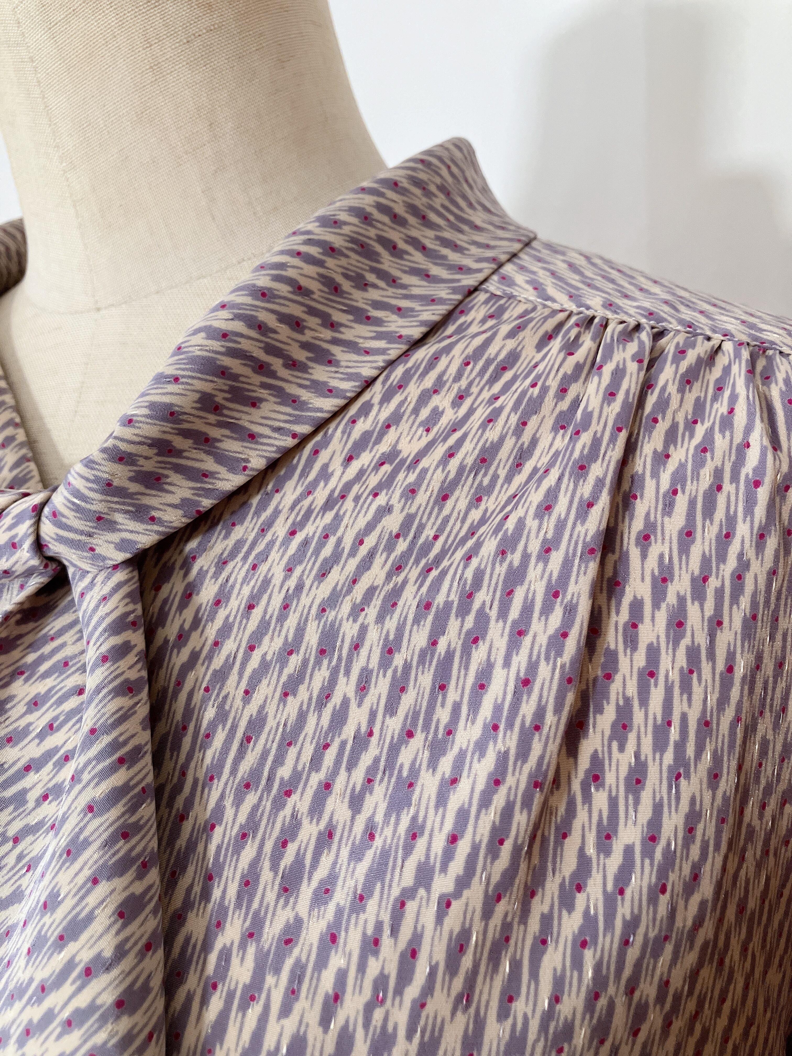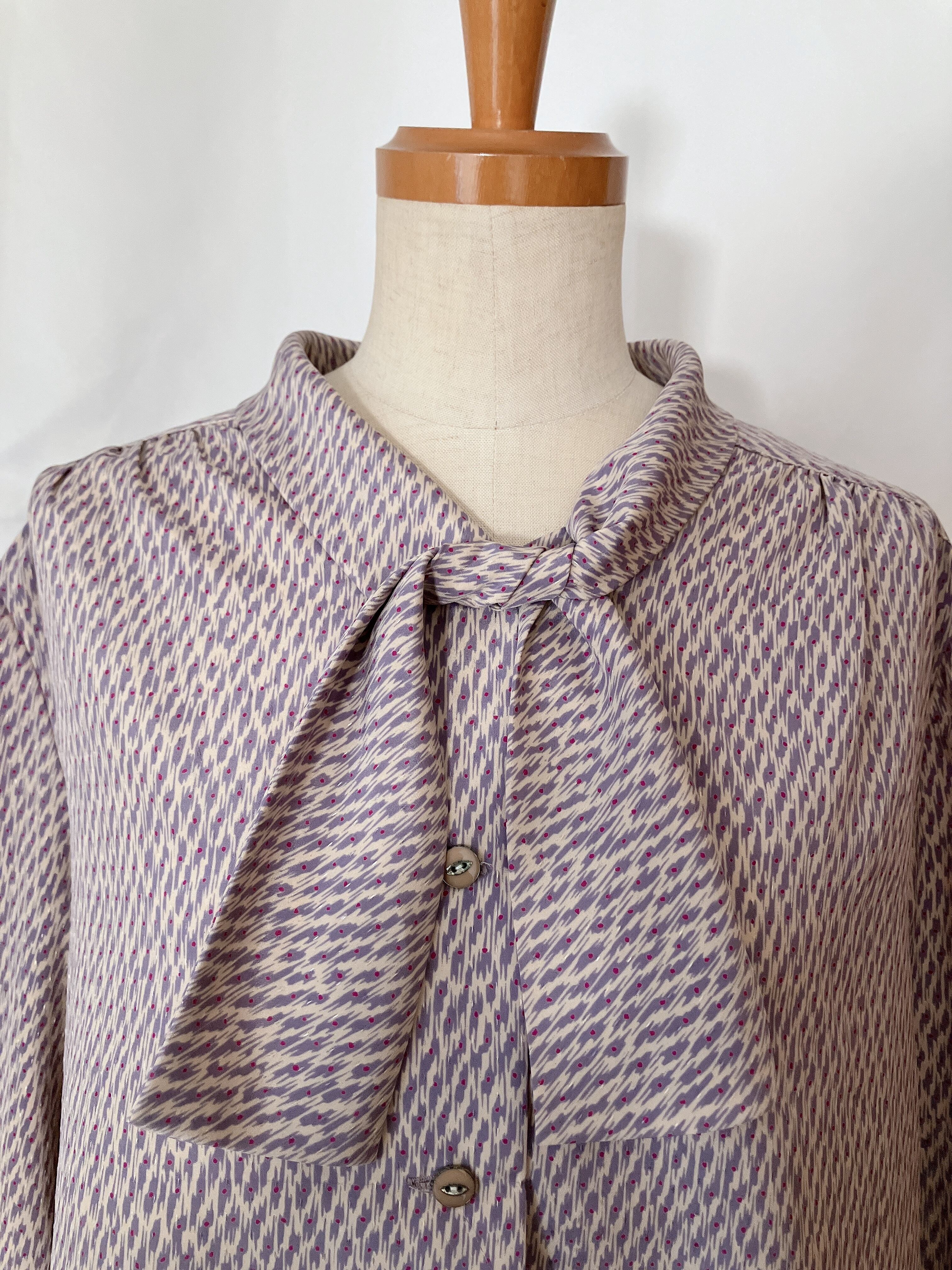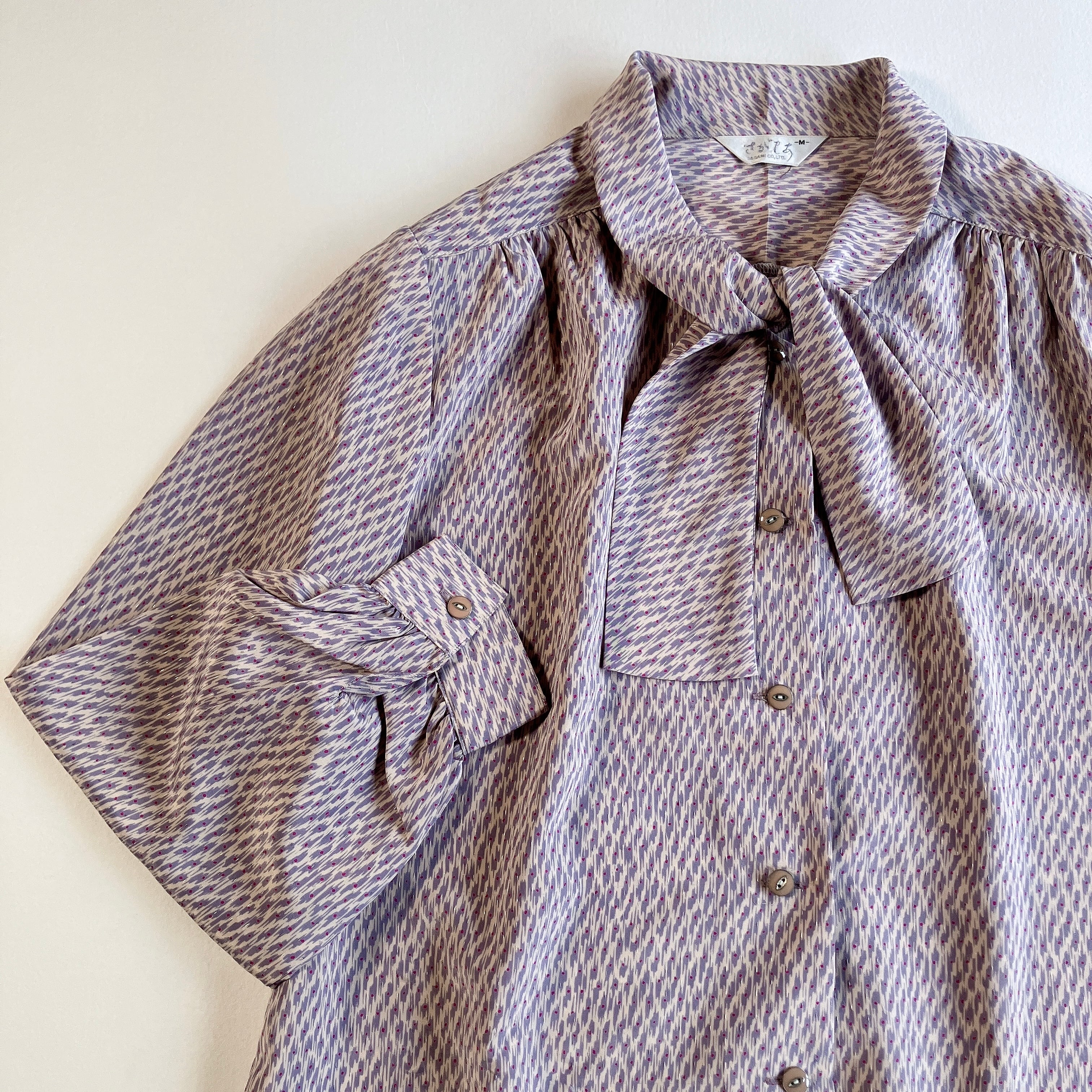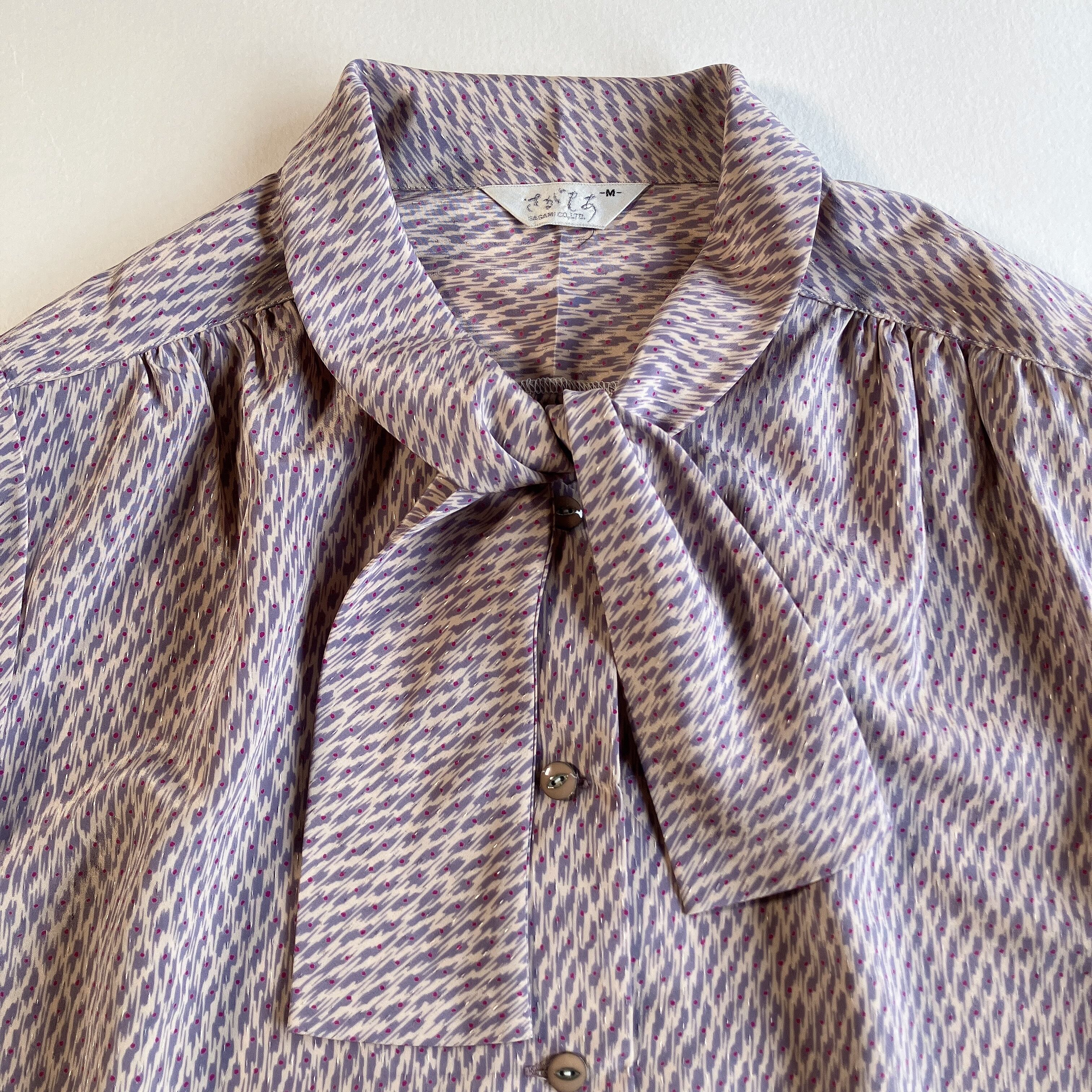 used レトロ 総柄 リボン ブラウス 古着 ヴィンテージ vintage