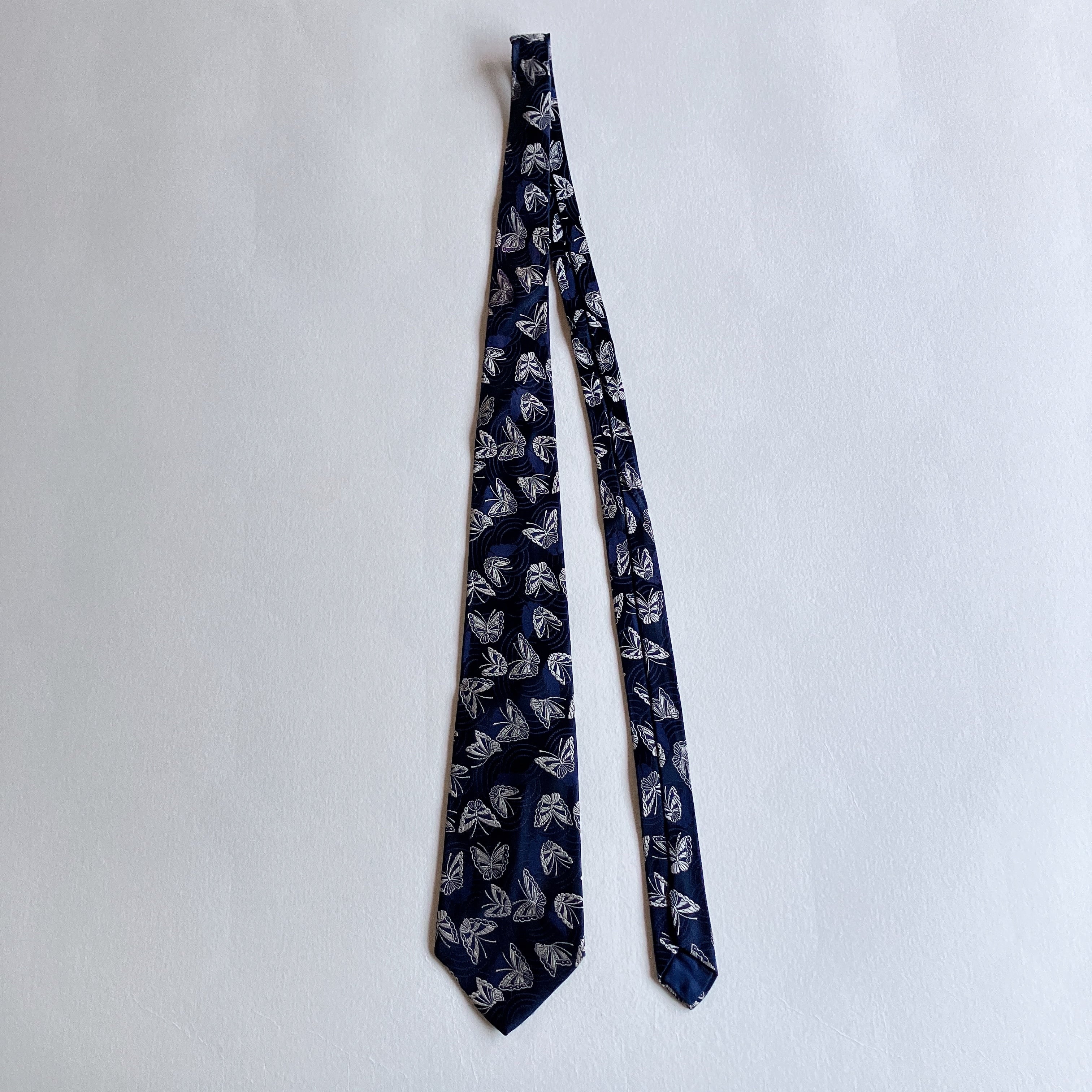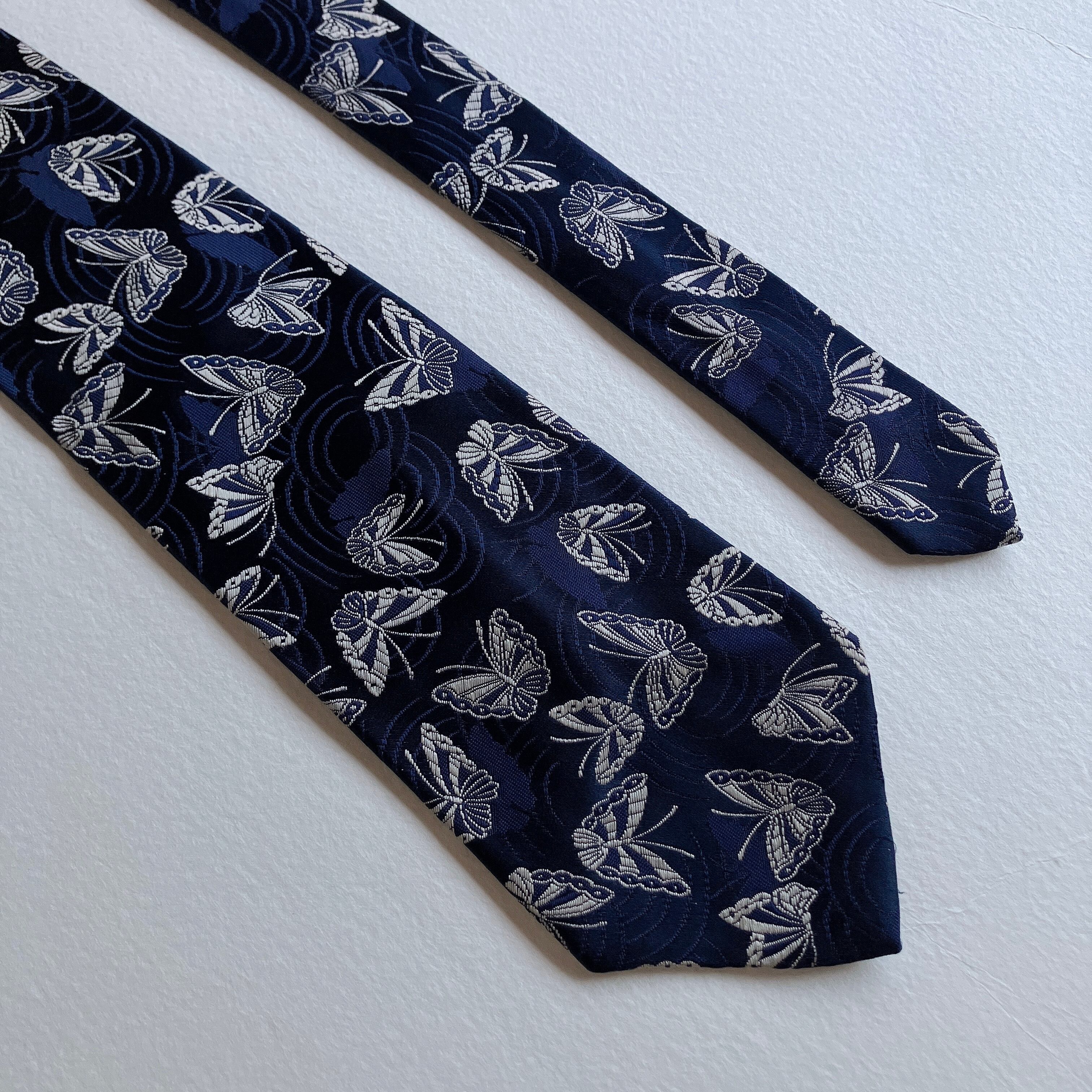 used レトロ ネイビー 蝶々柄 ネクタイ 古着 ヴィンテージ vintage
