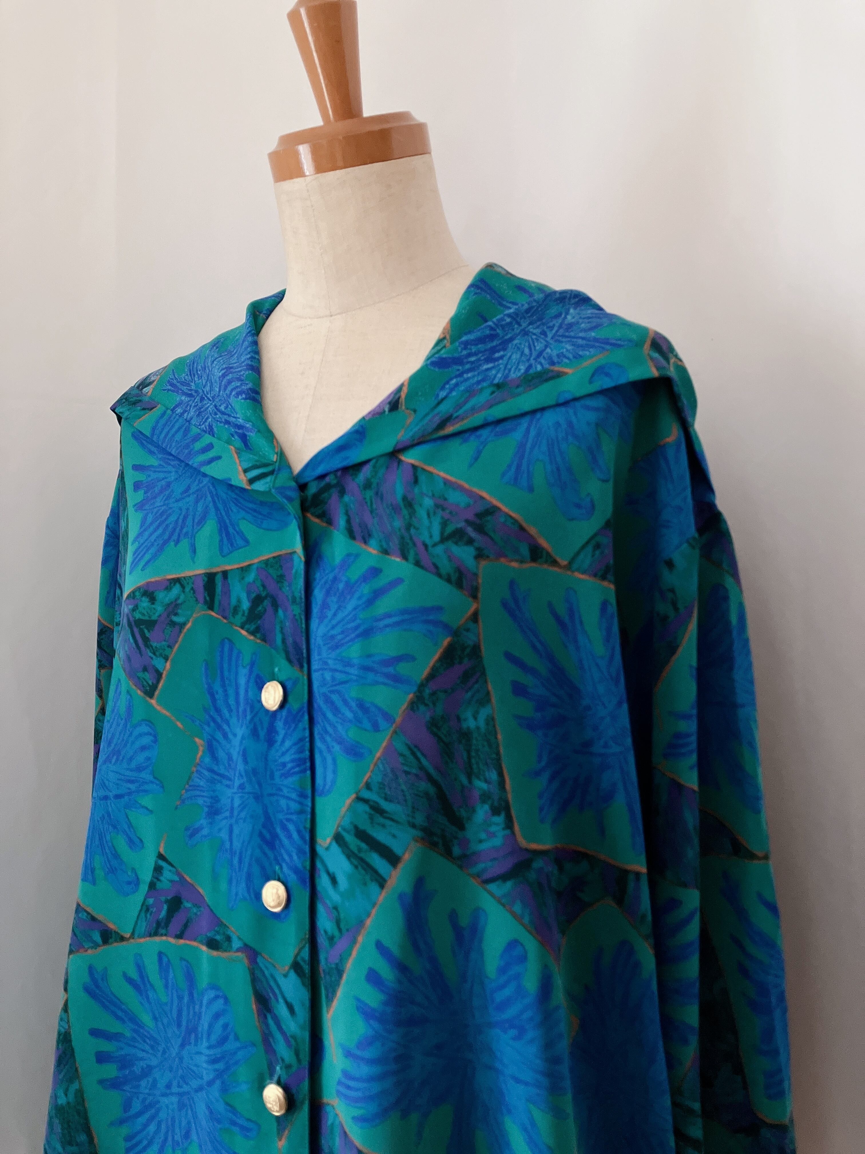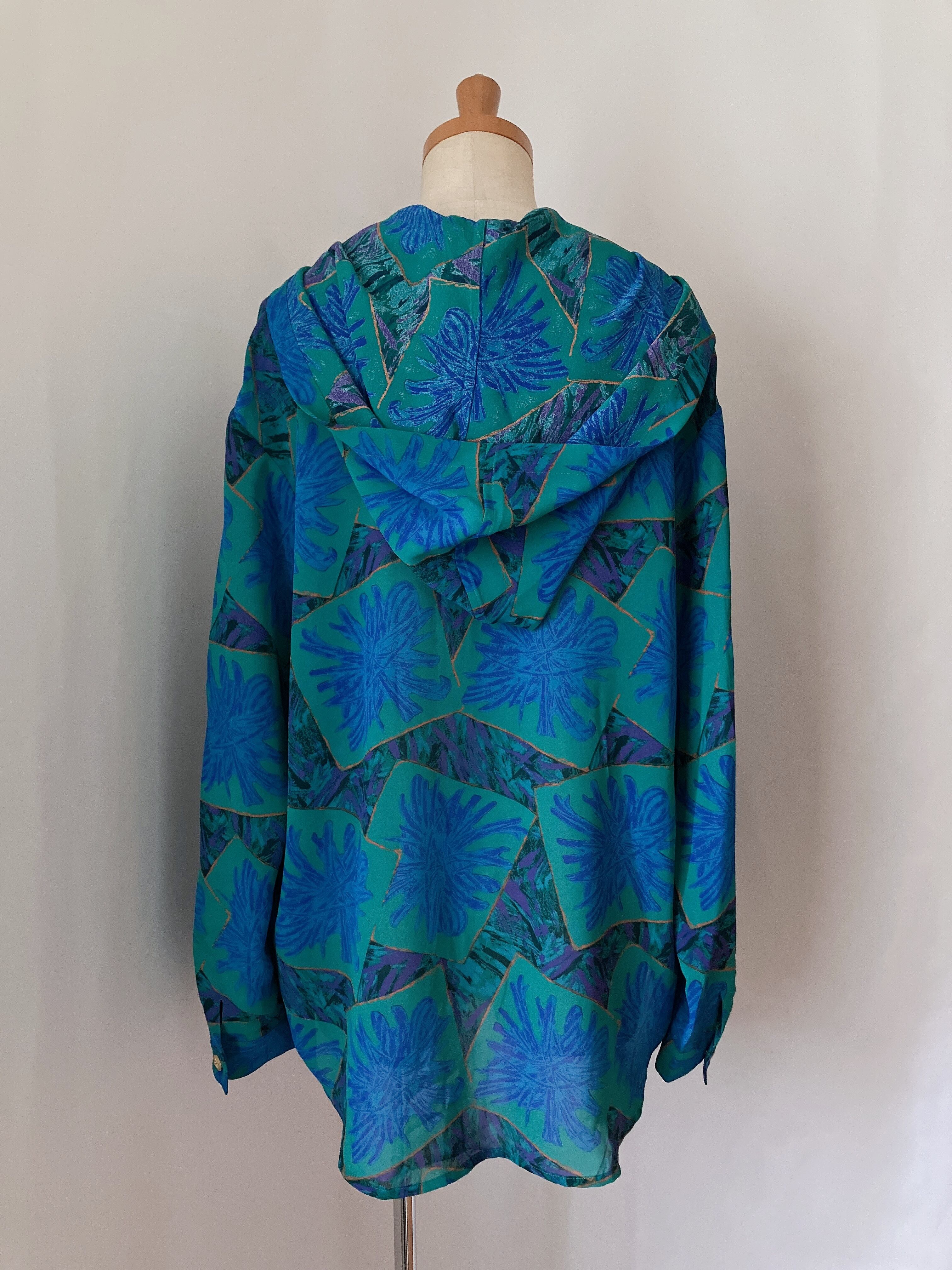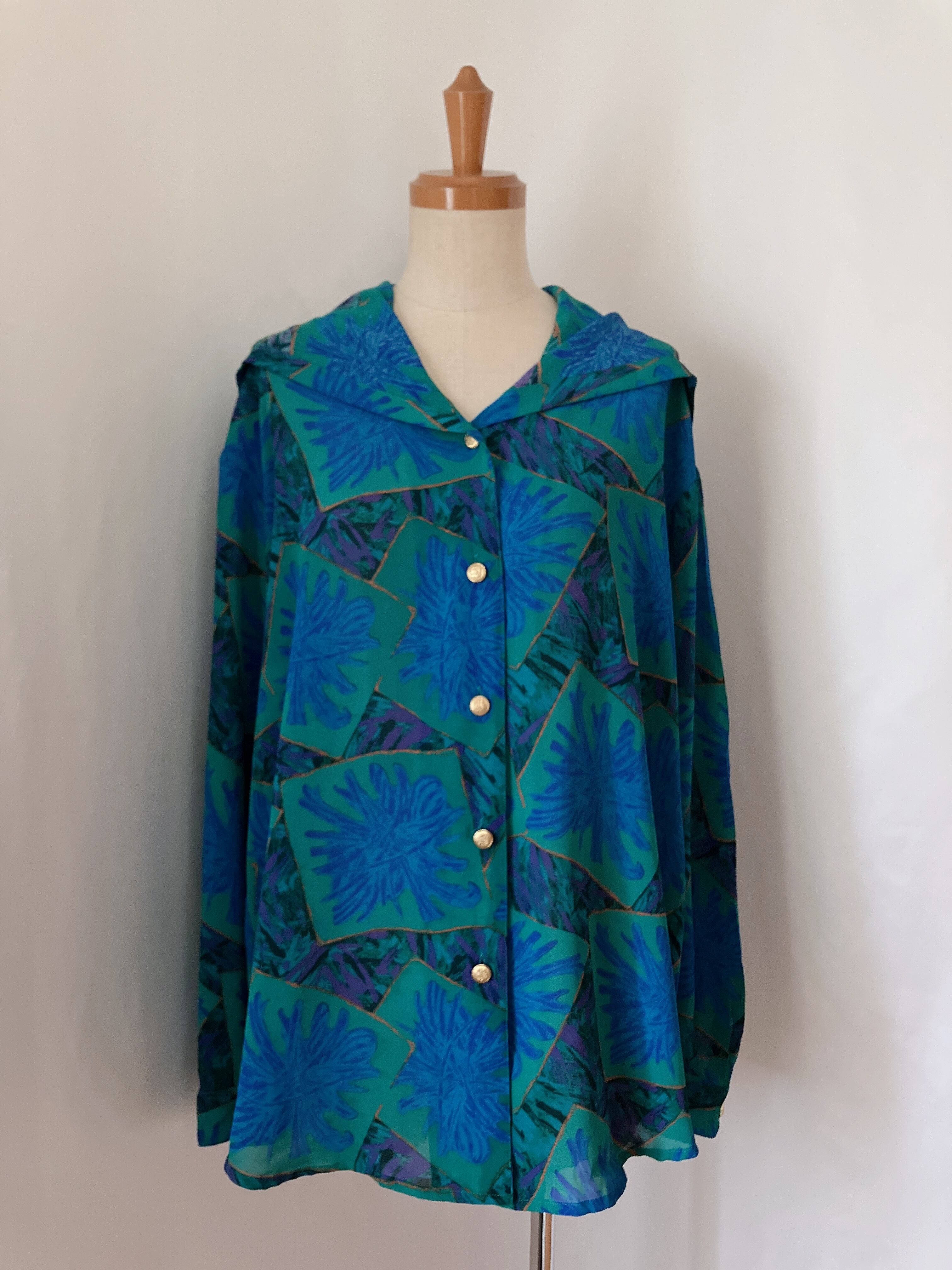 Used レトロ 青緑 フード付き シャツ 古着 ヴィンテージ vintage