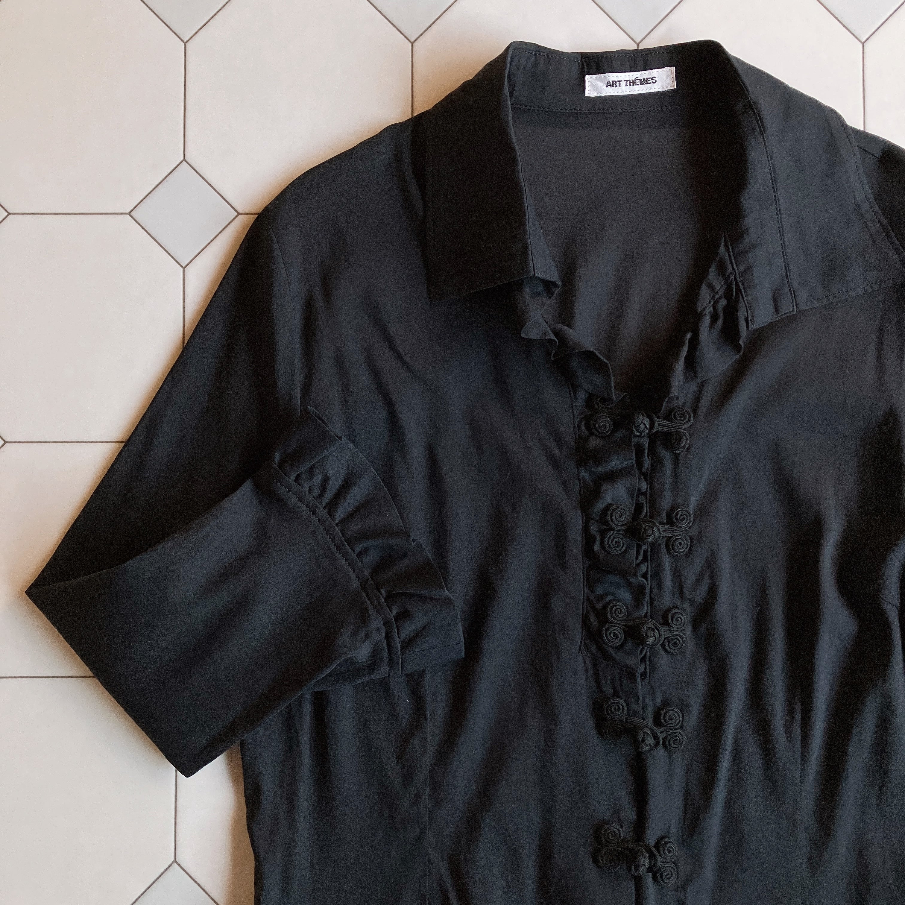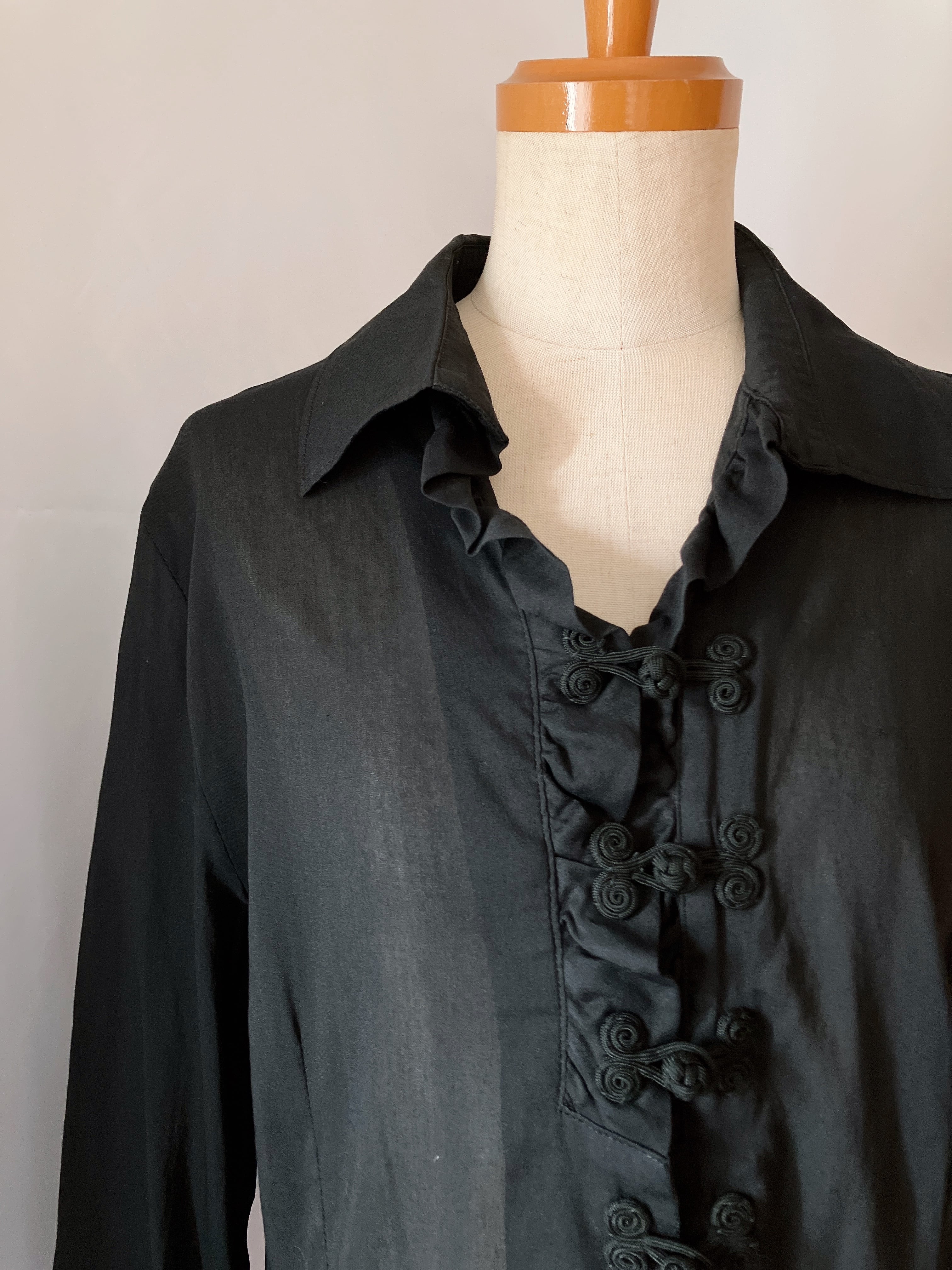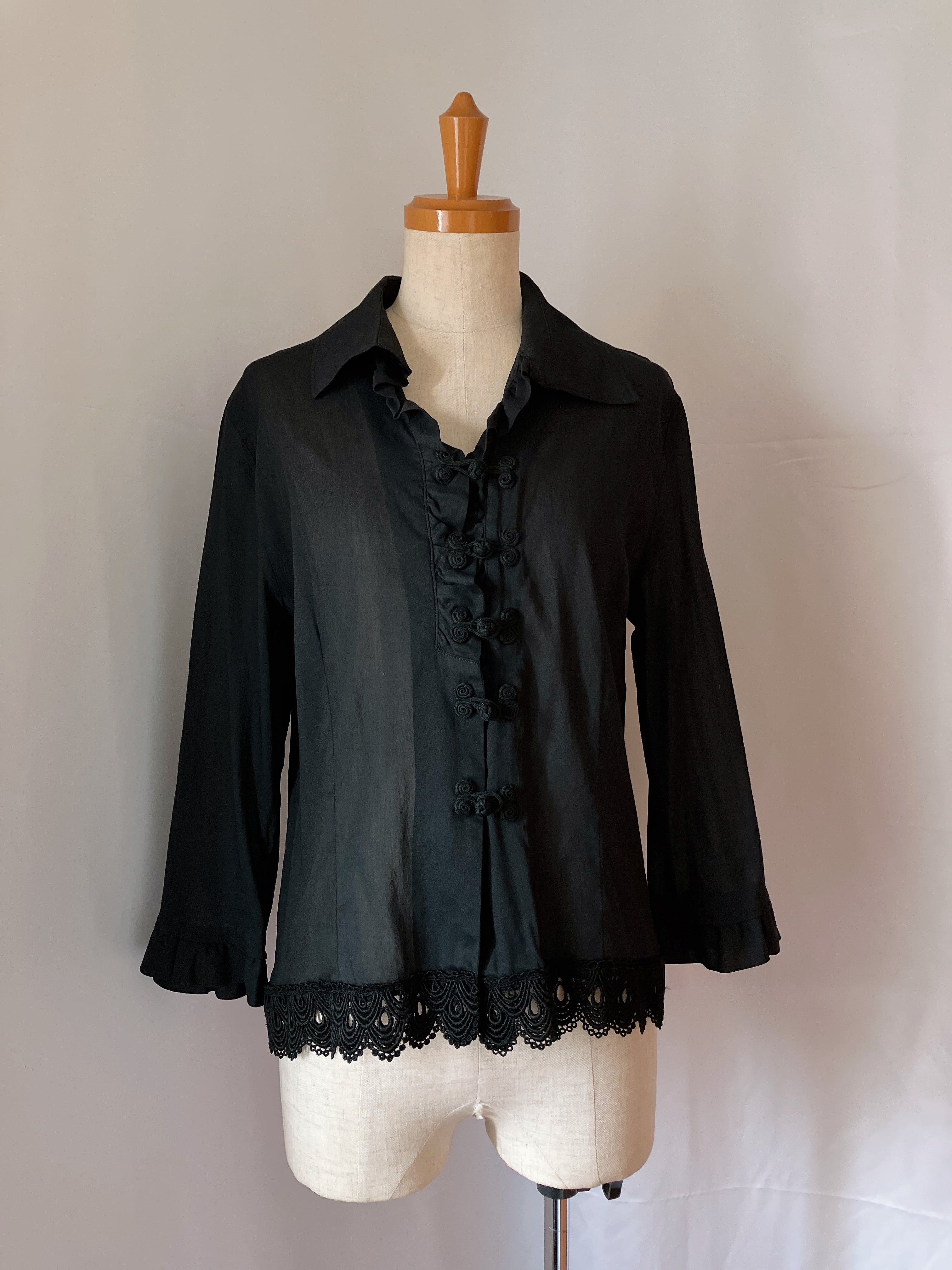used レトロ 黒 チャイボタン ブラウス古着 ヴィンテージ vintage