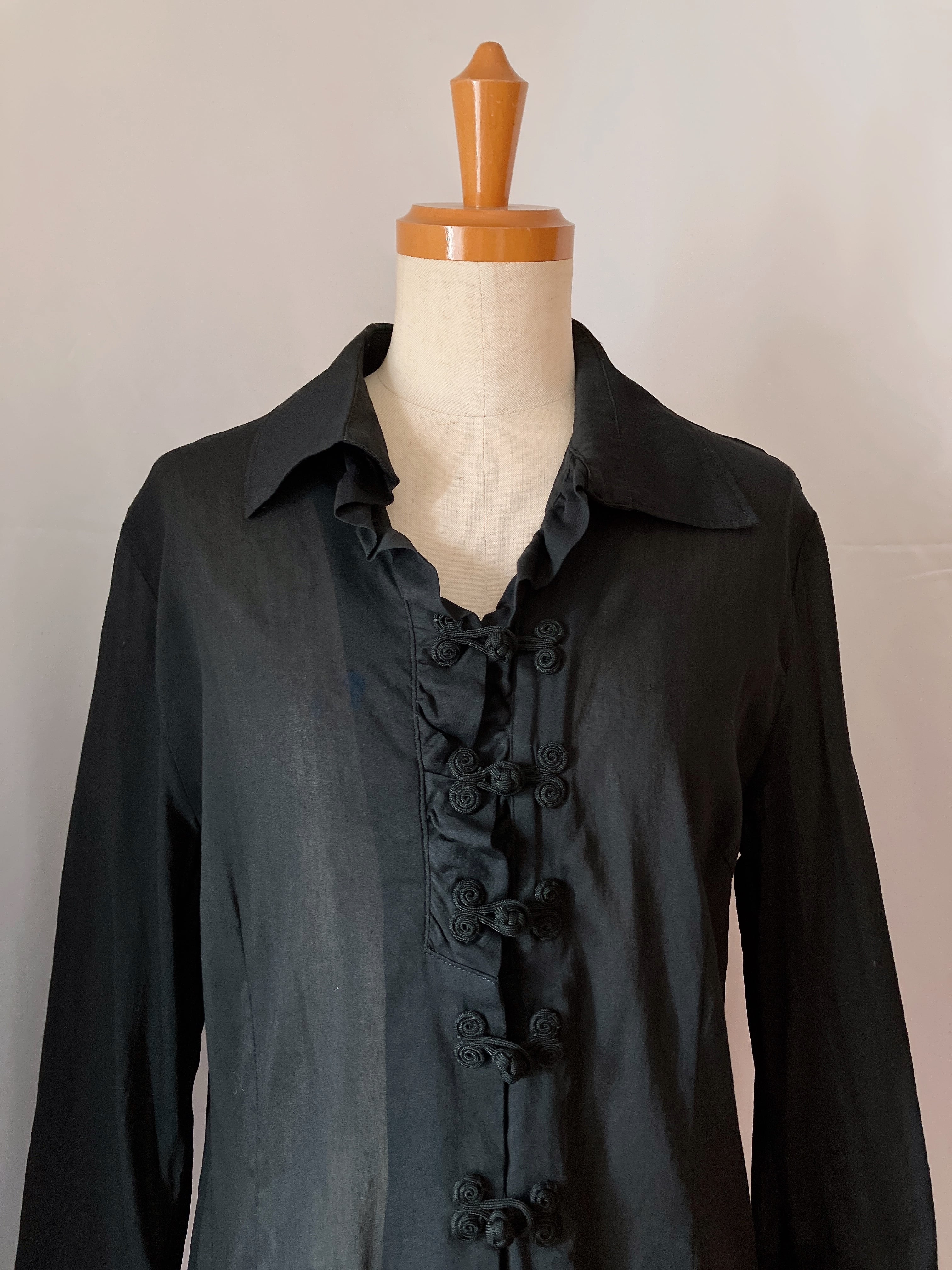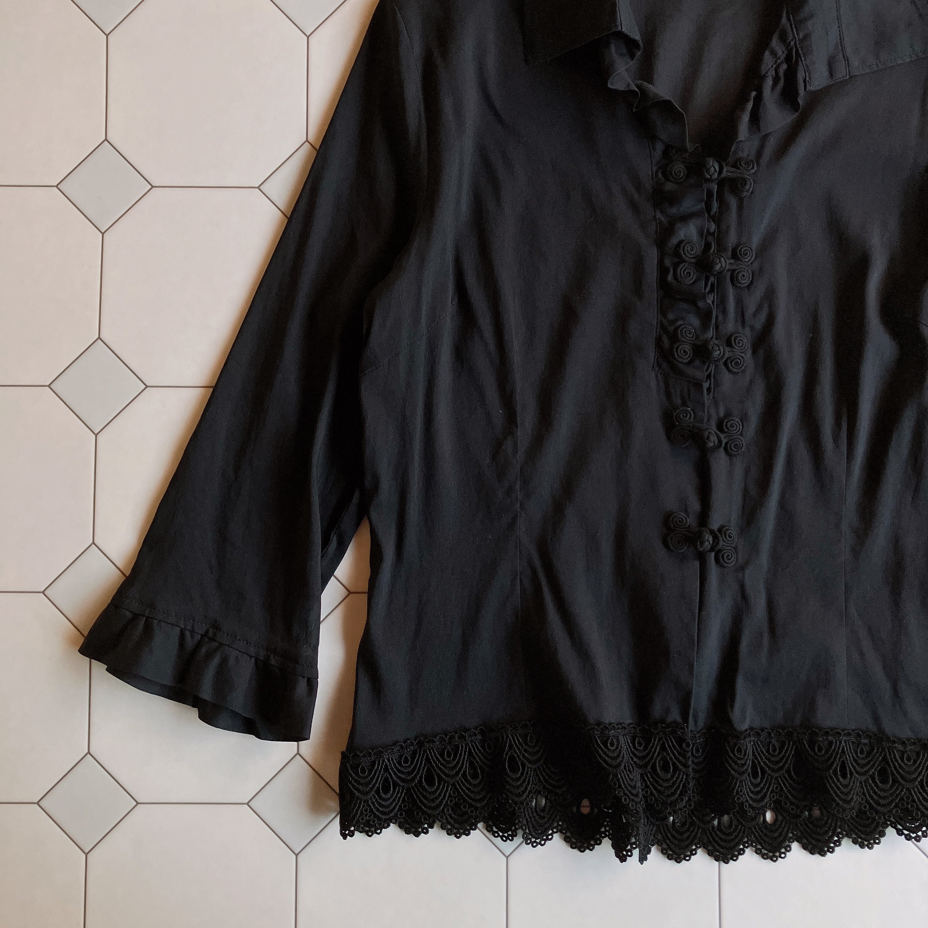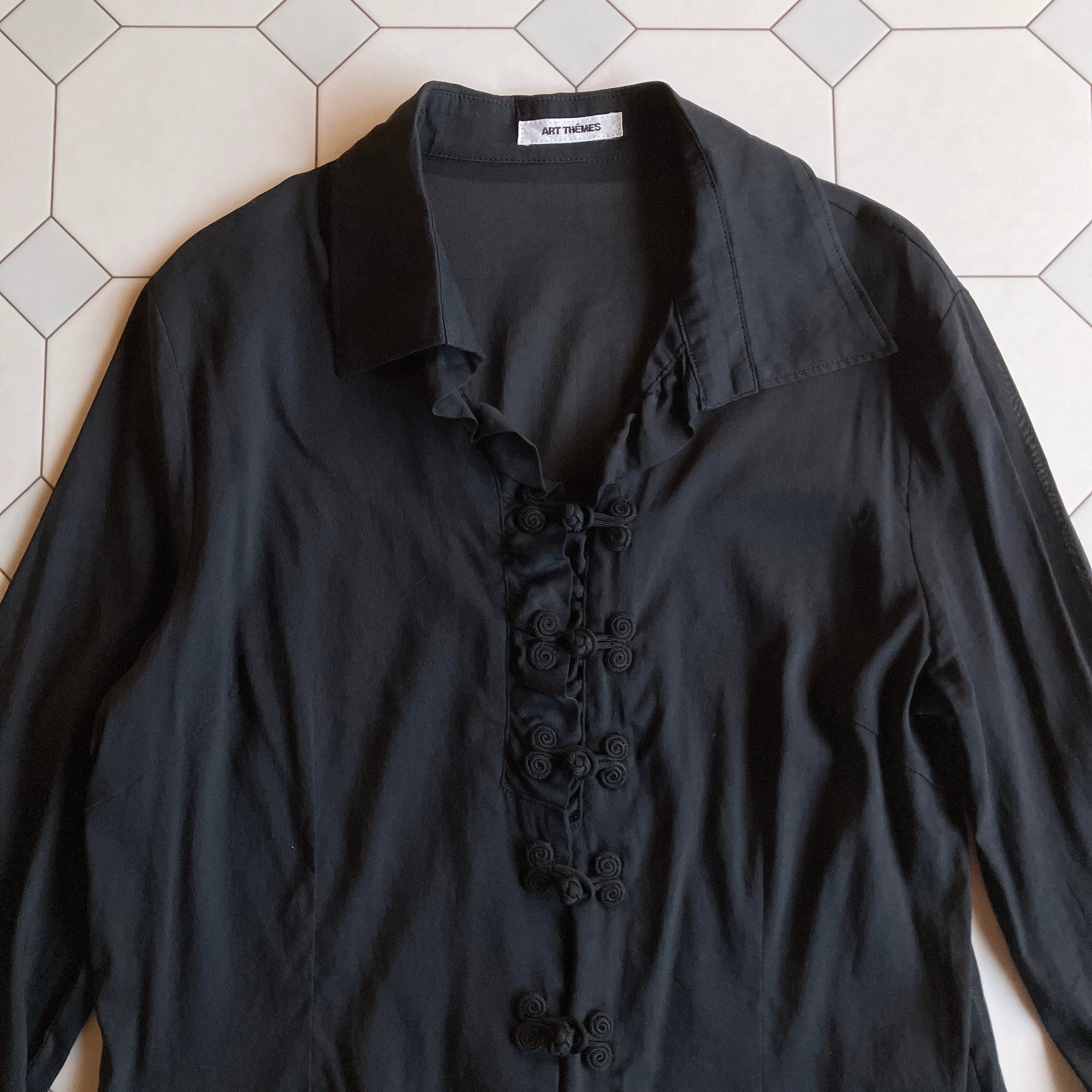 used レトロ 黒 チャイボタン ブラウス古着 ヴィンテージ vintage