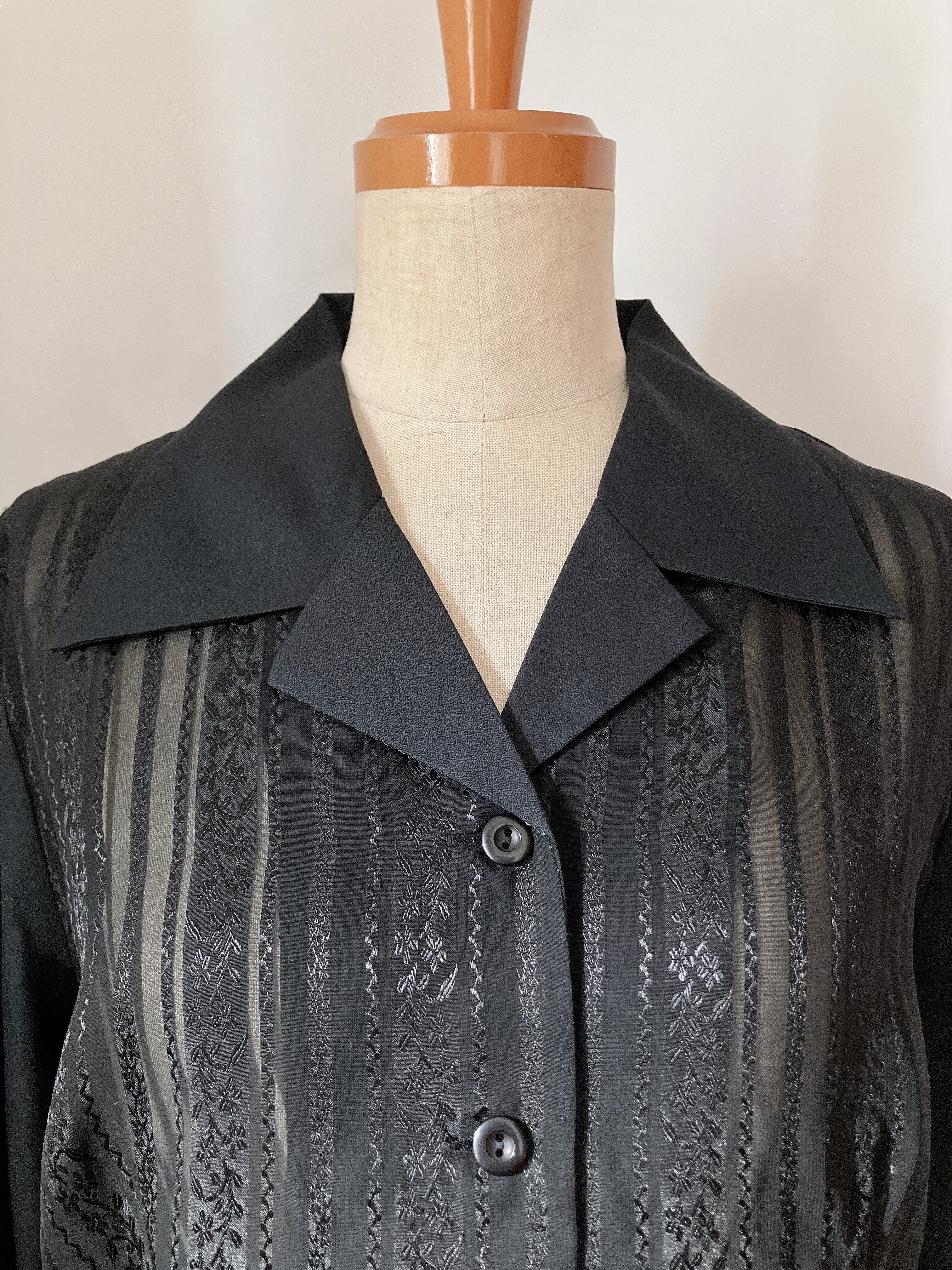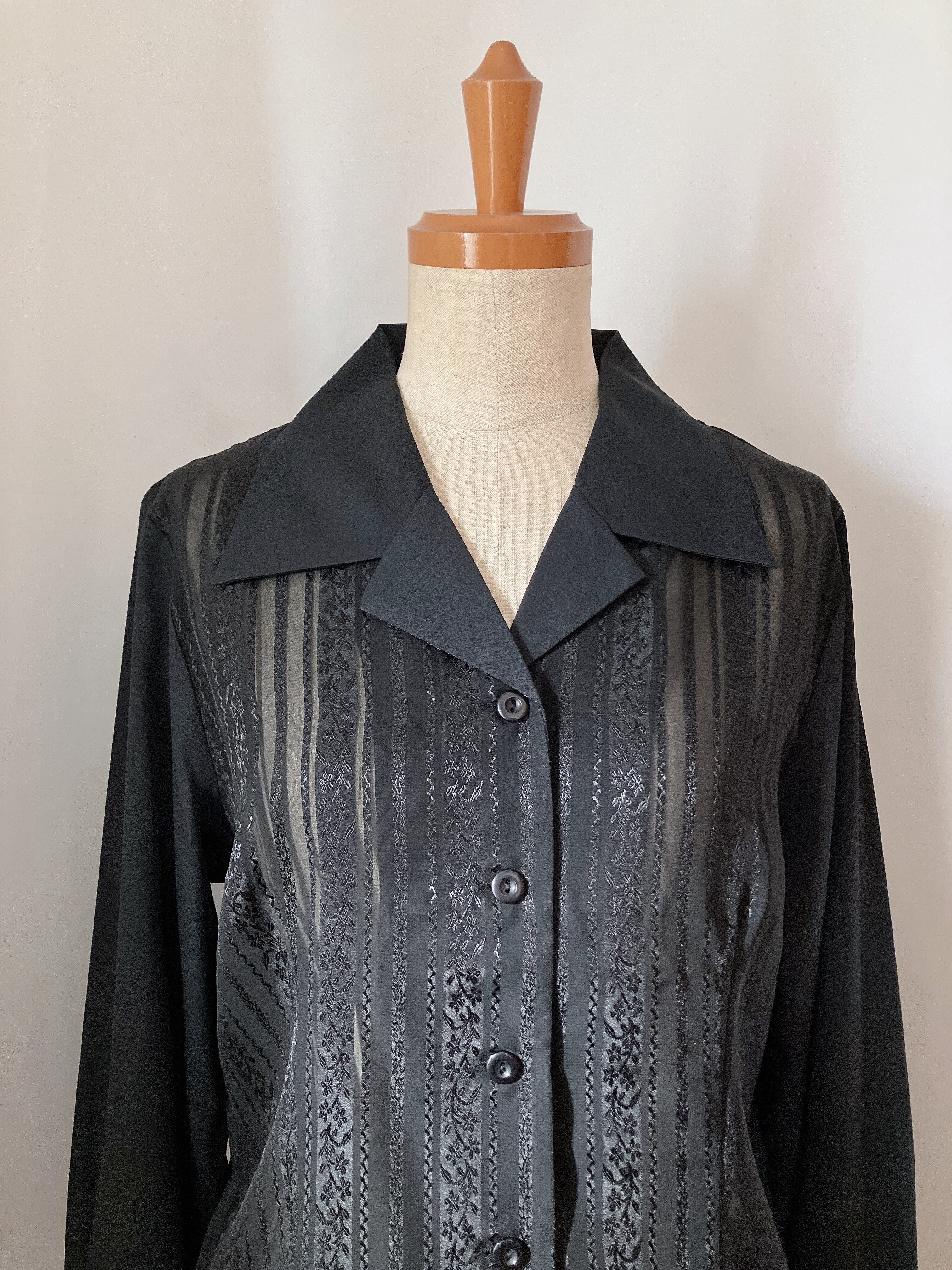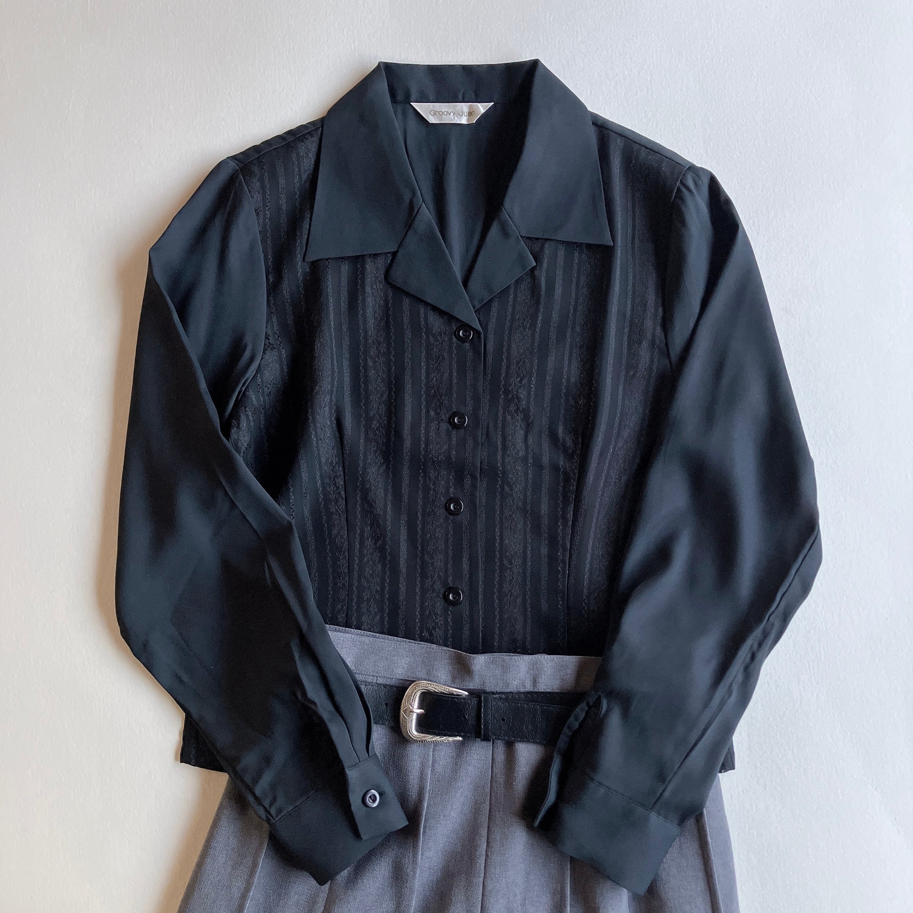used レトロ 黒 透かし模様 ブラウス 古着 ヴィンテージ vintage