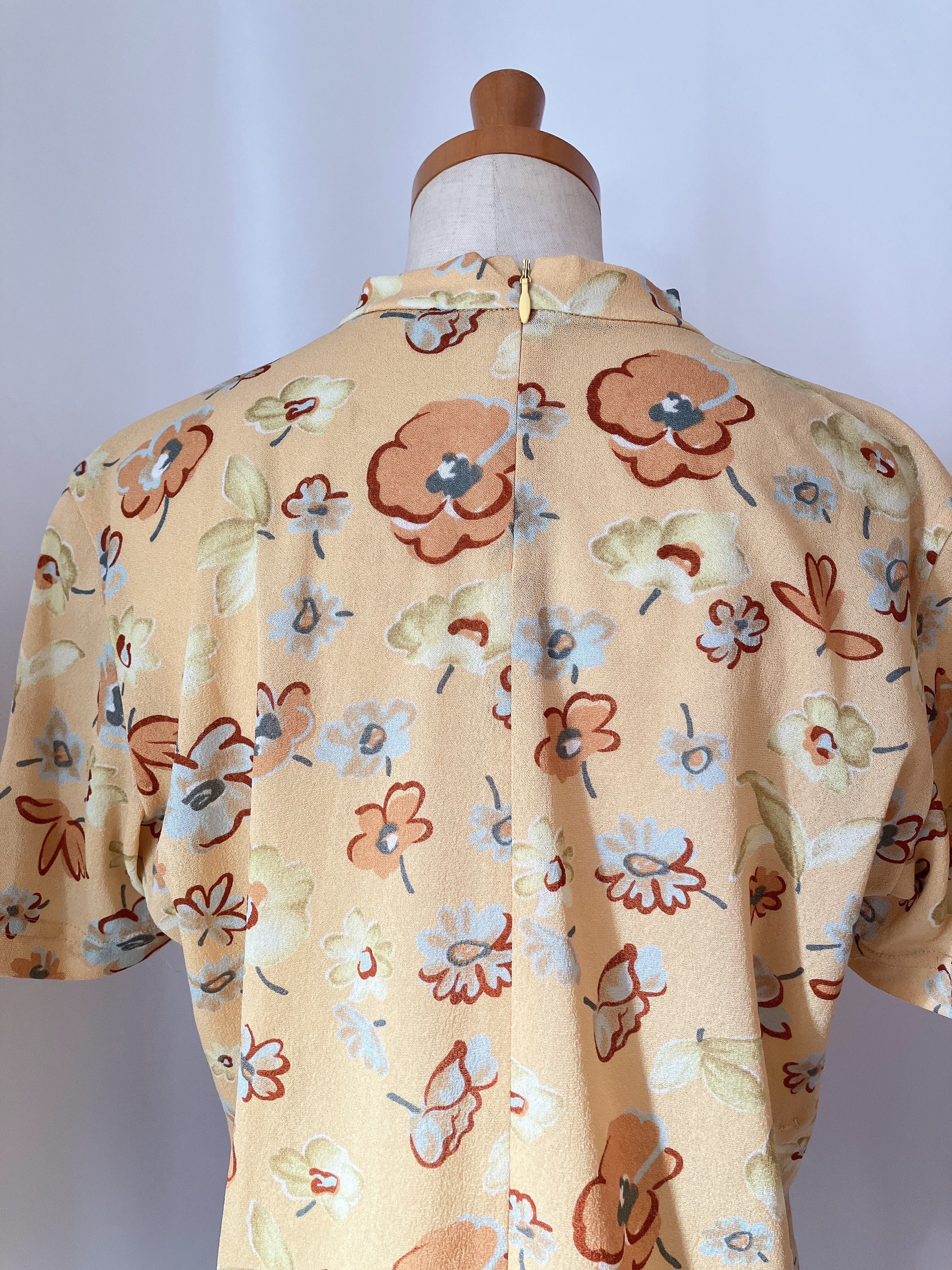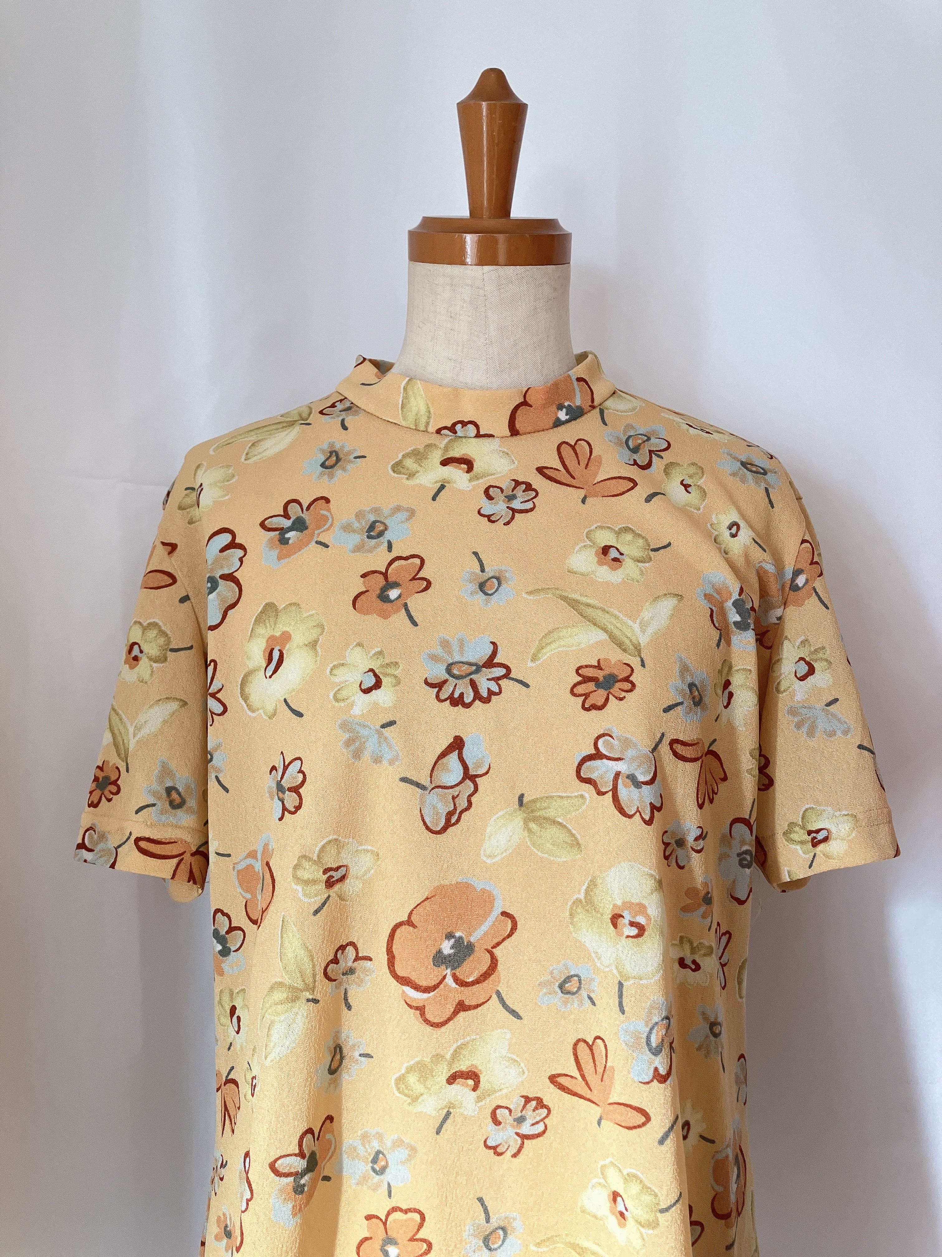 used レトロ イエロー 花柄 トップス 古着 ヴィンテージ vintage