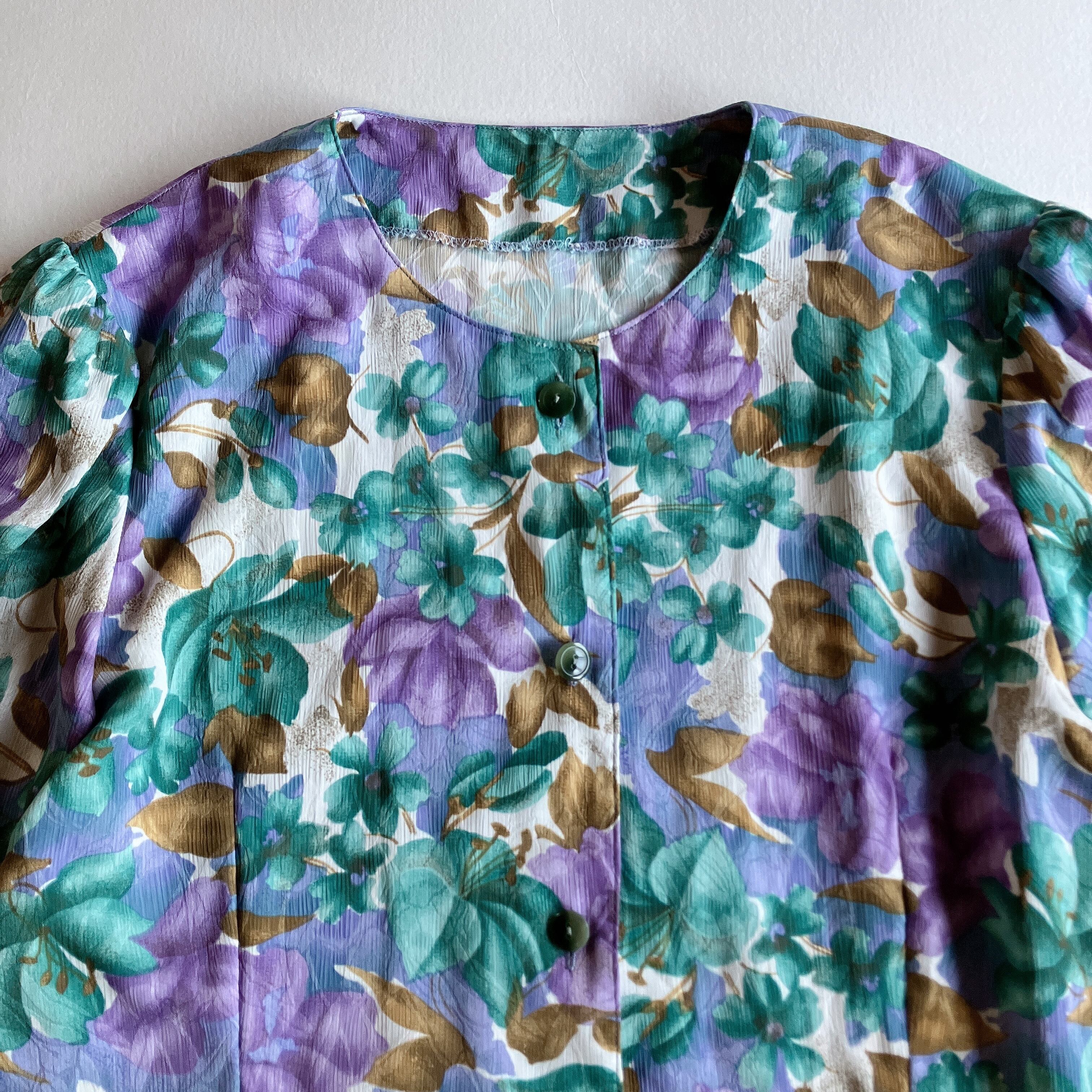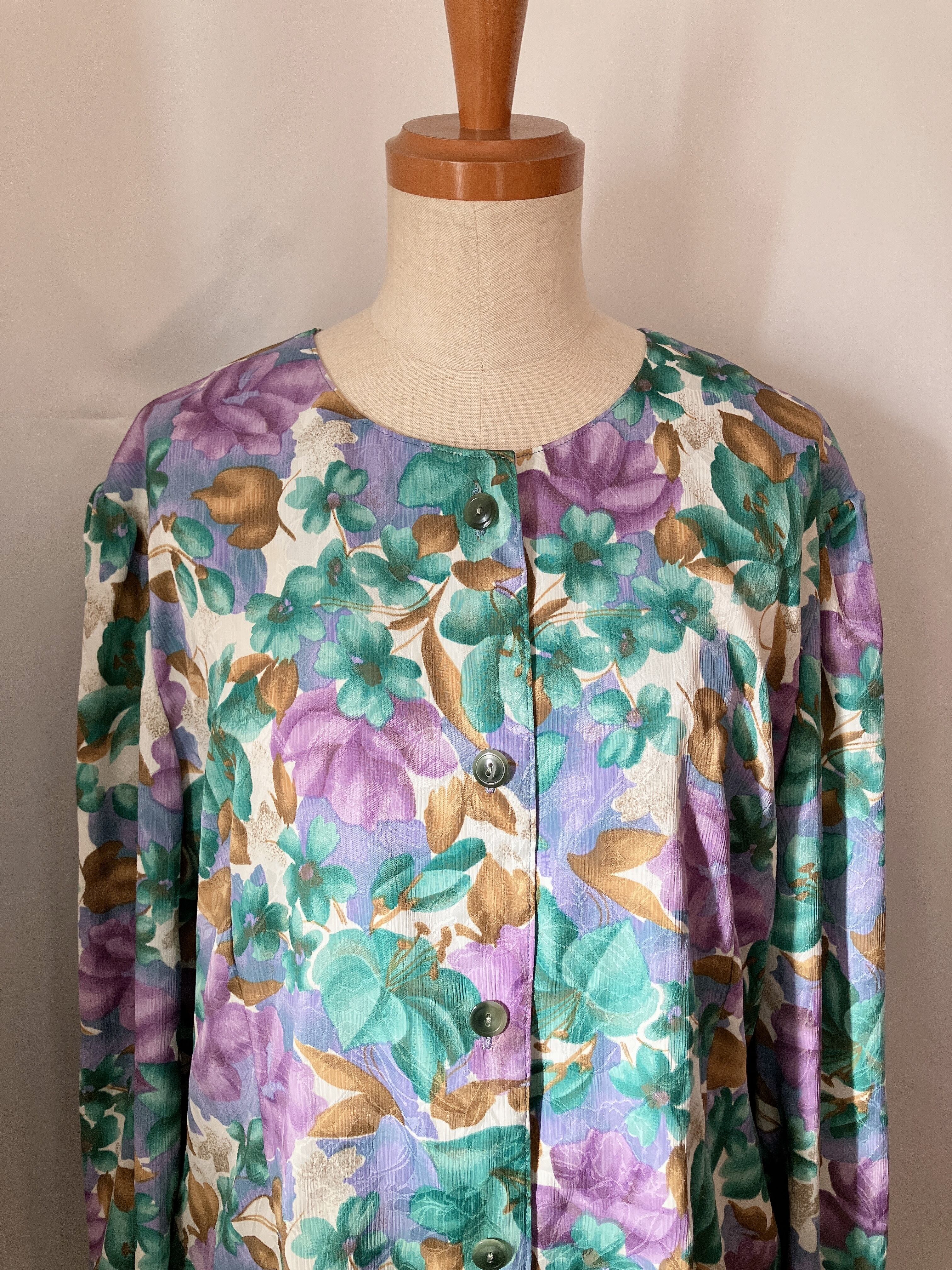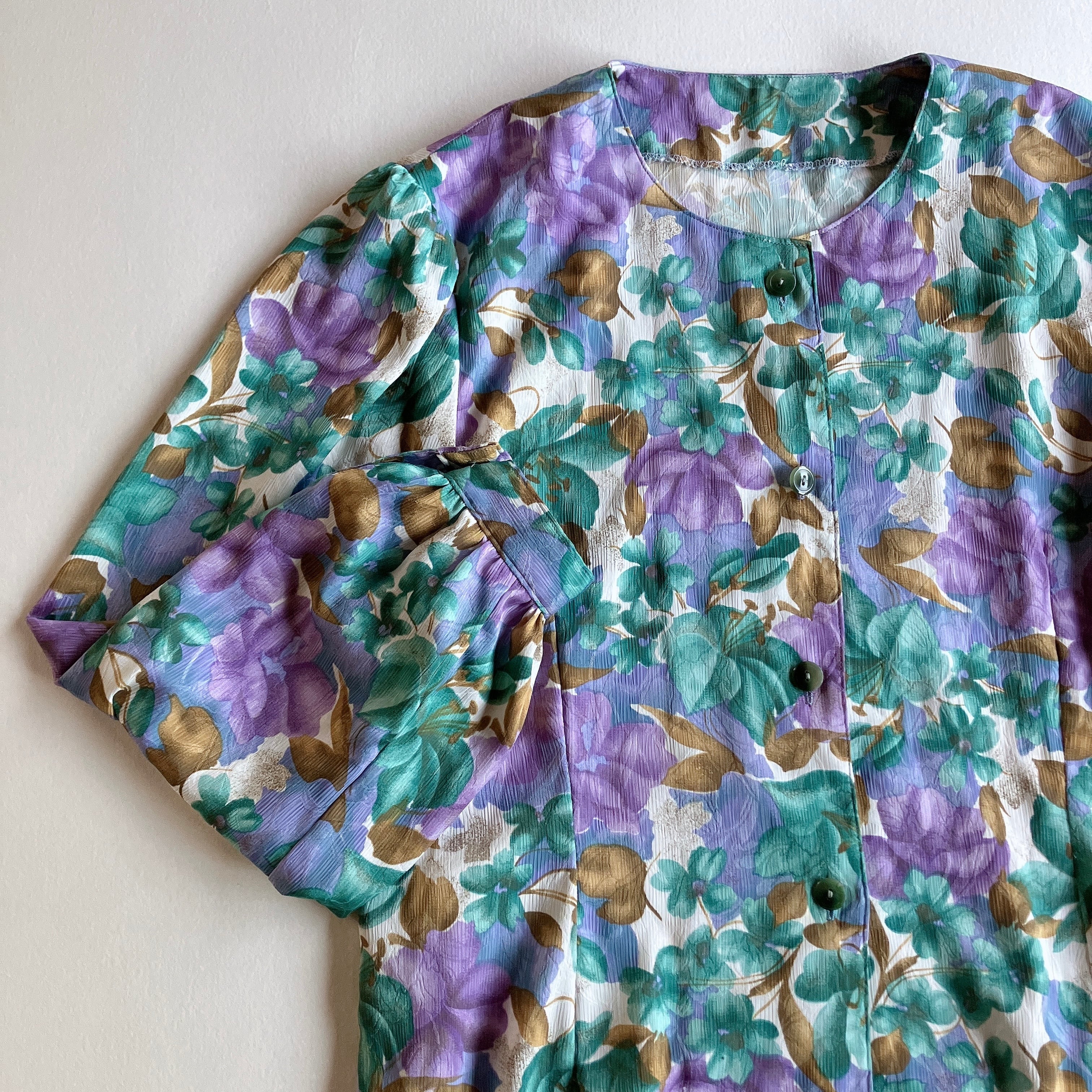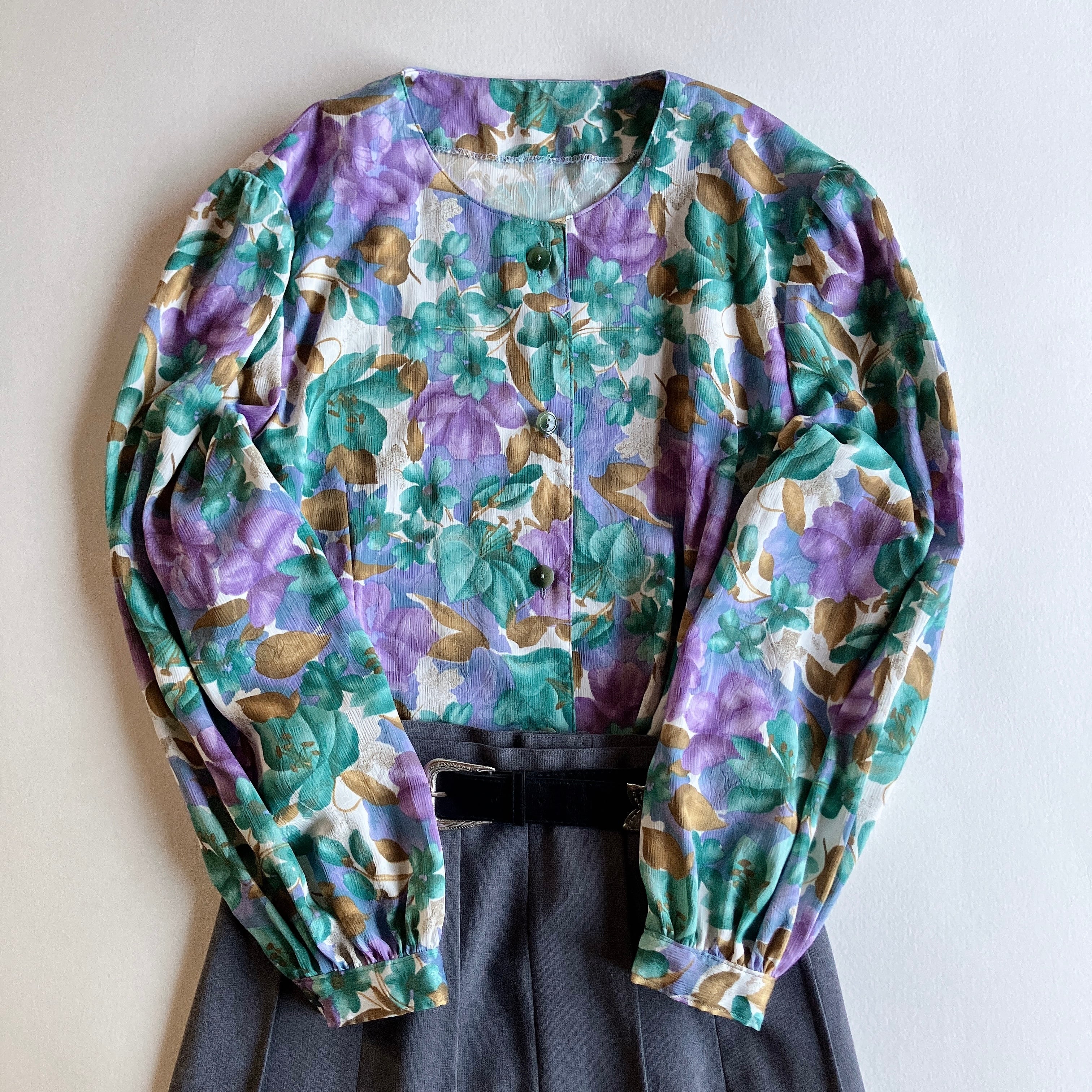 used レトロ 緑 紫 花柄 ブラウス 古着 ヴィンテージ vintage
