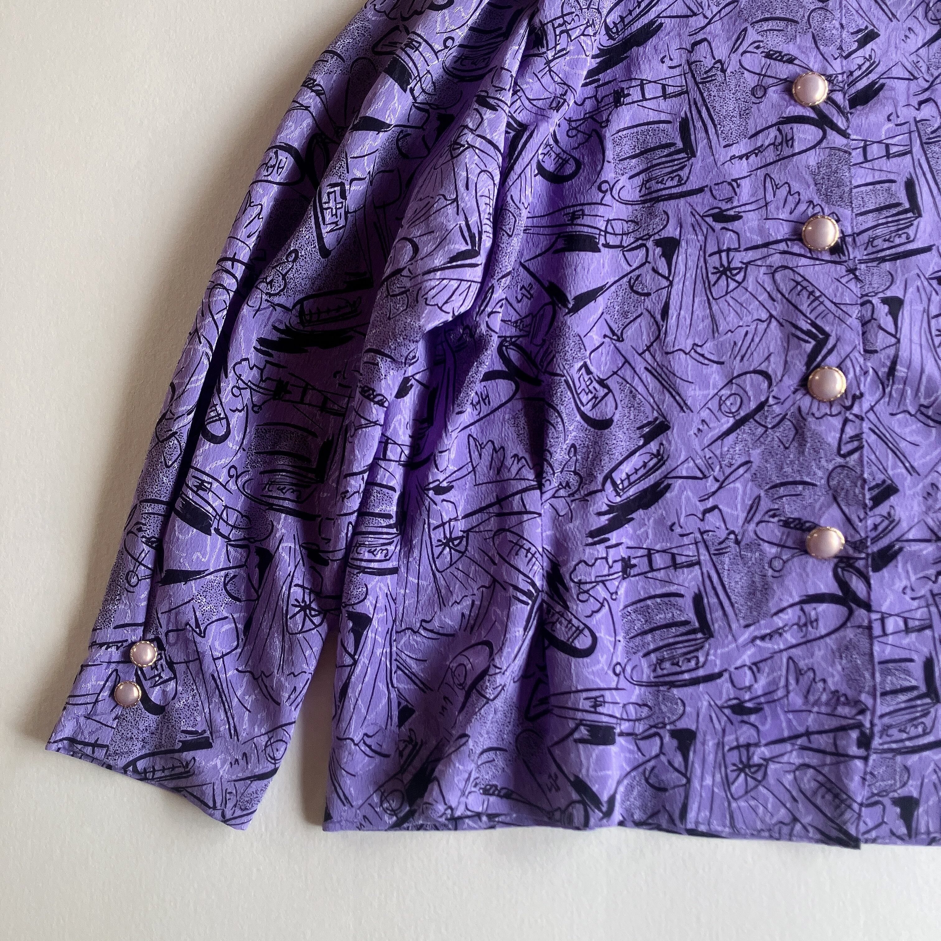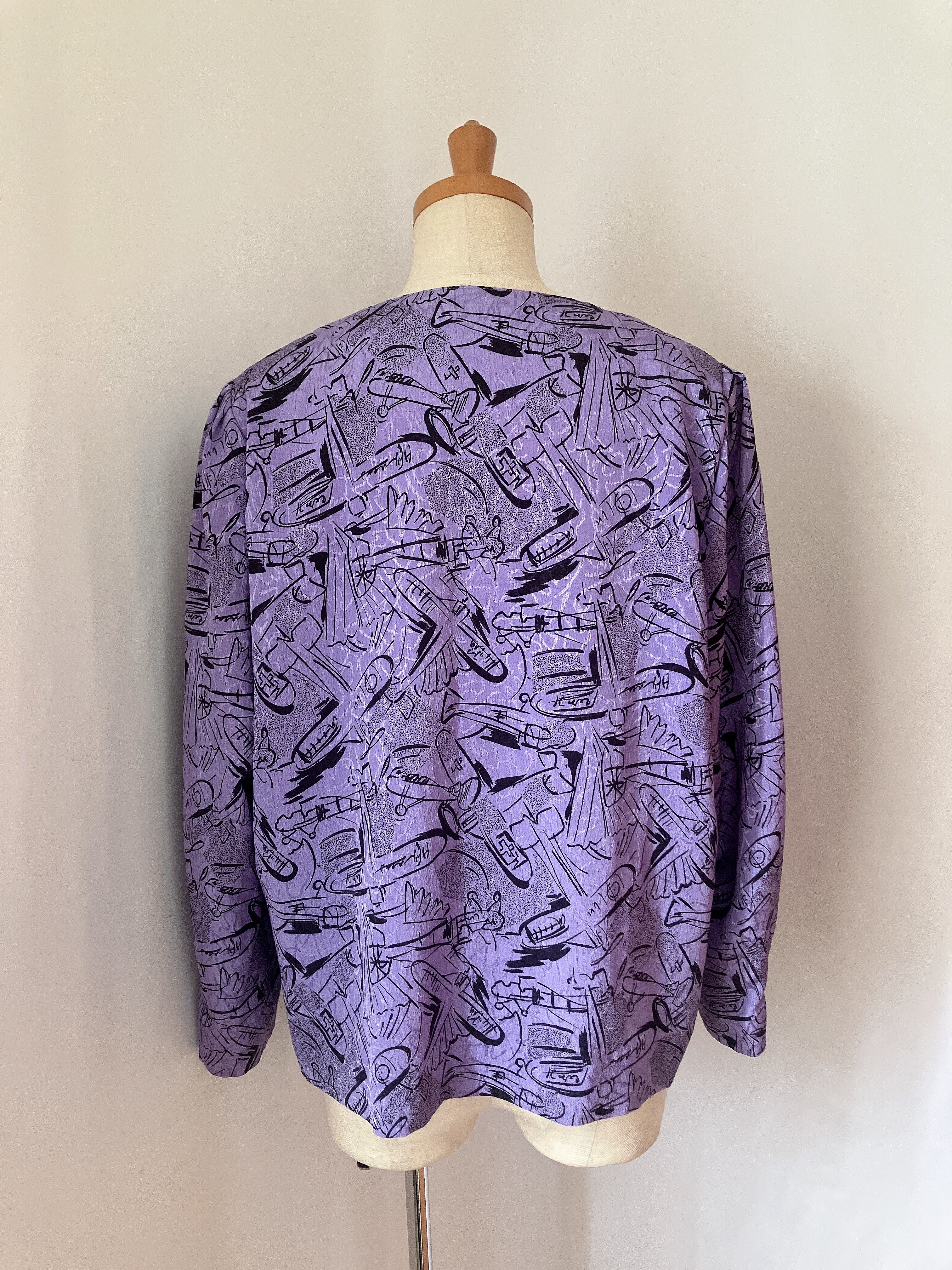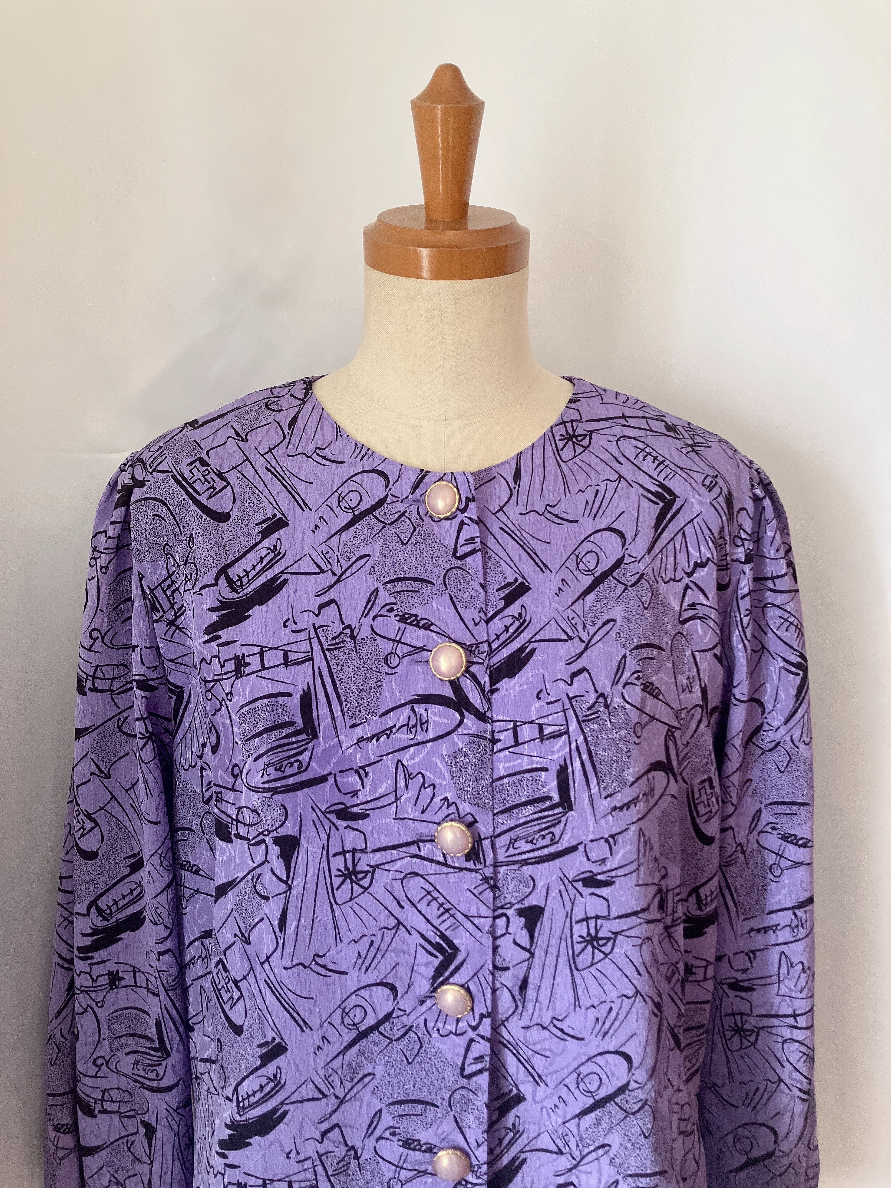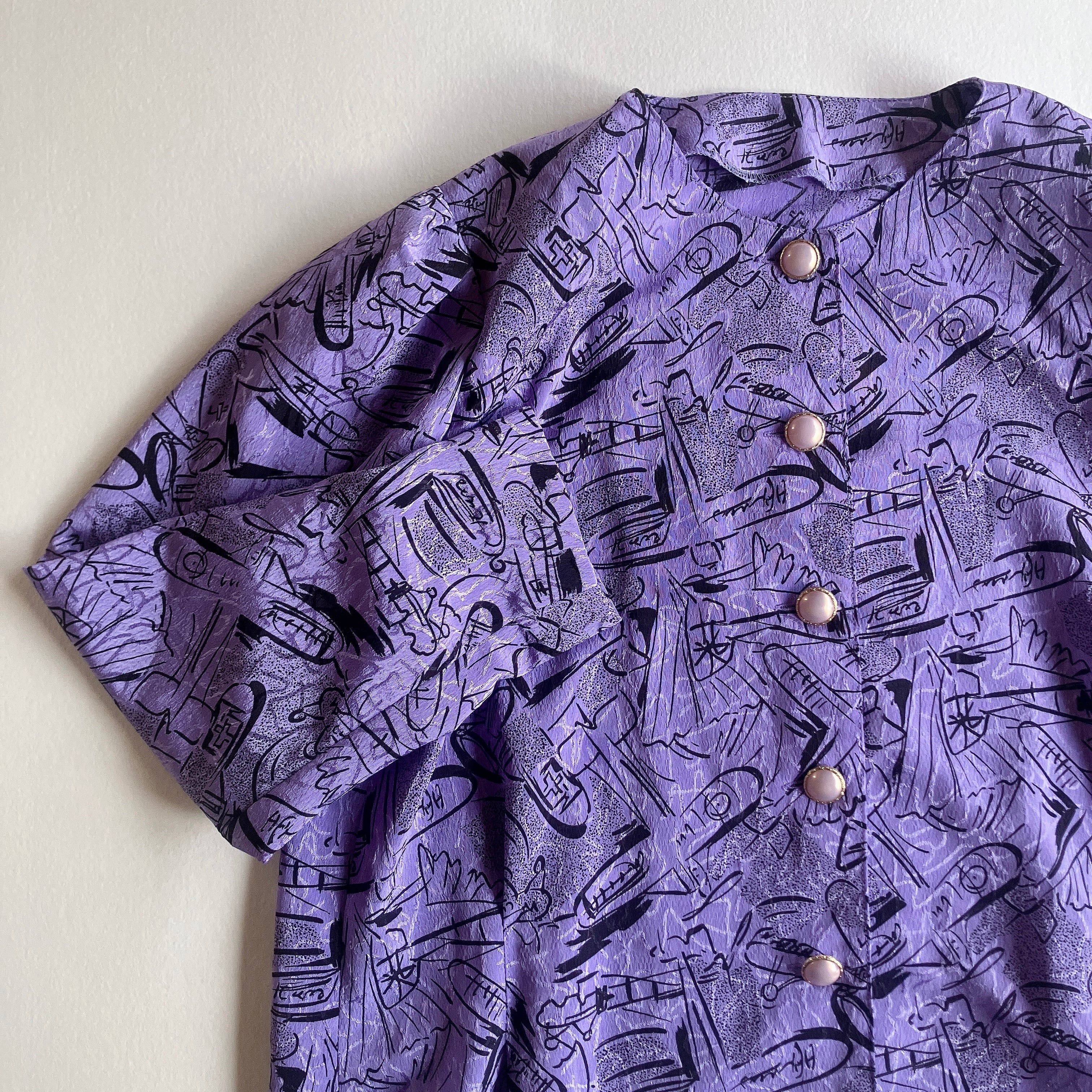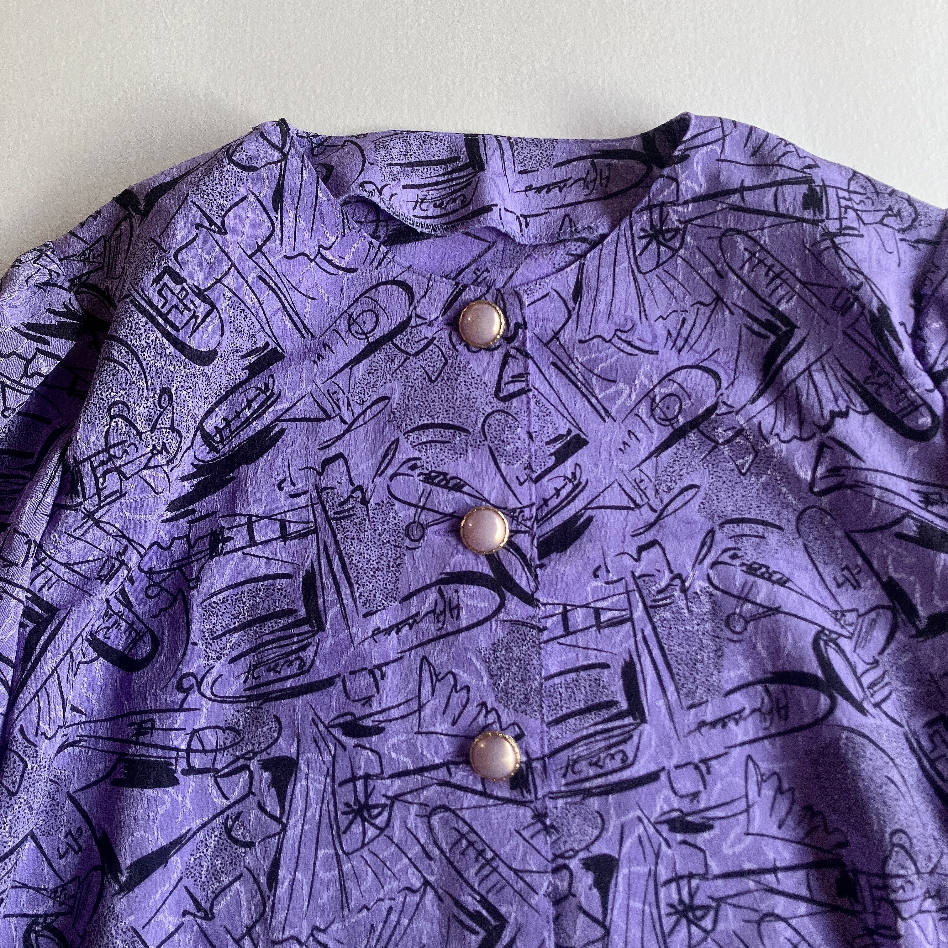 used レトロ 紫 ノーカラー ブラウス 古着 ヴィンテージ vintage