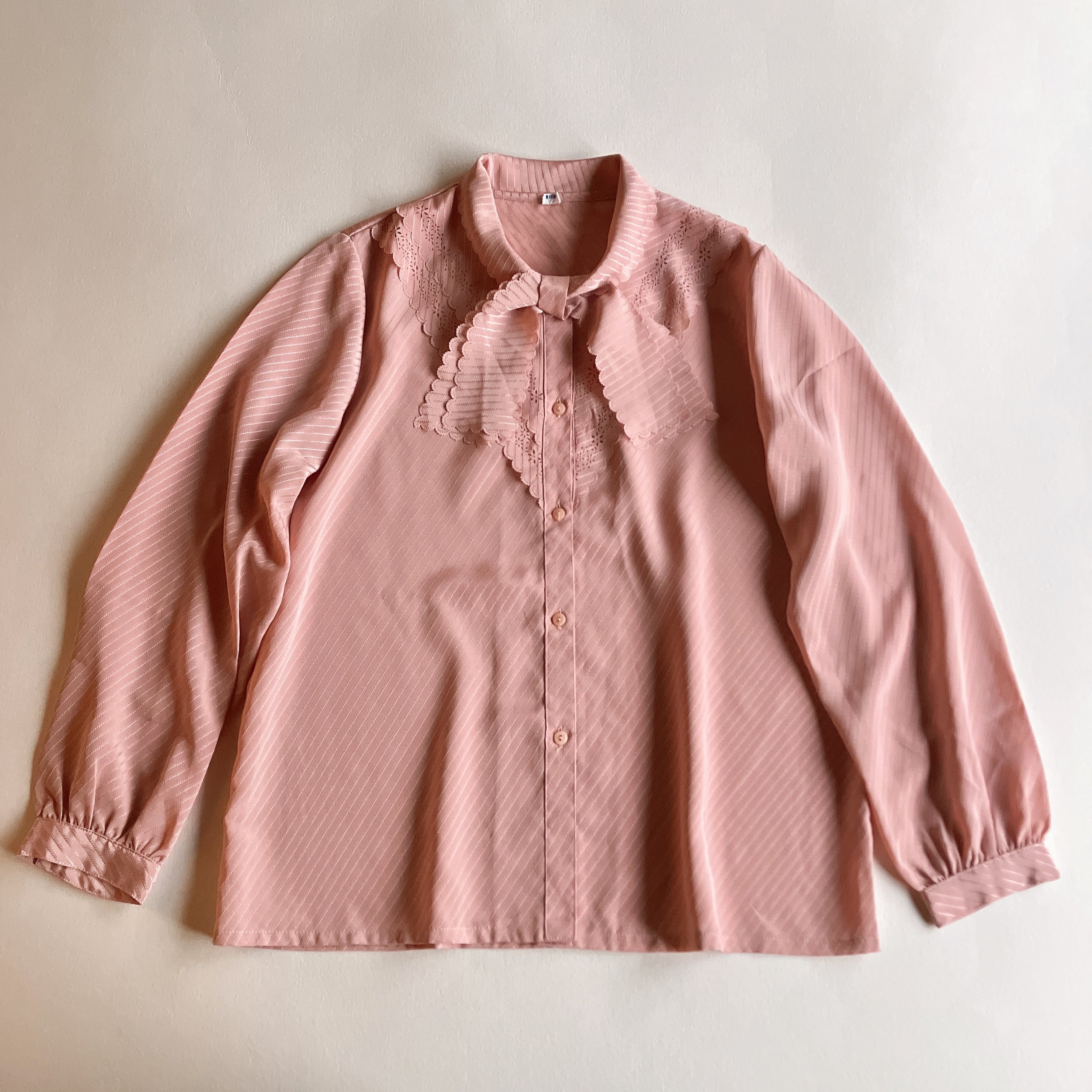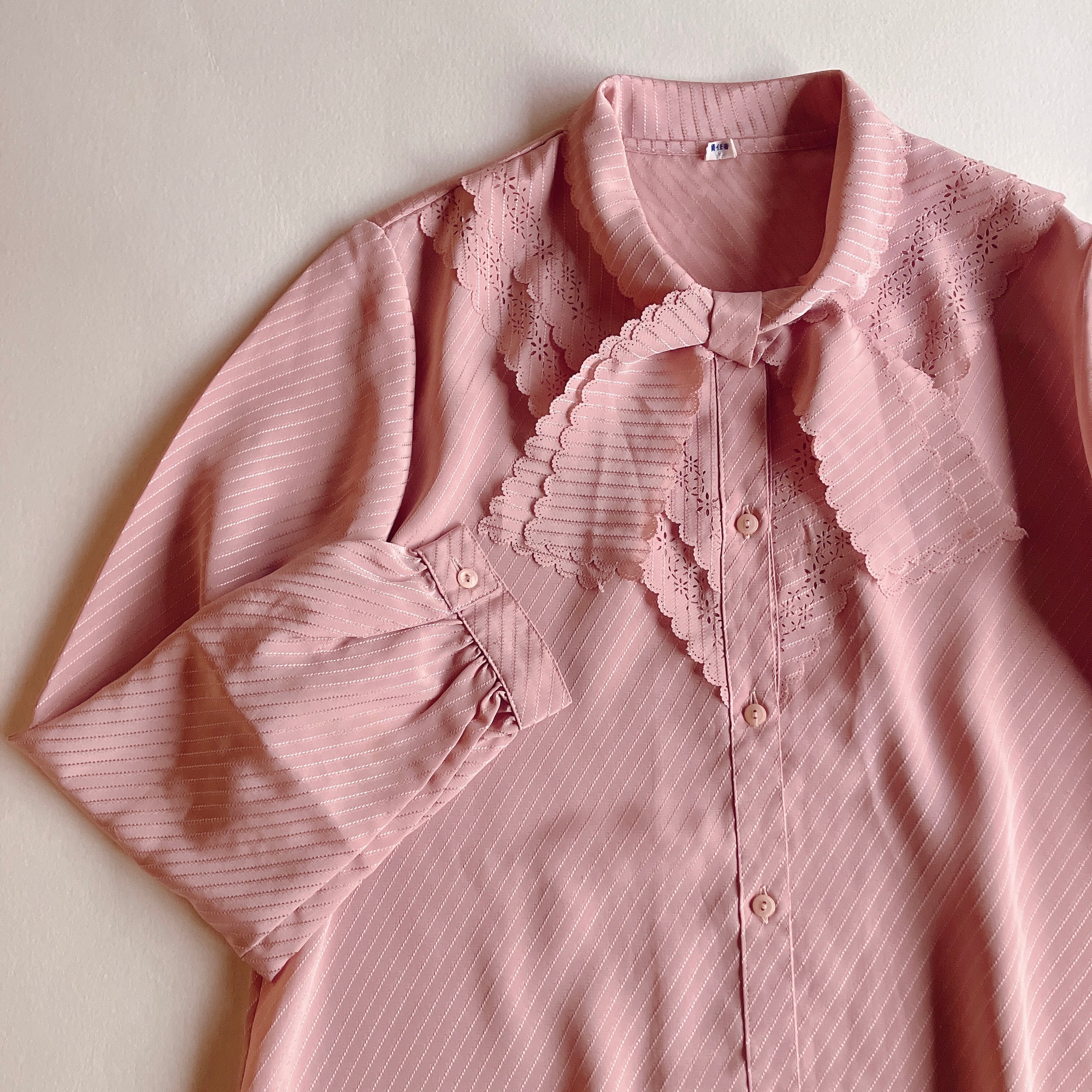 used レトロ ピンク リボン ブラウス 古着 ヴィンテージ vintage