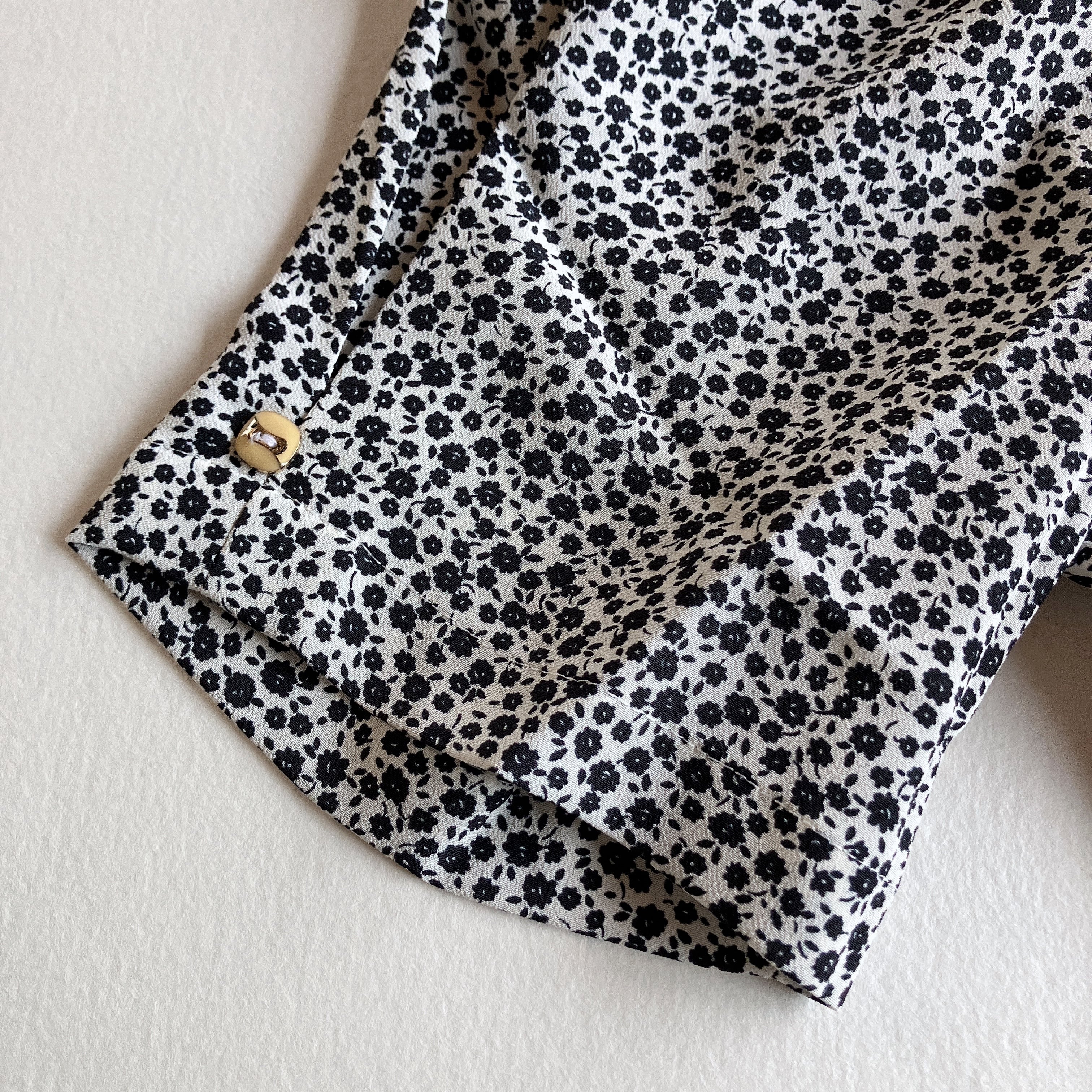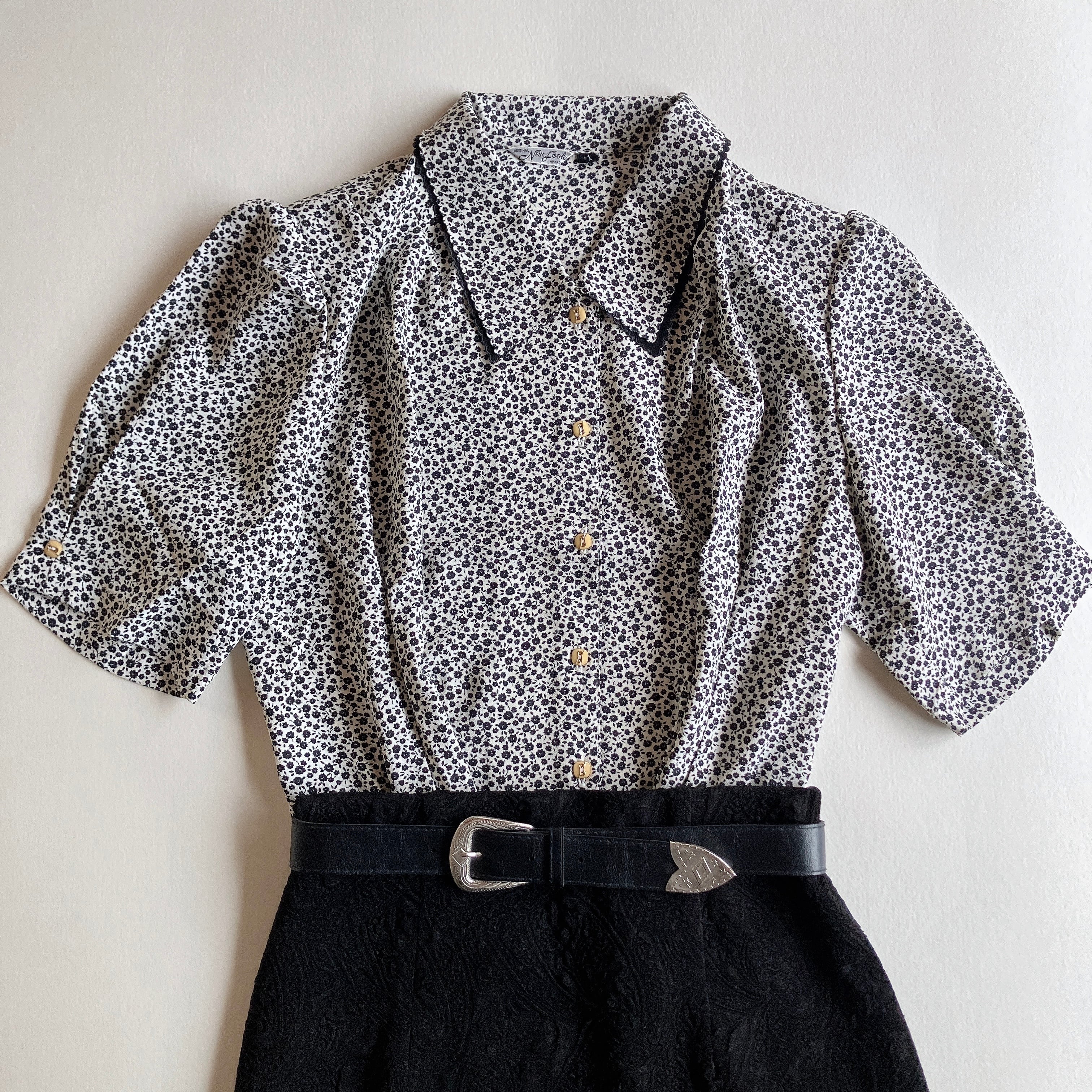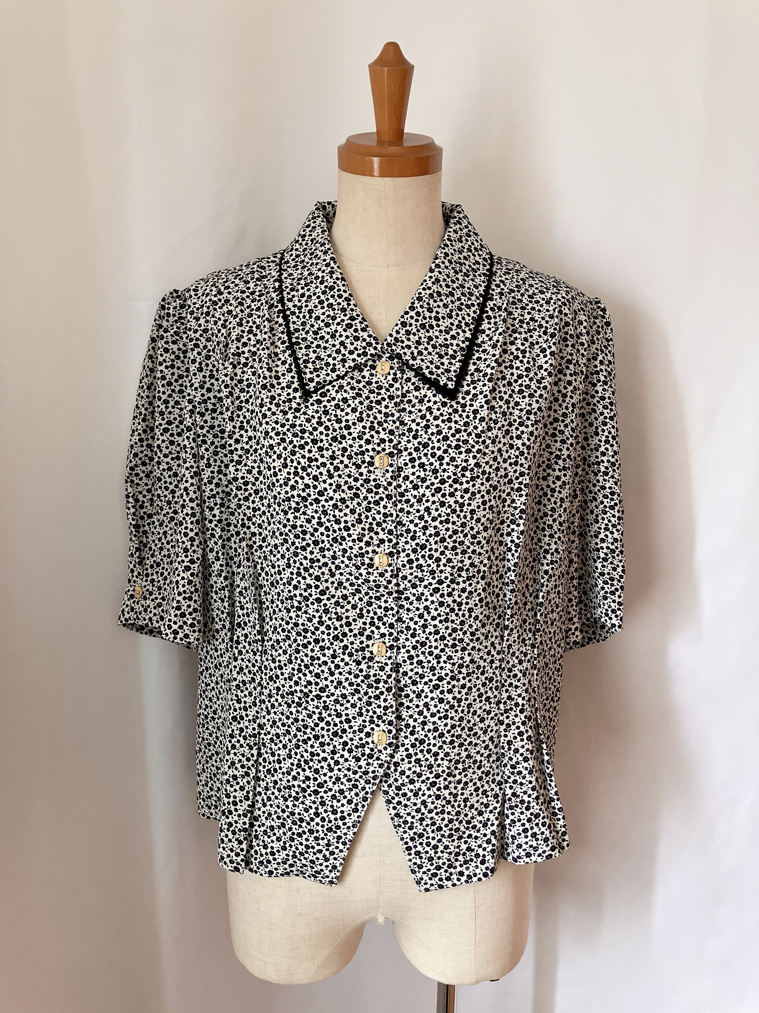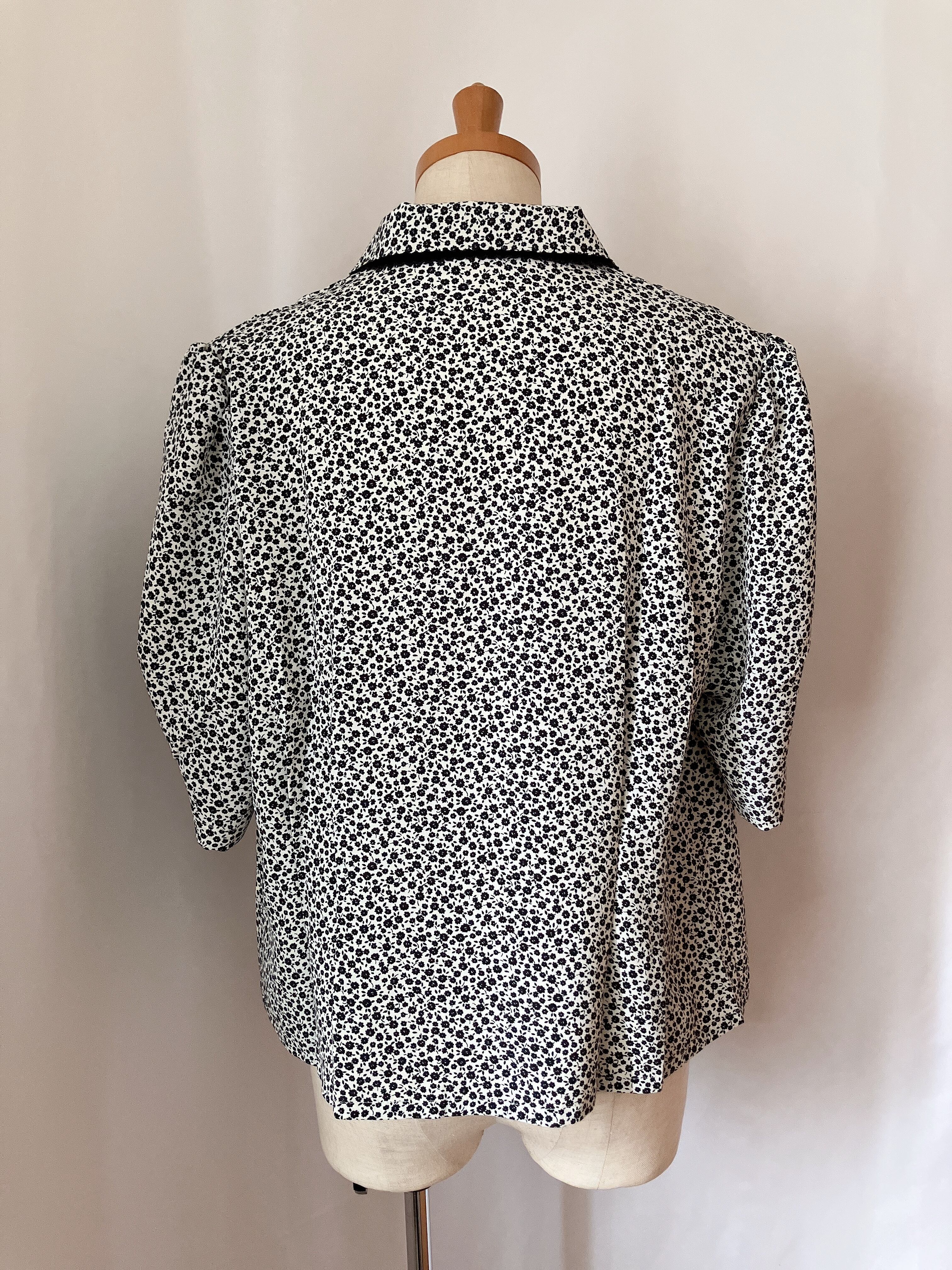 used レトロ モノトーン 小花柄 ブラウス古着 ヴィンテージ vintage
