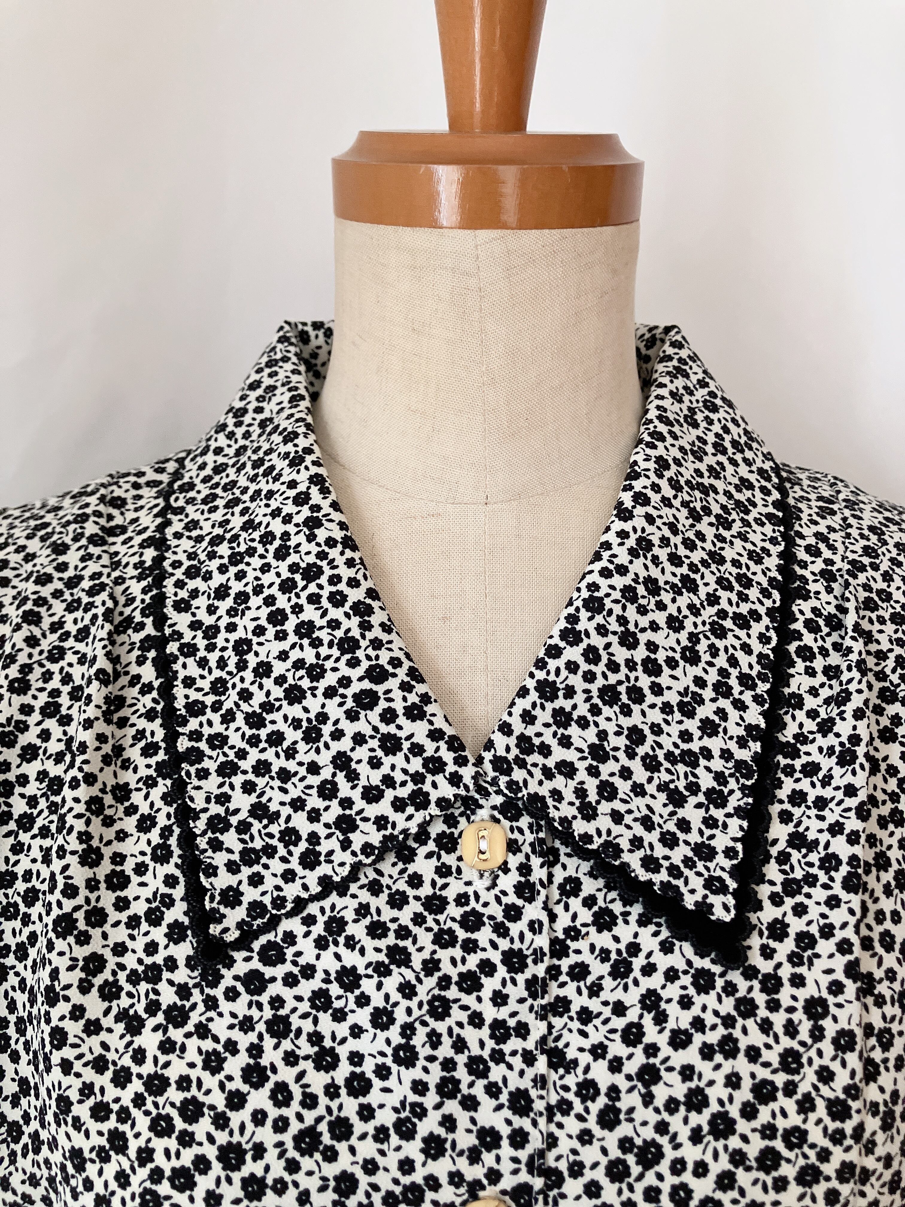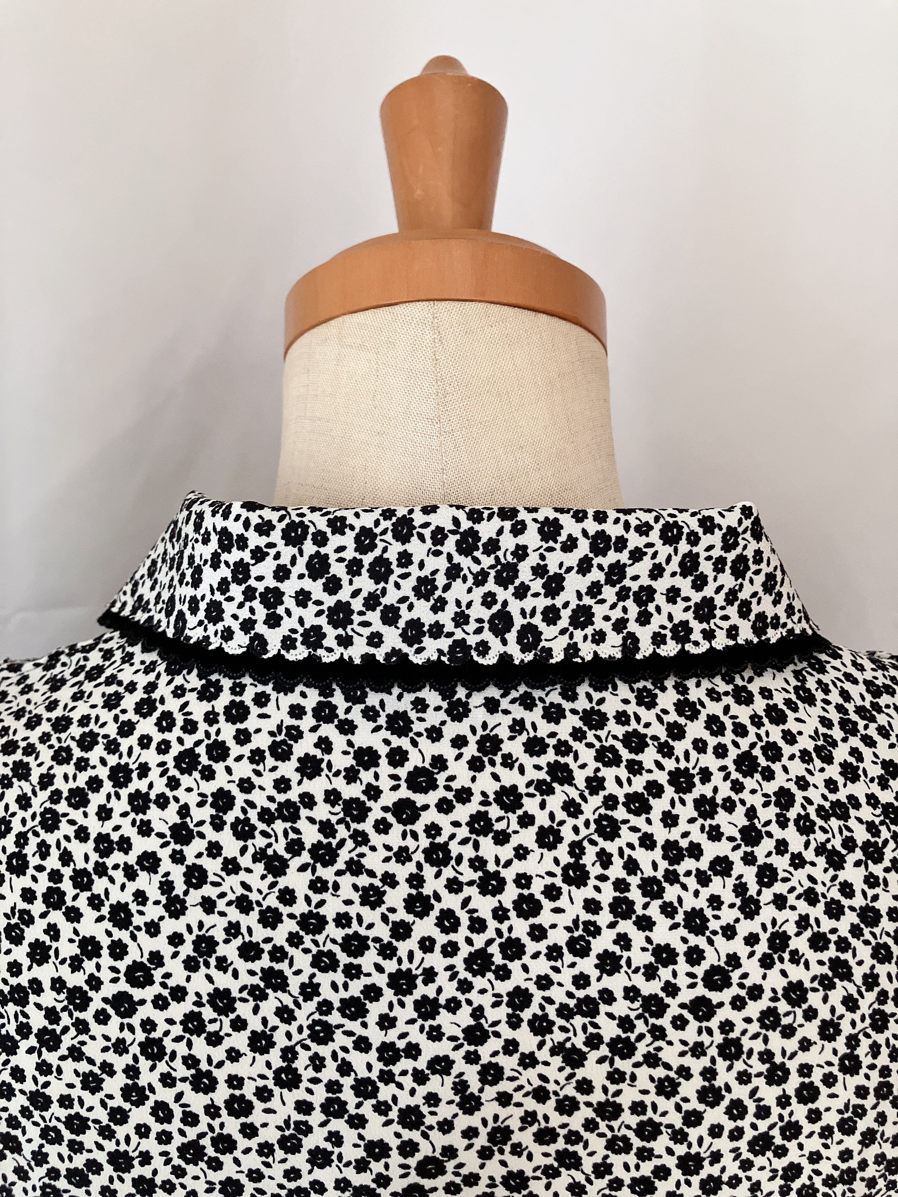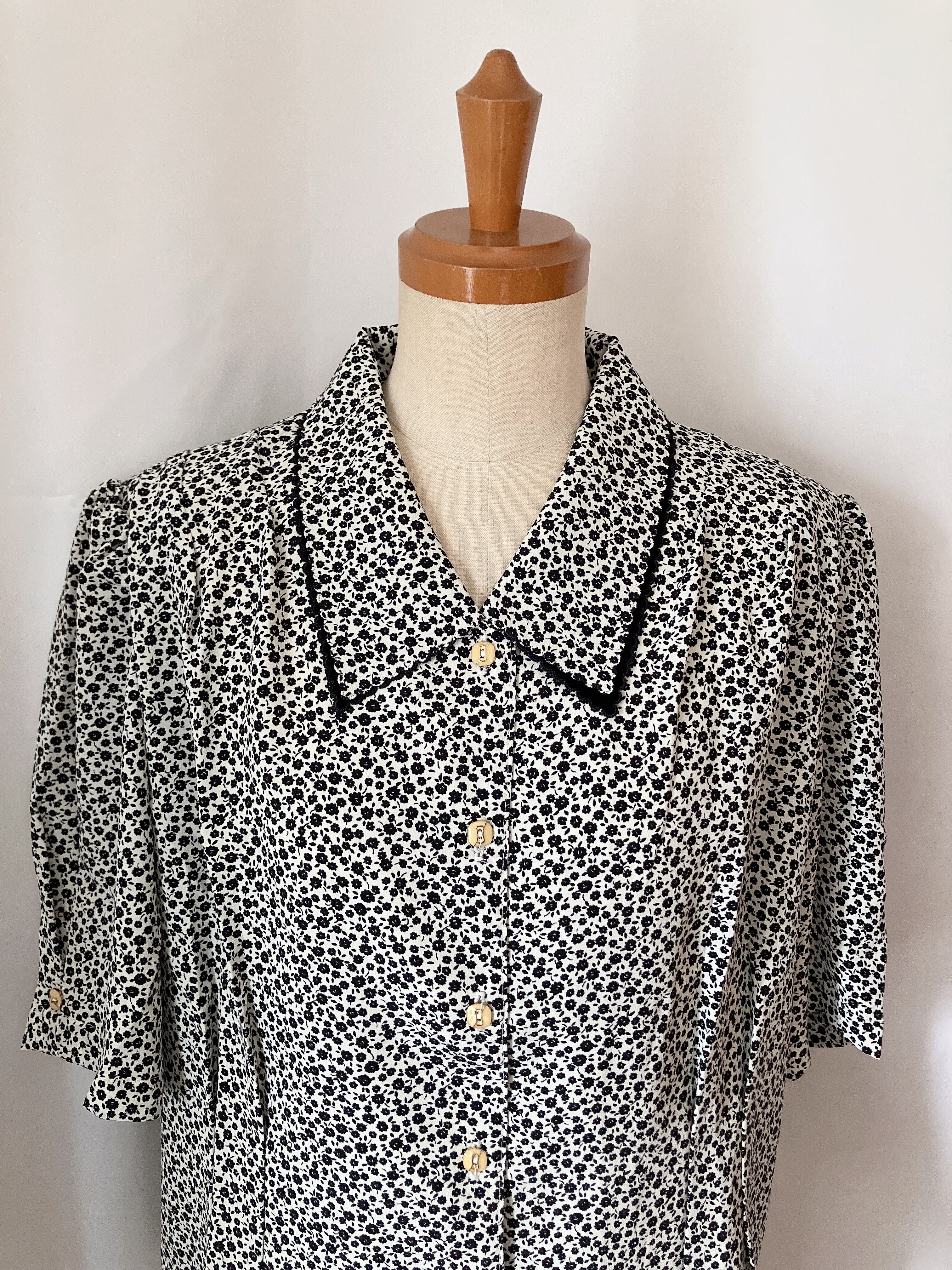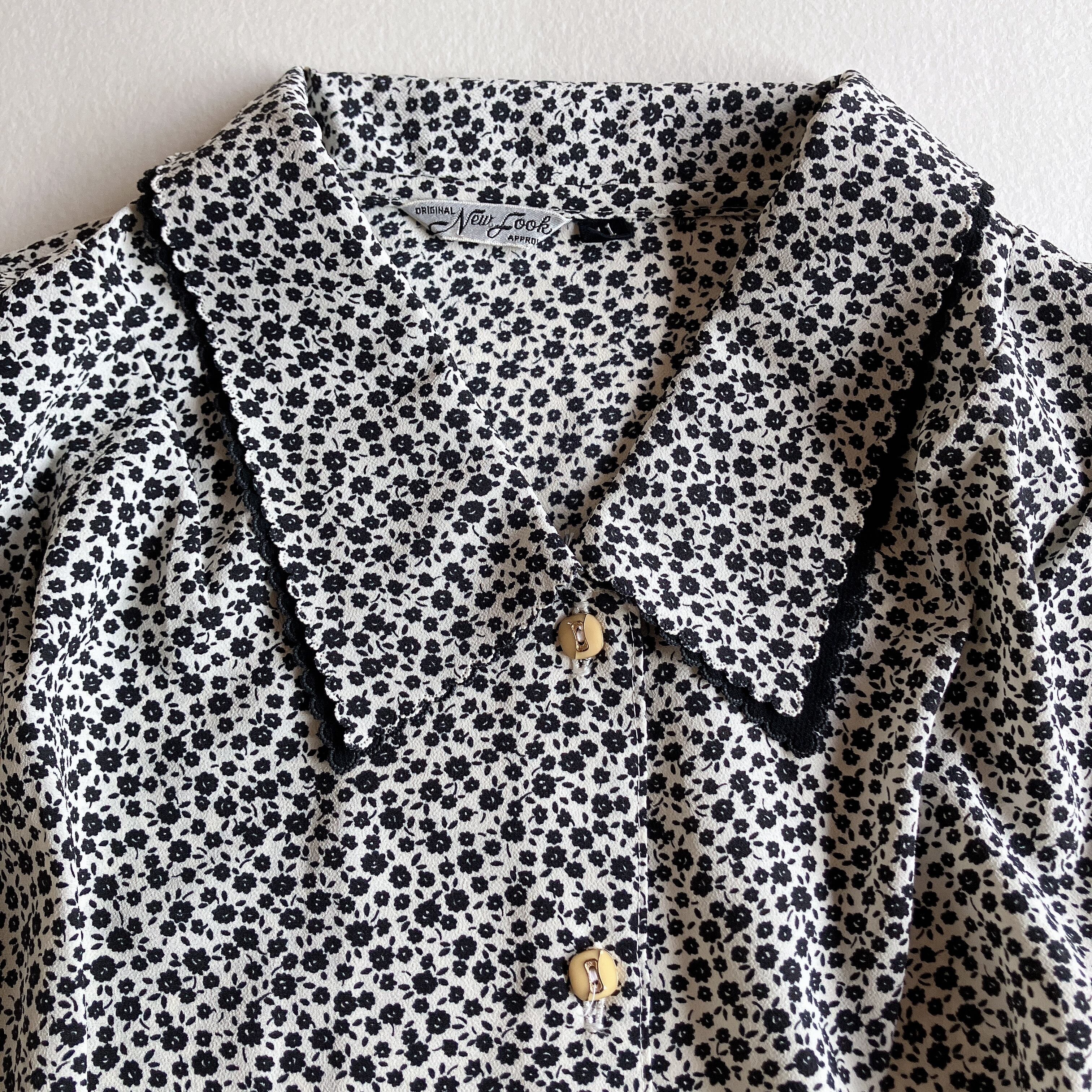 used レトロ モノトーン 小花柄 ブラウス古着 ヴィンテージ vintage