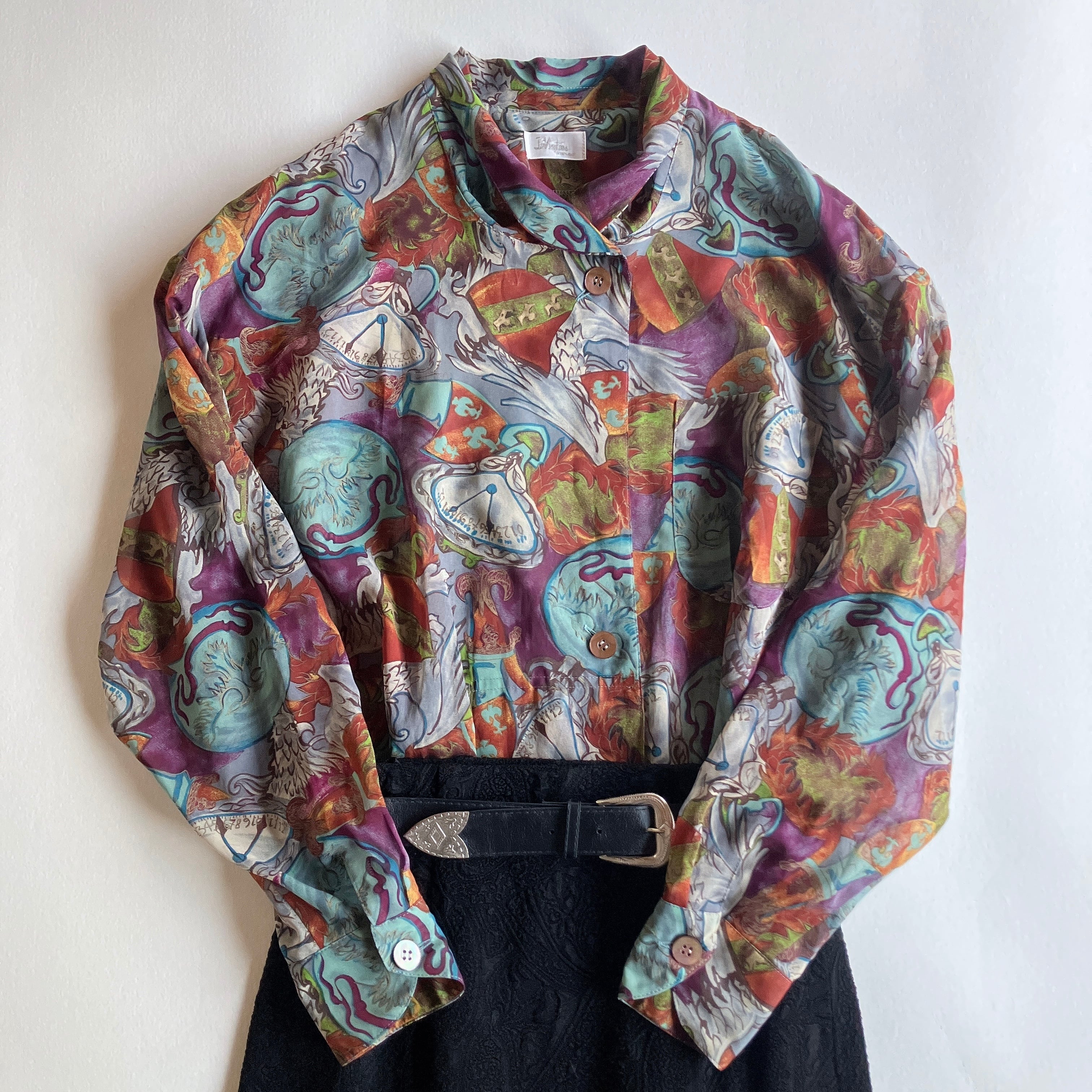 used レトロ シアー アート柄 トップス 古着 ヴィンテージ vintage