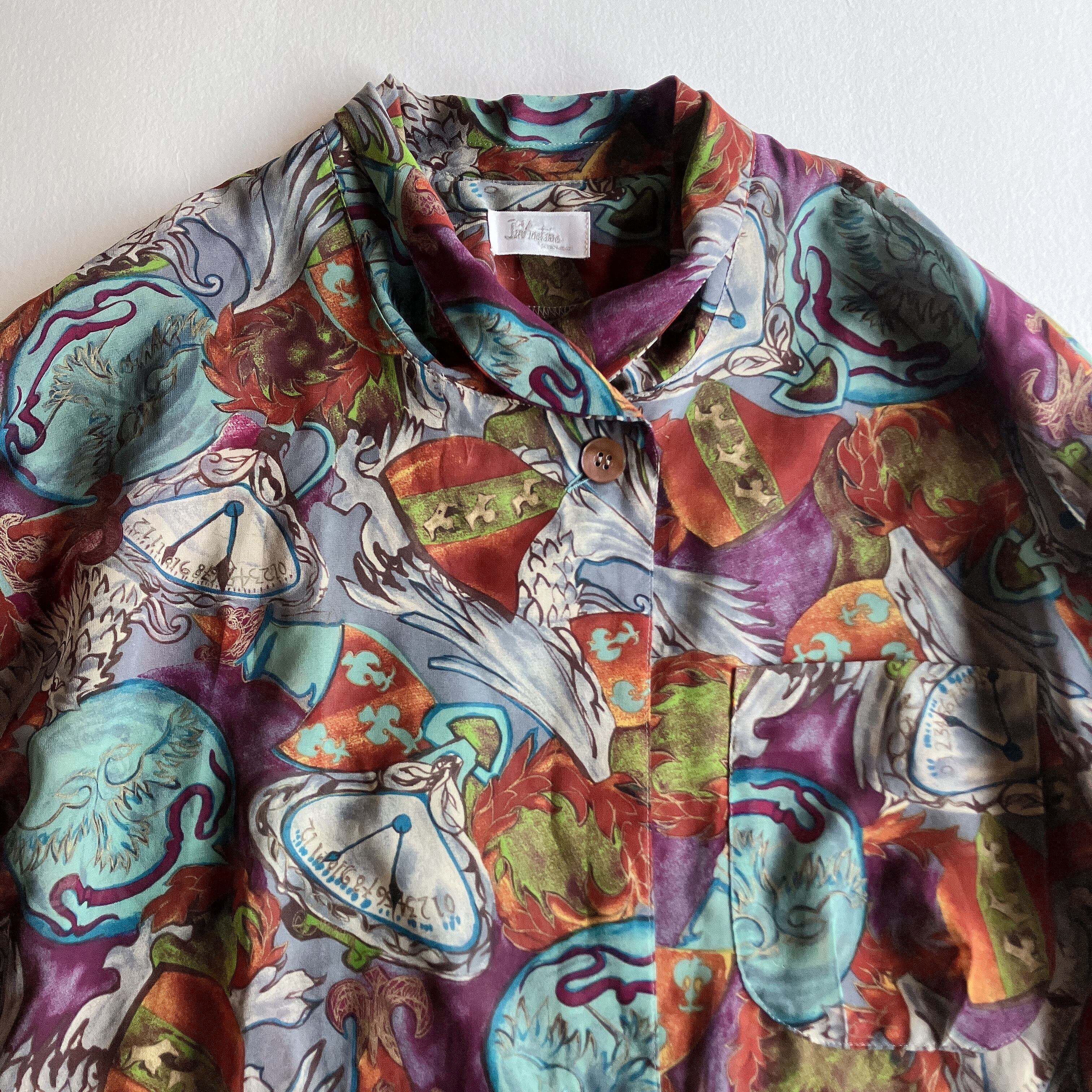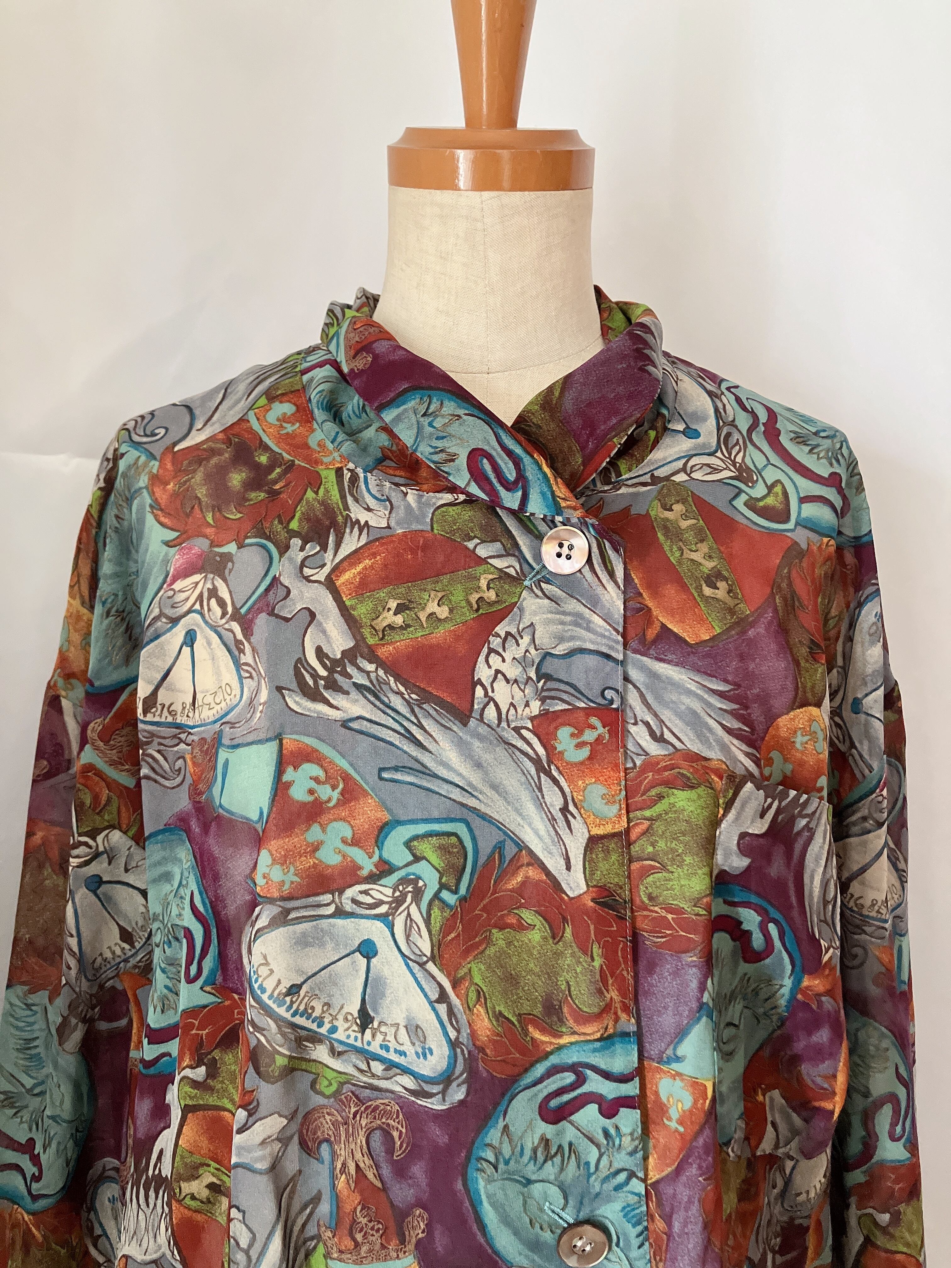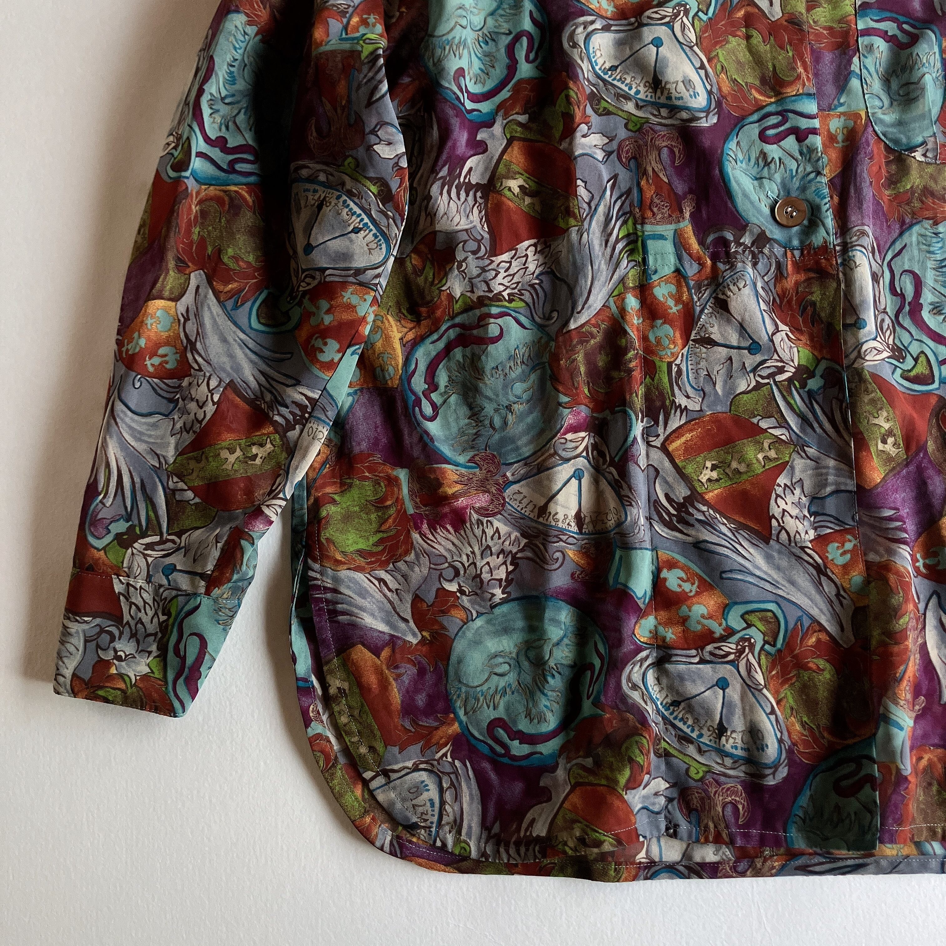 60s 70s 80s 90s の クラシカル で レトロ アンティーク ビンテージ / vintage ヴィンテージ なテイストの 古着 アート柄 総柄 個性的 希少 シャツ ブラウス ワンピース を出品しております。一点物 ユニセックス 古着 もたくさん扱っておりますので、ご覧下さいませ♪