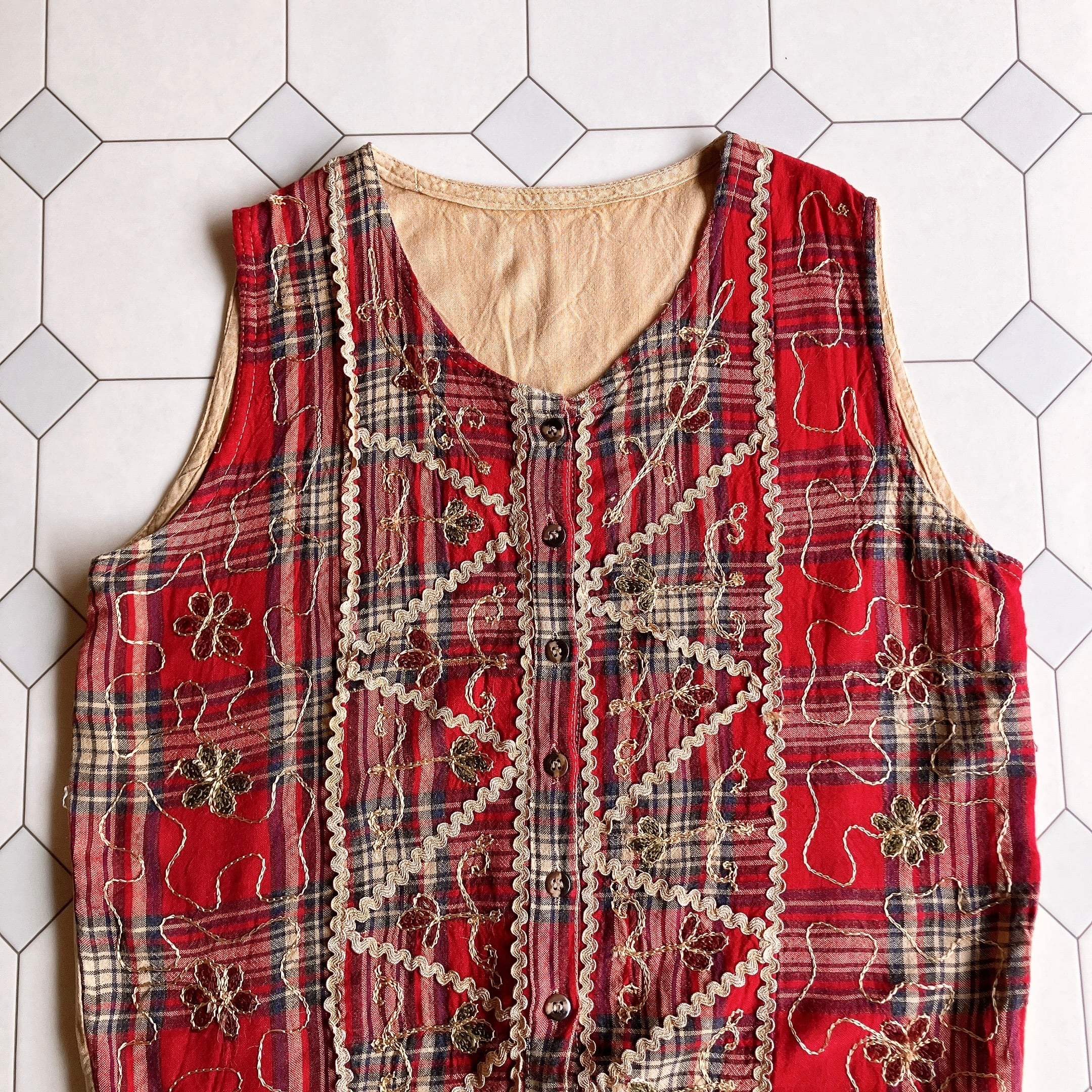 used レトロ チェック柄 ベスト 古着 ヴィンテージ vintage