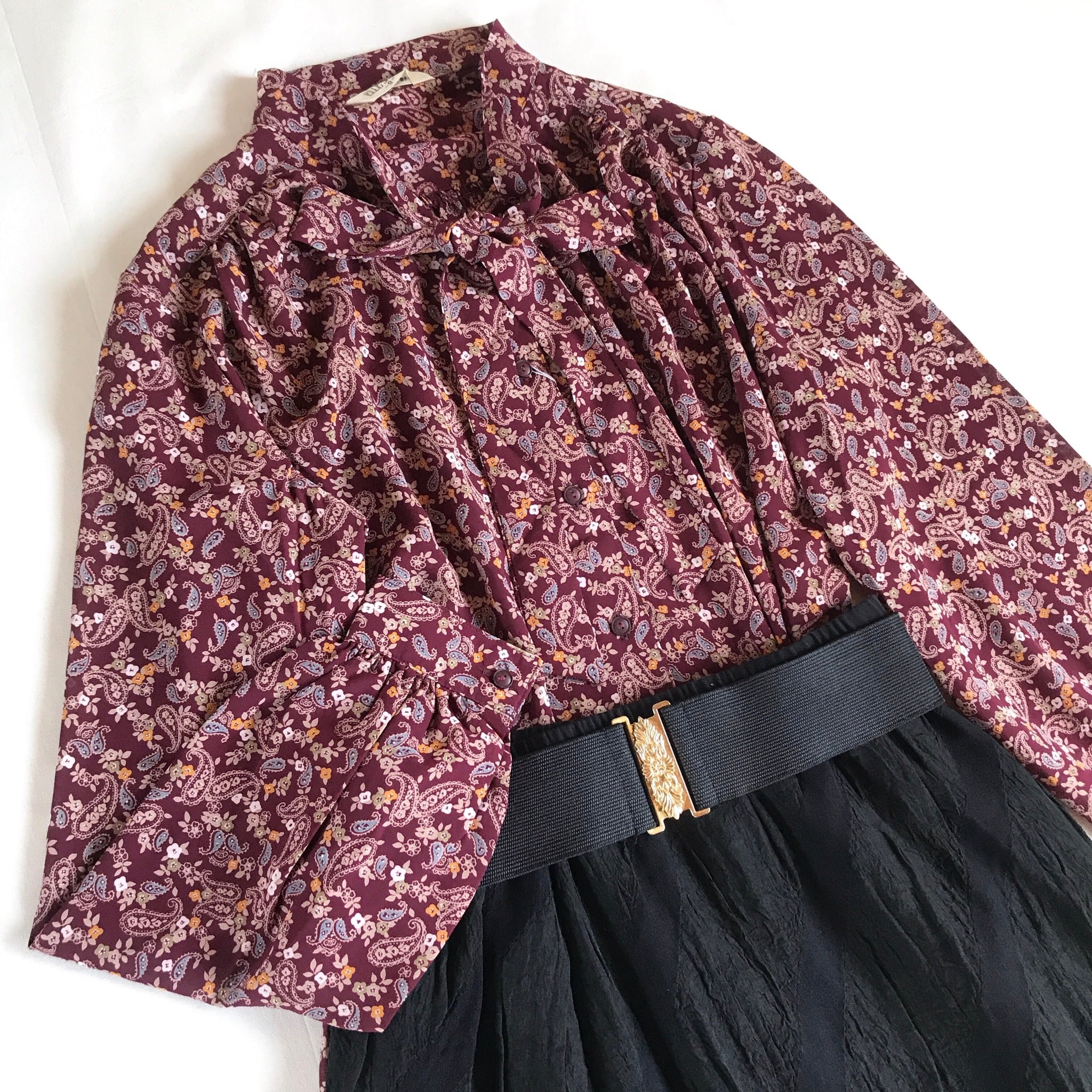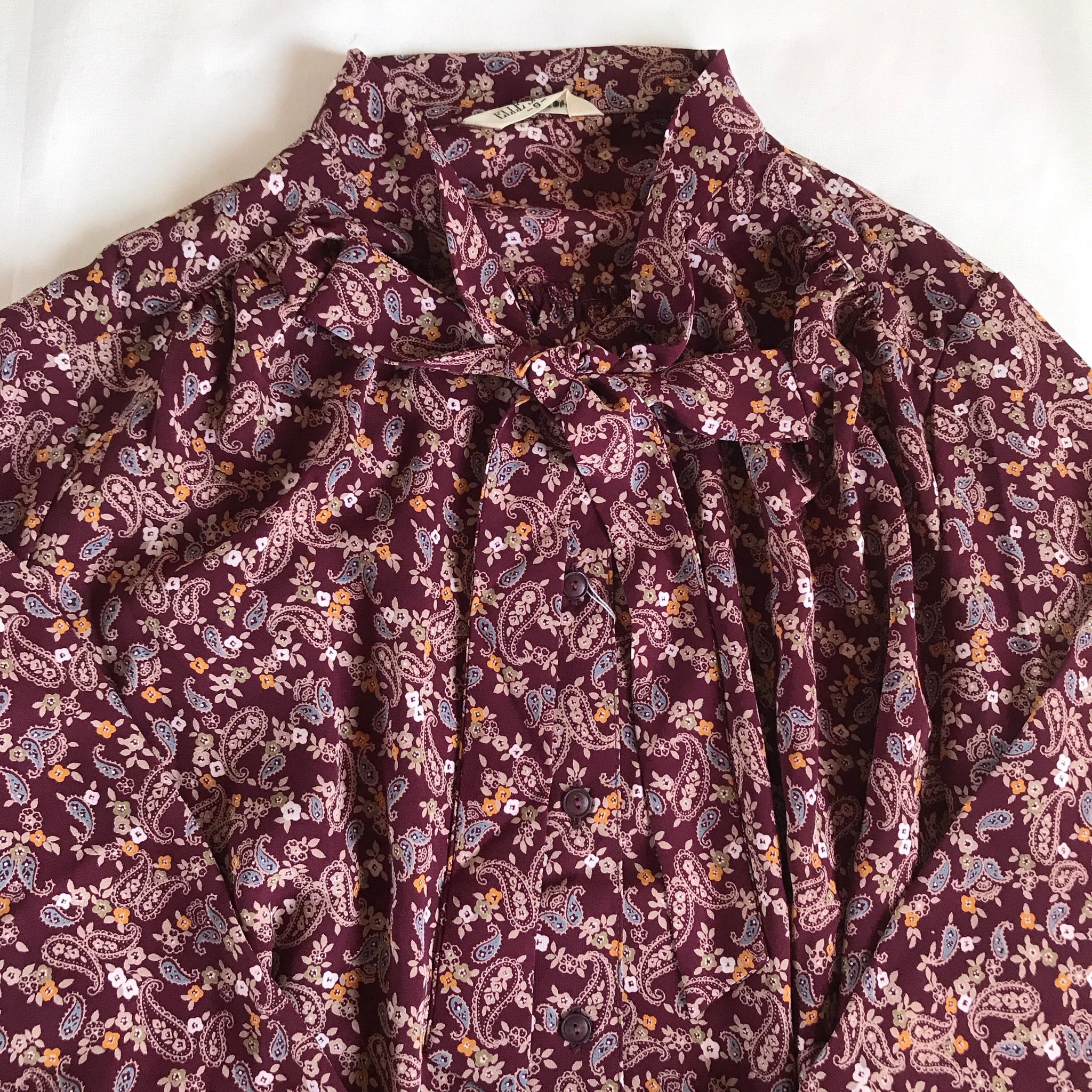 usedレトロ リボン ペイズリー ブラウス 古着 ヴィンテージ vintage