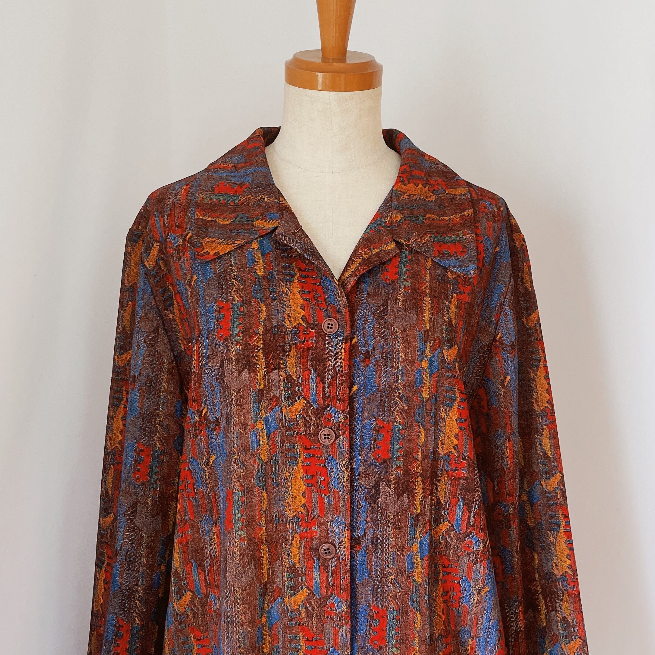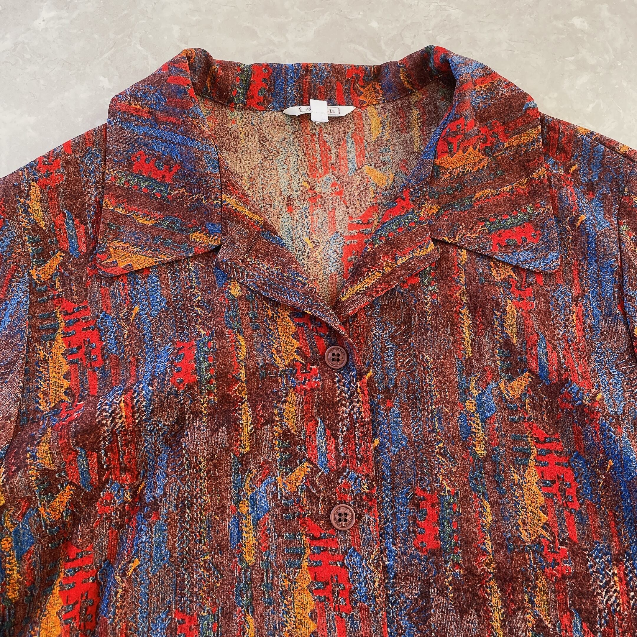 used レトロ マルチカラー総柄ブラウス 古着 ヴィンテージ vintage