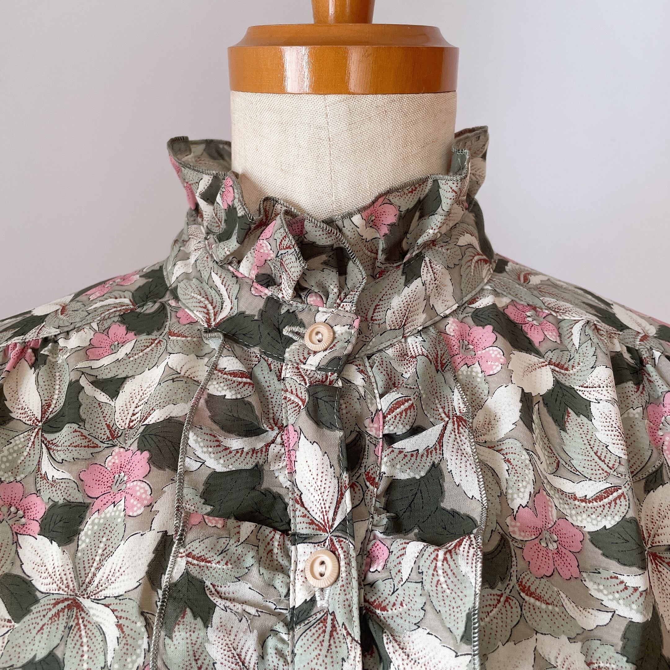 used レトロ フリルネック 花柄 ブラウス古着 ヴィンテージ vintage