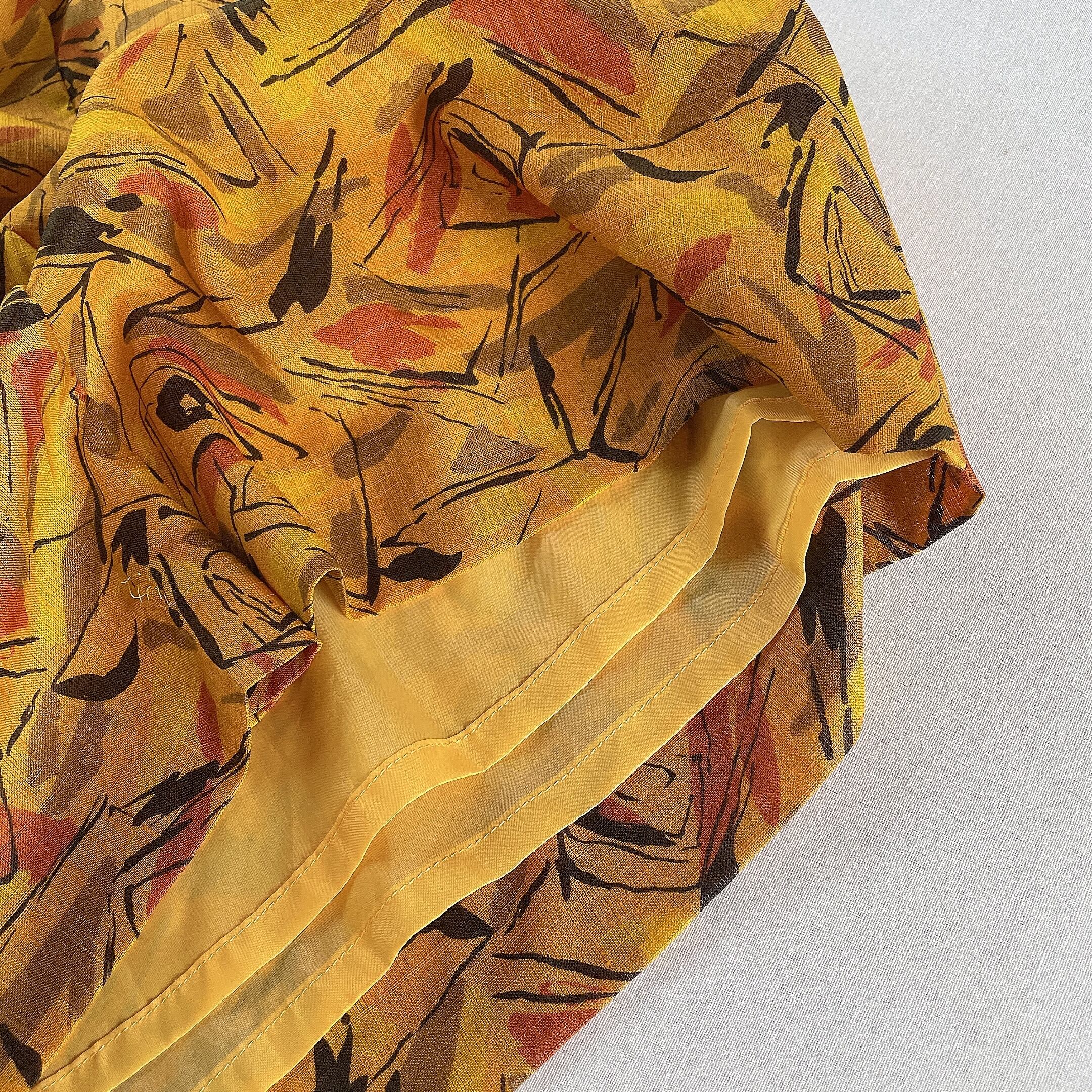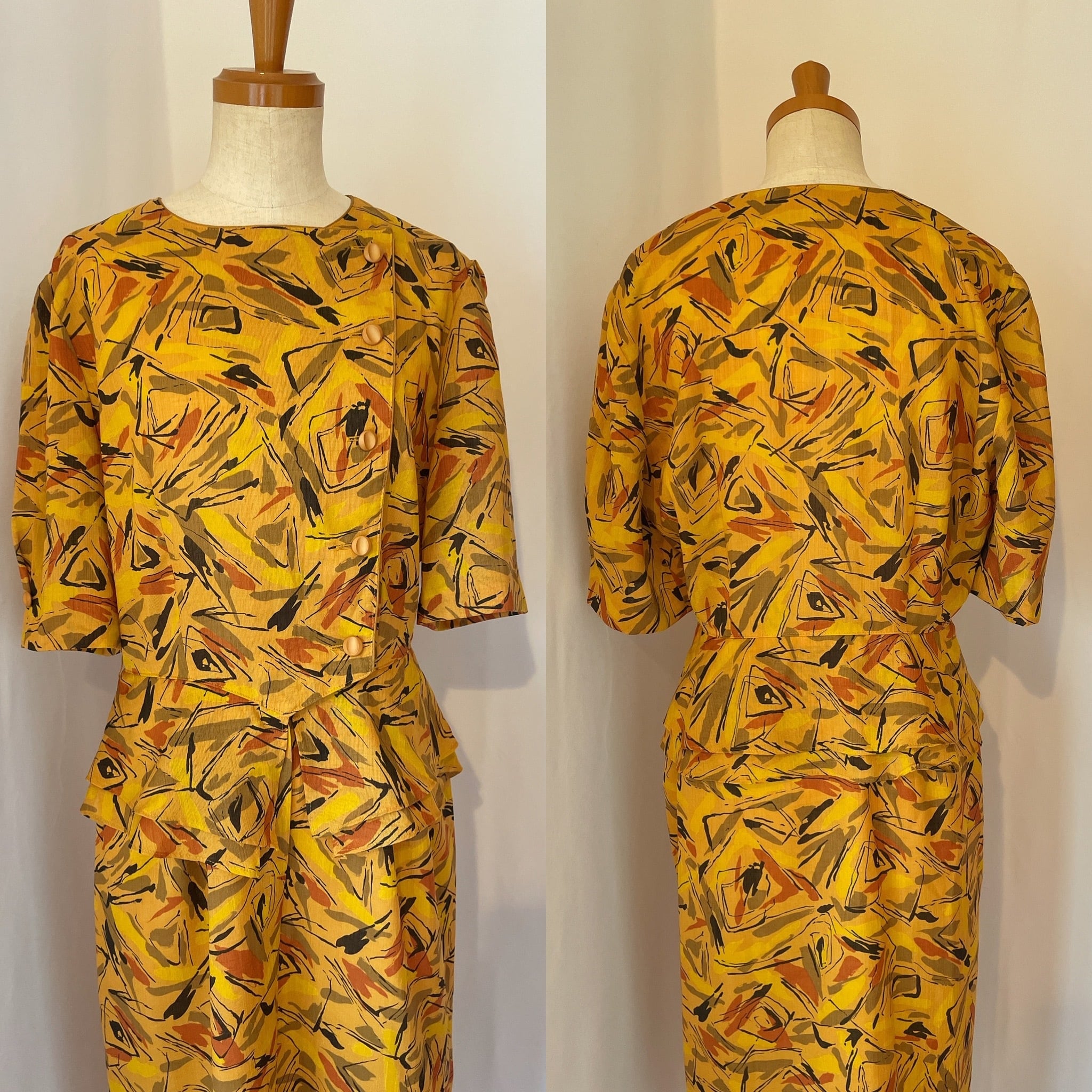 used レトロ イエロー 柄 ワンピース 古着 ヴィンテージ vintage