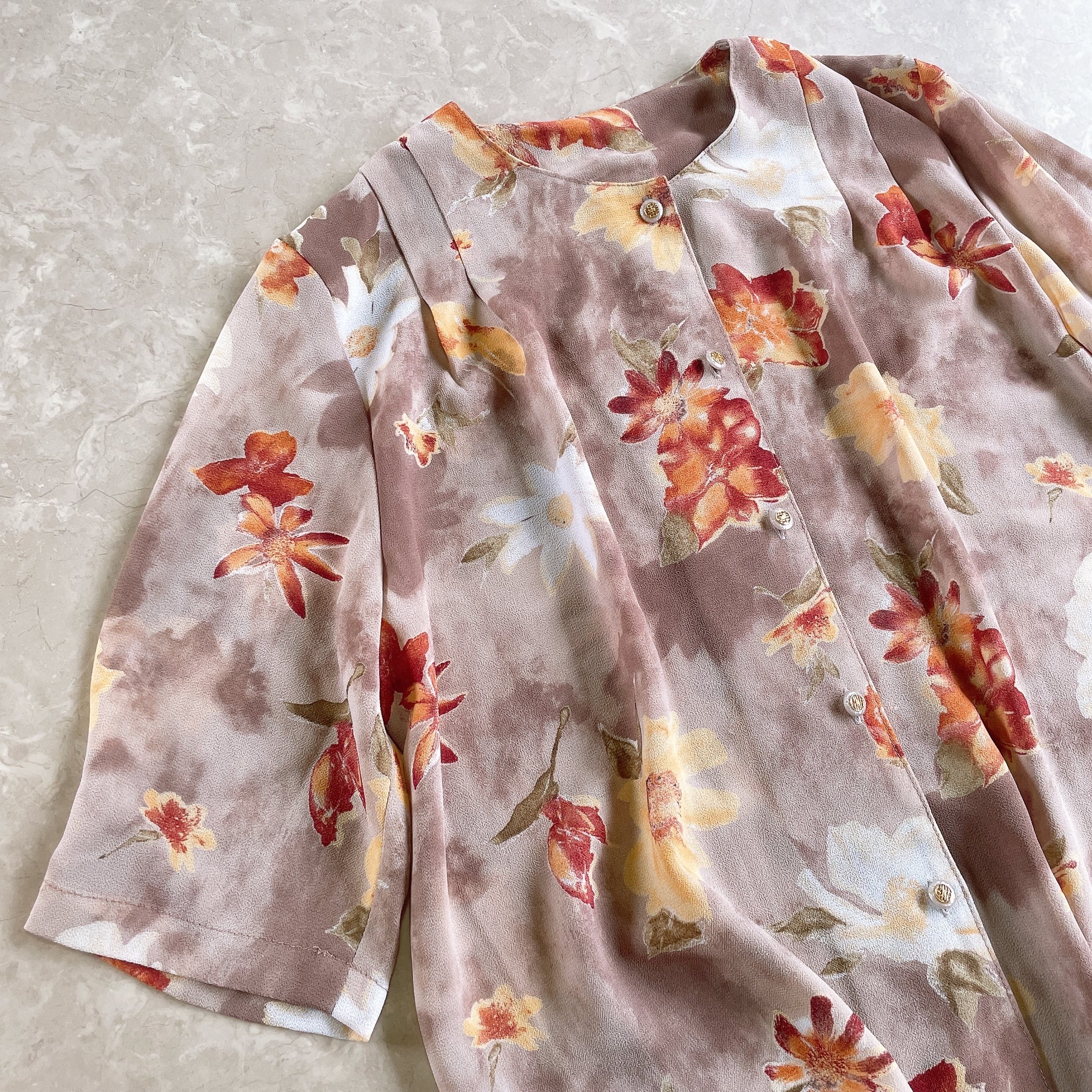 used レトロ くすみフラワー ブラウス 古着 ヴィンテージ vintage