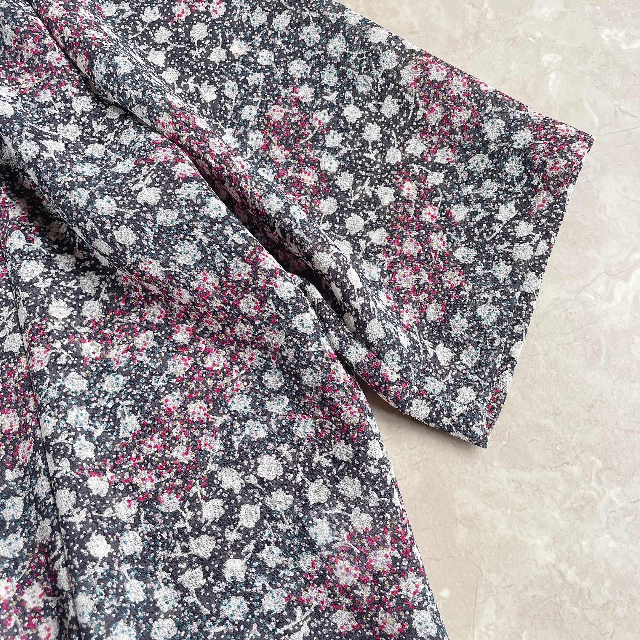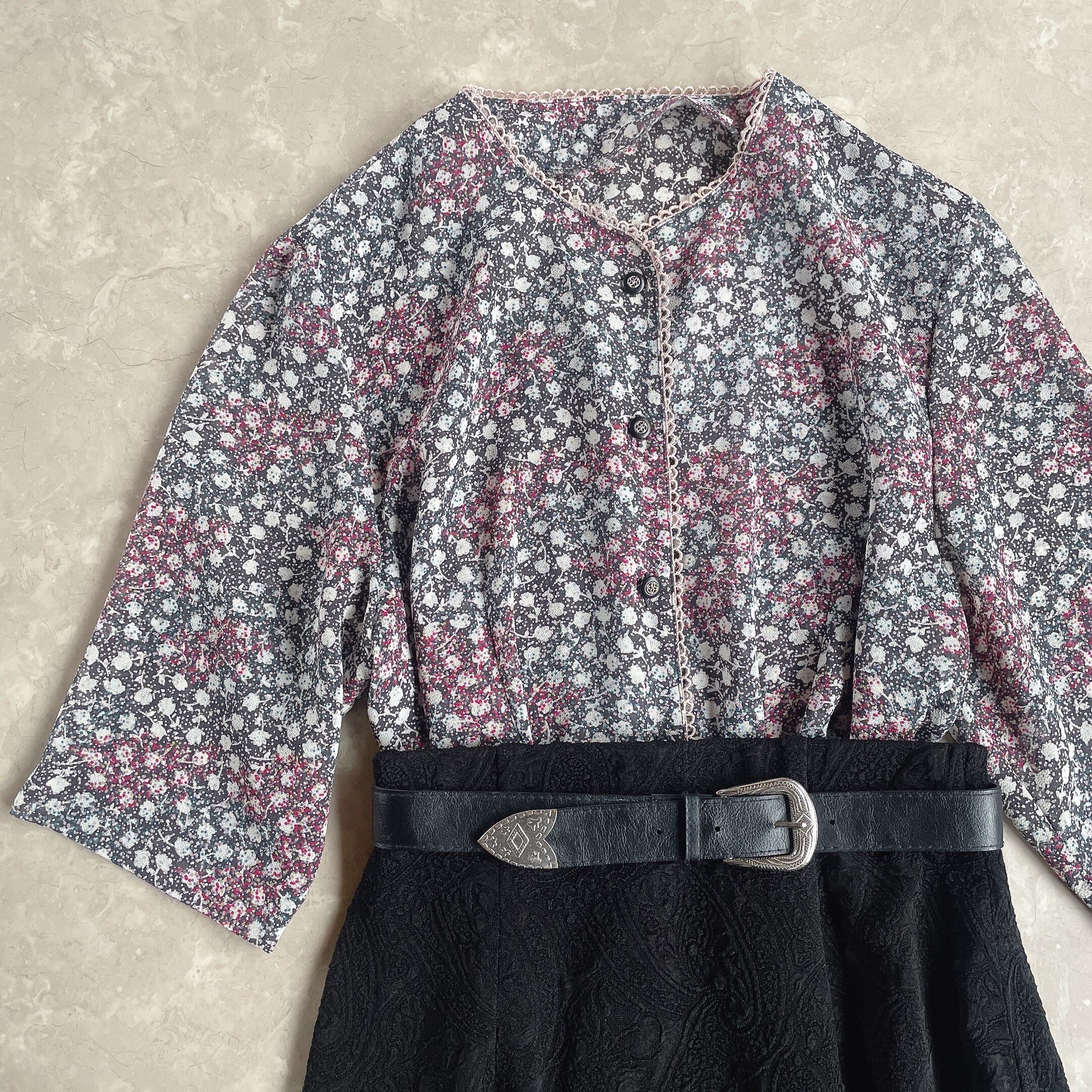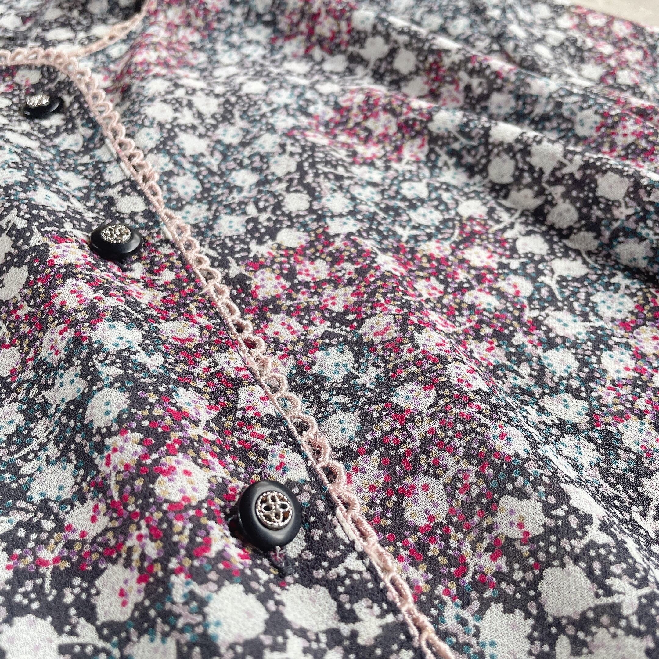 used レトロ 総柄 ノーカラー ブラウス 古着 ヴィンテージ vintage