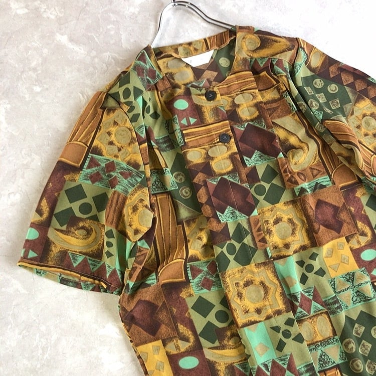 used レトロ 個性的 総柄 ブラウス 古着 ヴィンテージ vintage