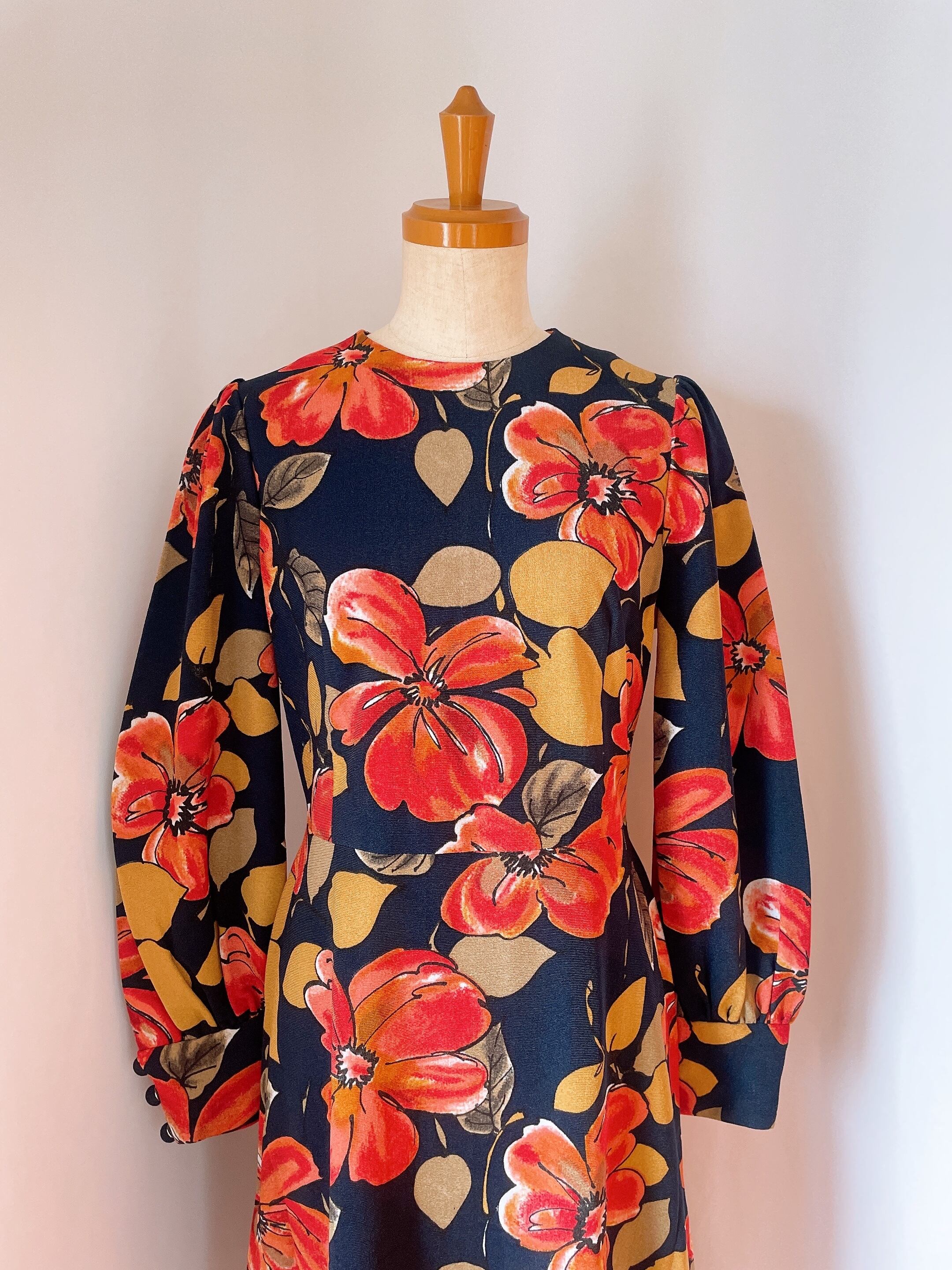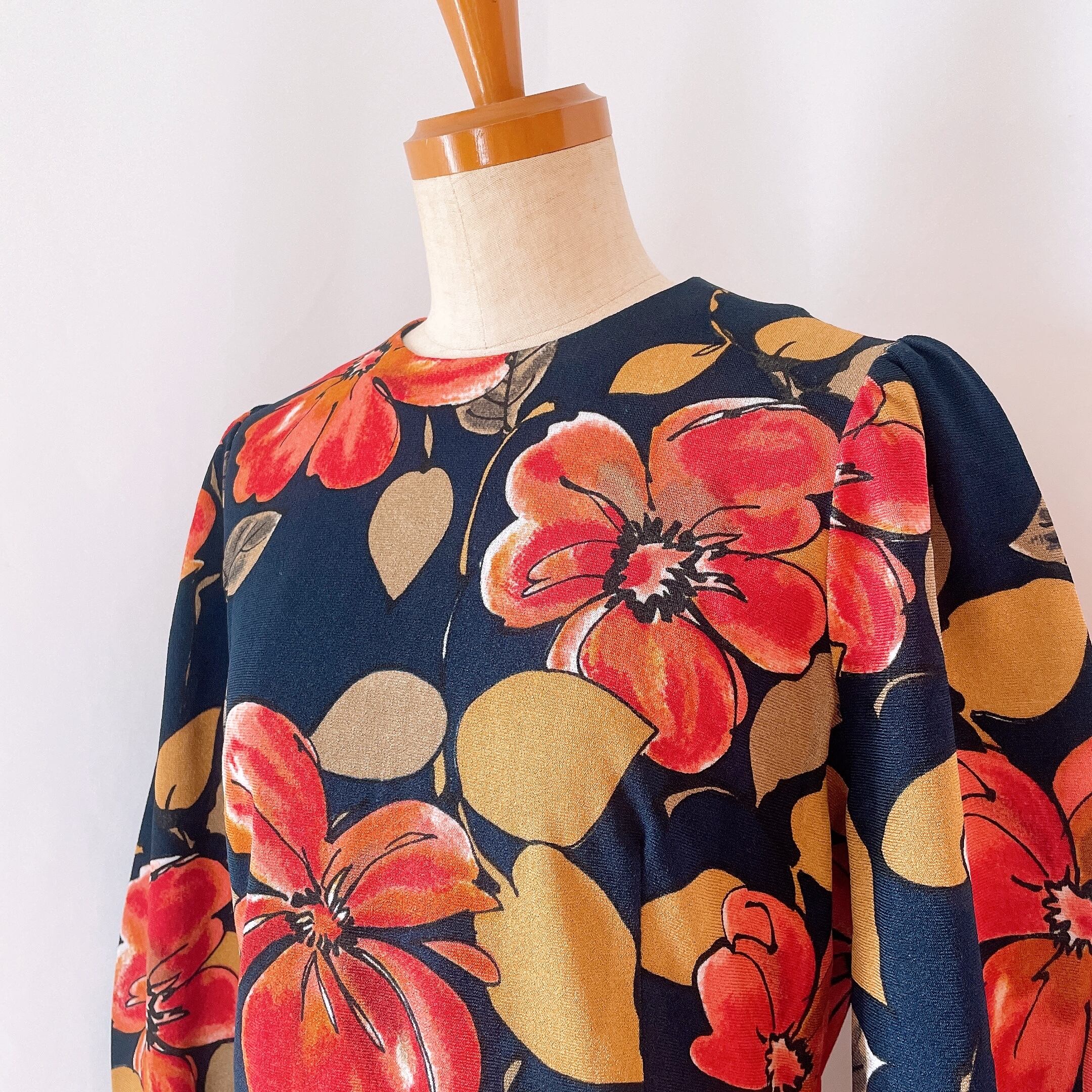 【SALE】used レトロ 昭和な花柄 ワンピース 古着 ヴィンテージ vintage